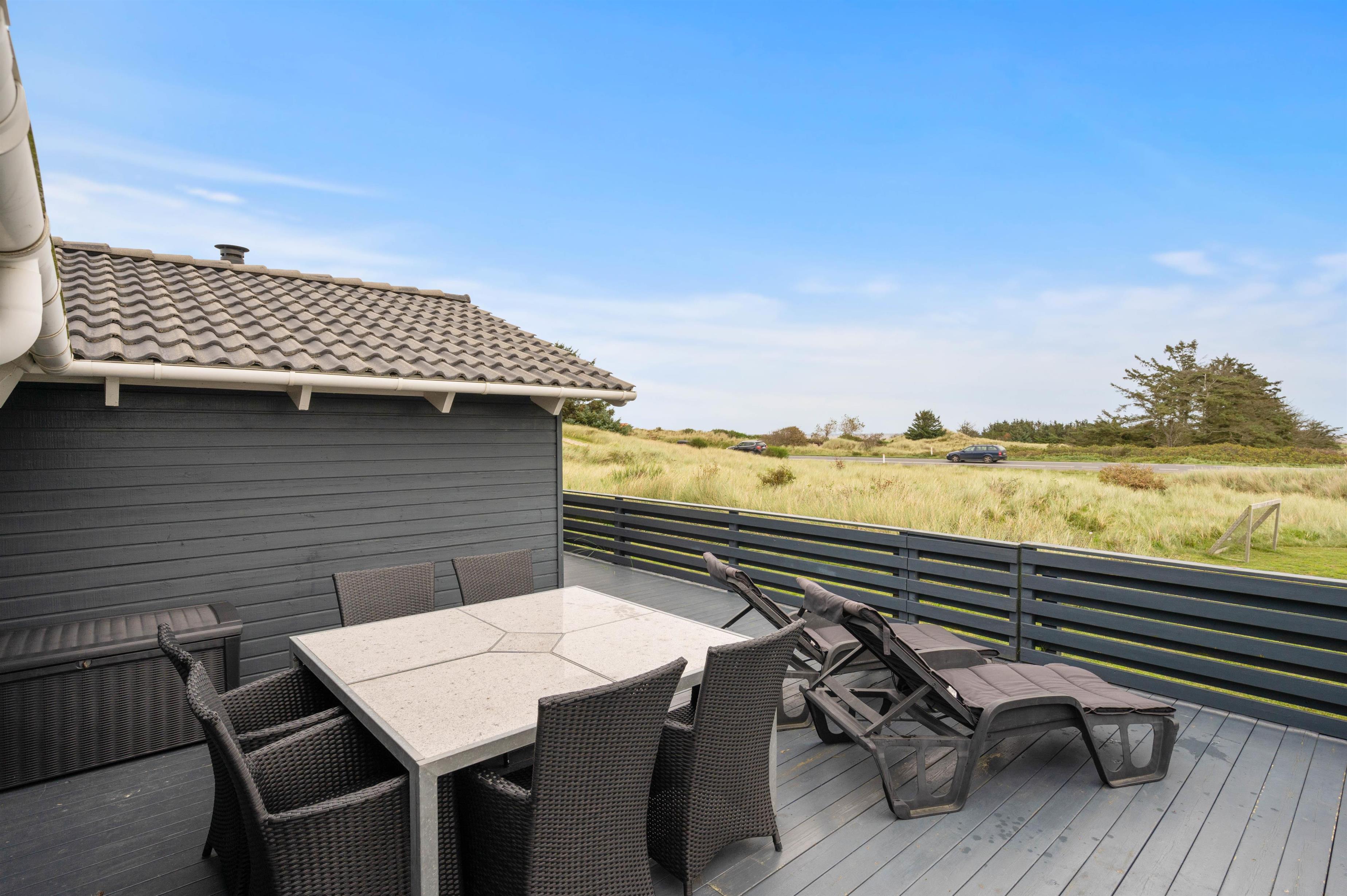 På den rummelige lukkede terrasse har I mulighed for at nyde en masse timer med sjov og leg uden bekymring for at børn bliver væk, da hele terrassen er indhegnet. Terrassen er omringet af den skønne karakteristiske natur, som hedeområdet på Vestkysten tilbyder.