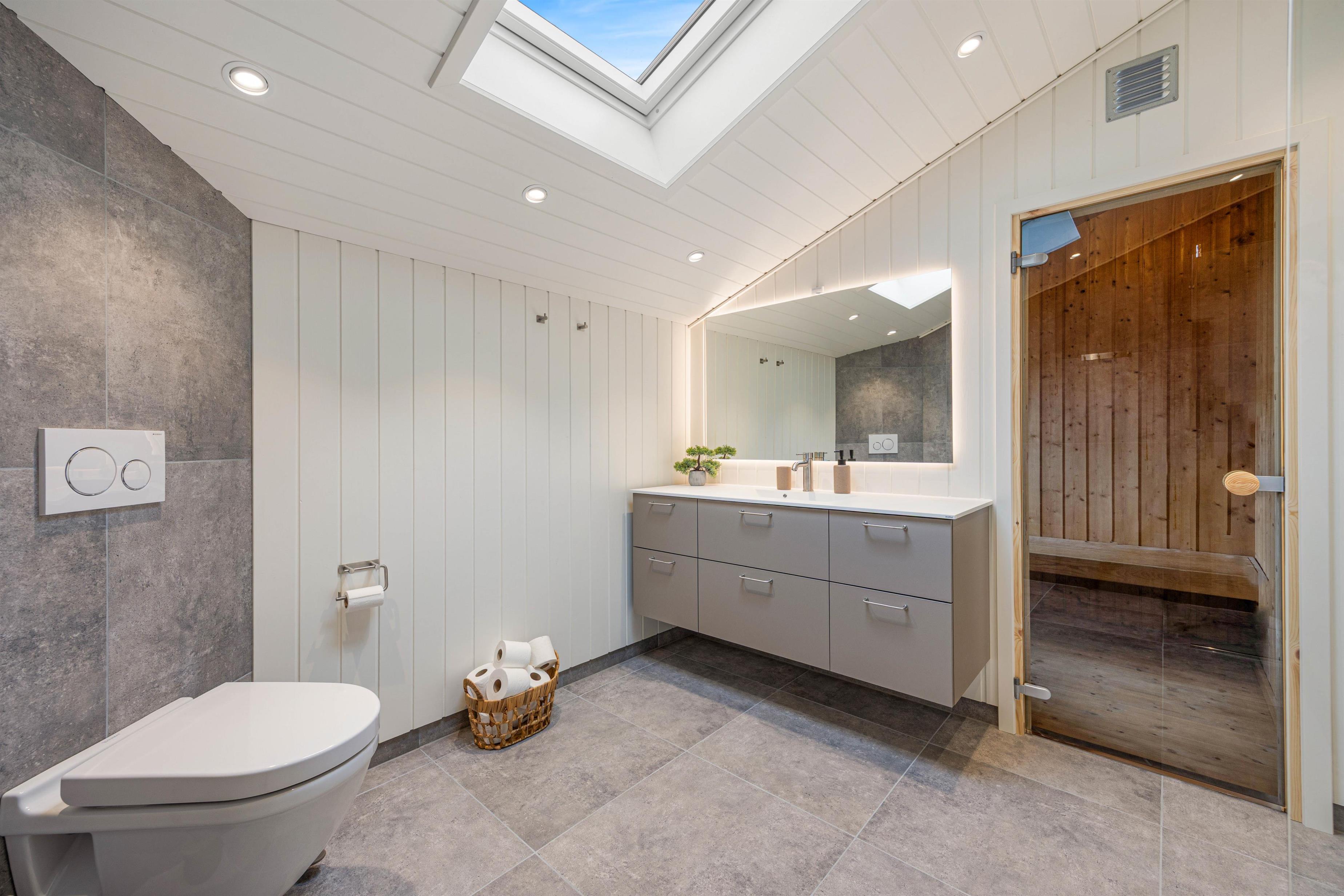 Derudover er der både et badeværelse og et gæstetoilet, så I undgår kø om morgenen. På badeværelset er der desuden en sauna, som medvirker til en ekstra afslappende ferie. Dernæst er der 4 soveværelser med henholdsvis 2 dobbeltsenge og 3 enkeltsenge, som sikrer jer en god nats søvn, så I er friske til feriens oplevelser.