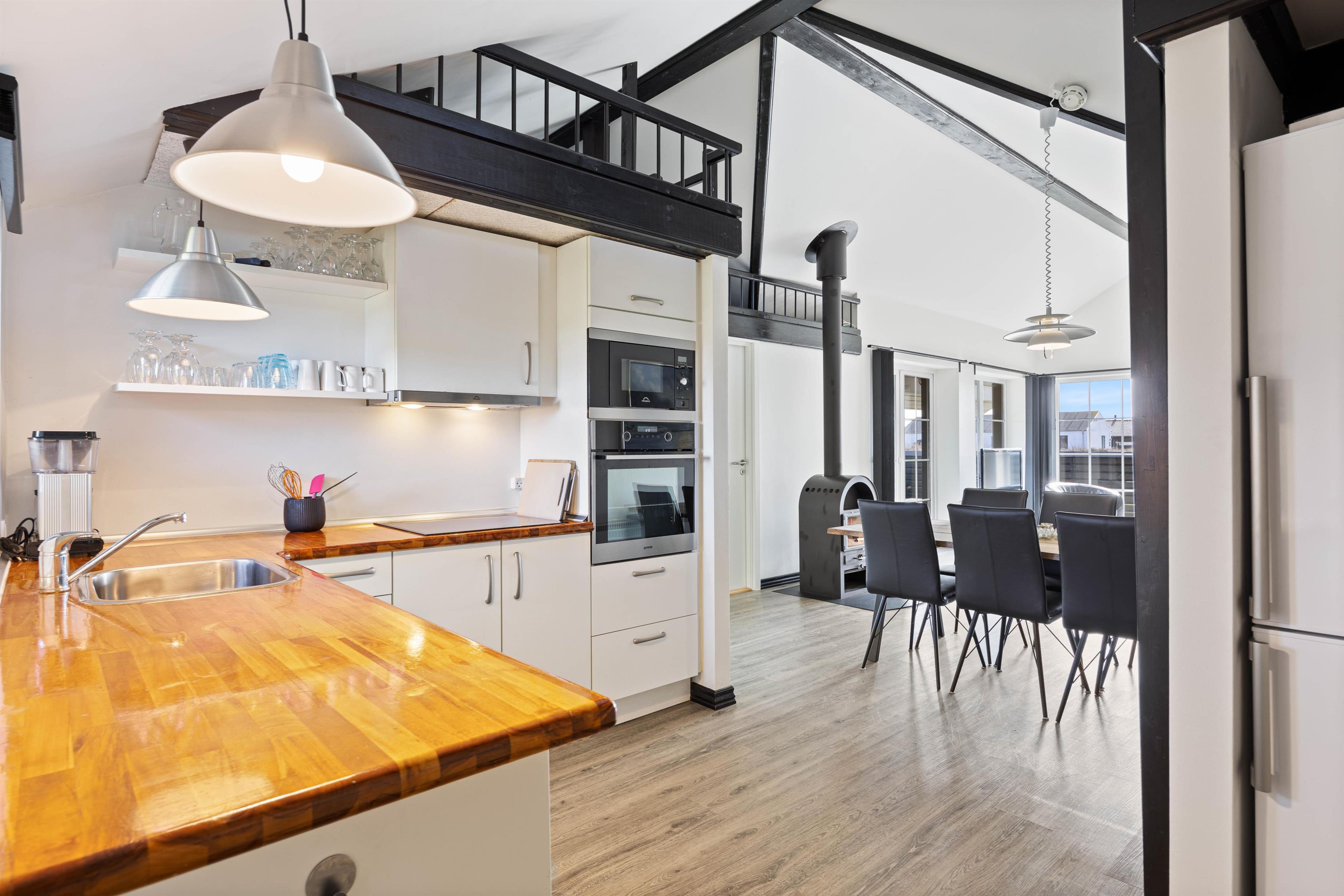 Et godt træhus beliggende tæt på Ringkøbing Fjord og med en god lukket terrasse. Der er 3 gode værelser og 2 badeværelser og hems til børnene, hvor de kan hygge sig med spil og leg. Der er praktiske og rengøringsvenlige trælaminatgulve – perfekt når hund er tilladt. Der er gratis internet.