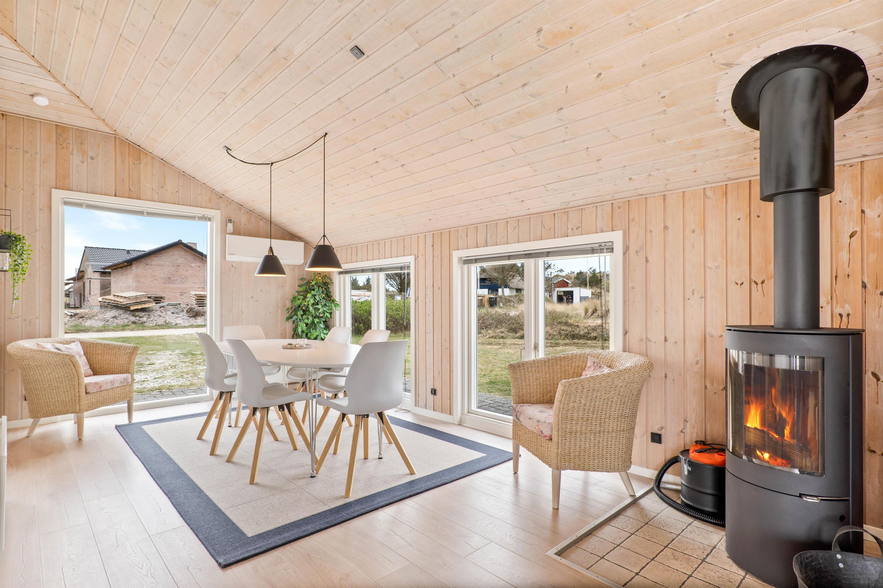 Sommerhuset på Fyrmarken 283 er blevet renoveret i 2021 og har en hyggelig indretning med trælofter og vægge, der sammen med brændeovnen er med til at skabe den helt rigtige sommerhusstemning. De store vinduespartier i hele feriehuset slipper en masse lys og sol ind, samtidig med at man har udsigt udover det skønne klitlandskab. Her kan man sidde og nyde udsigten, mens maden tilberedes. Der er gratis fibernet, som sikrer en hurtig internetforbindelse på ferien. Sommerhuset er udstyret med alle de praktiske moderne nødvendigheder, så som opvaskemaskine og vaskemaskine, som er med til at lette gøremålene på ferien, så I rigtig kan få slappet af.
