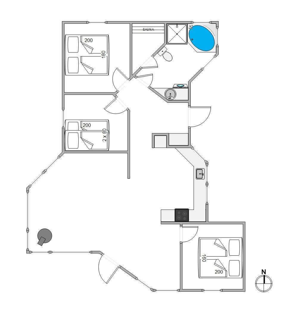 Nyd en afslappende og rolig ferie med masser nærvær med dem du holder mest af. Her er sommerhuset på Fyrmarken 205 et rigtig godt bud. Med en skøn wellnessafdeling på badeværelset, vil I kunne nyde afslappende timer i enten spabadet eller saunaen. Dette vil være medvirkende til, at i rigtig at få ladet batterierne op igen.