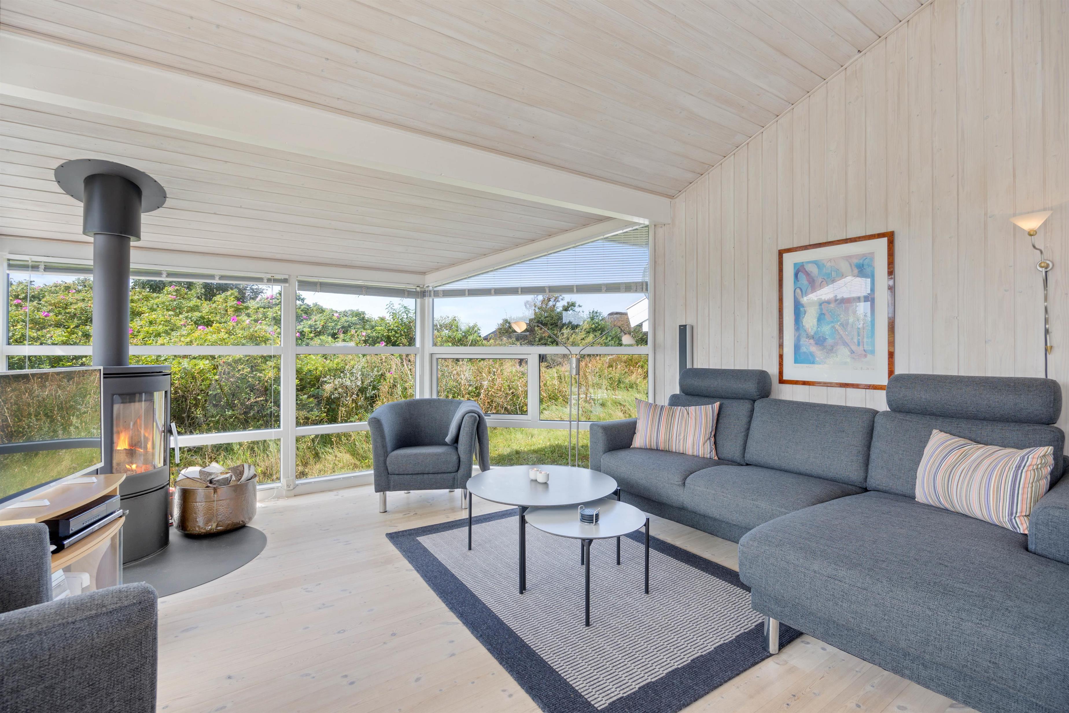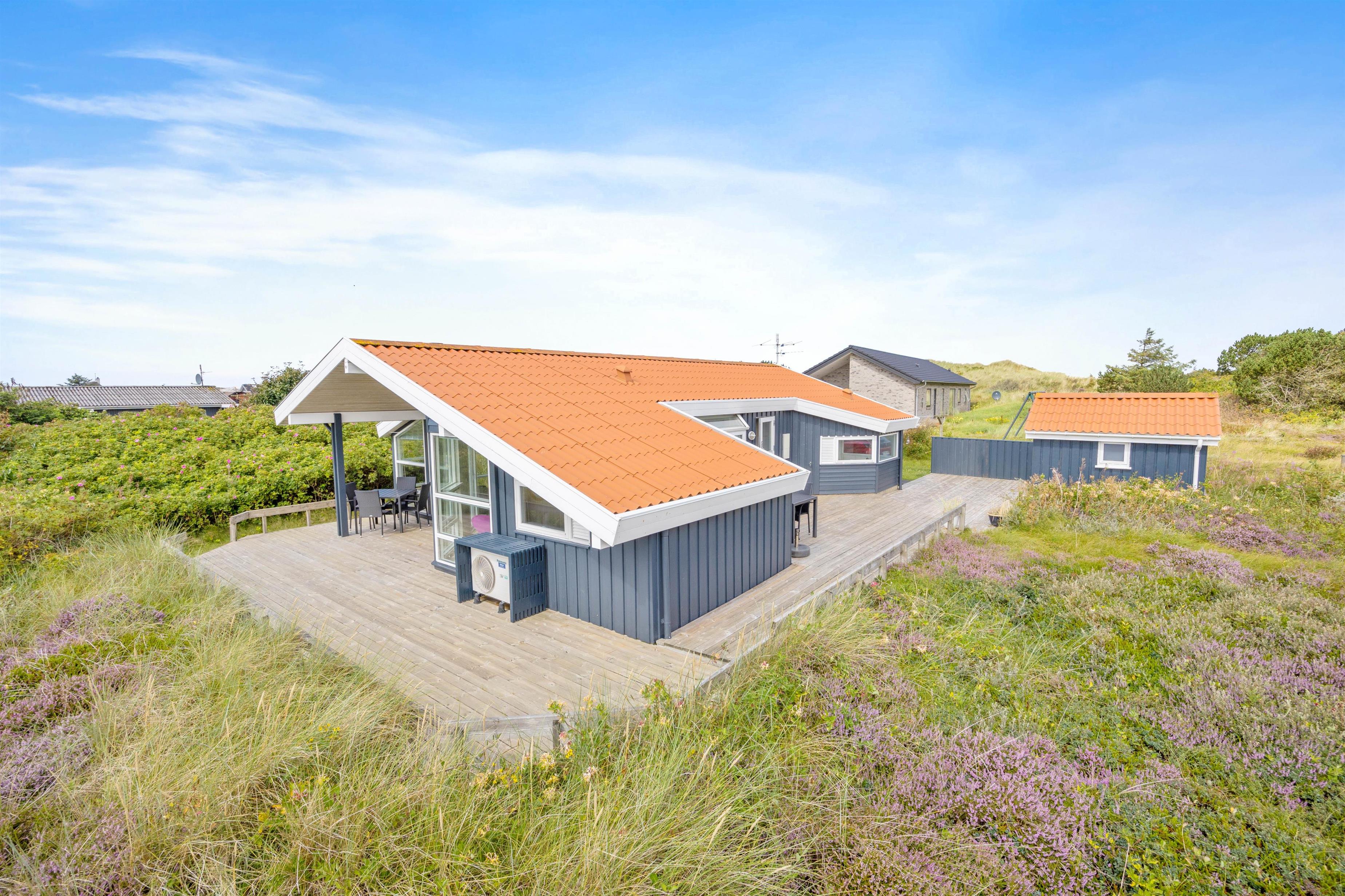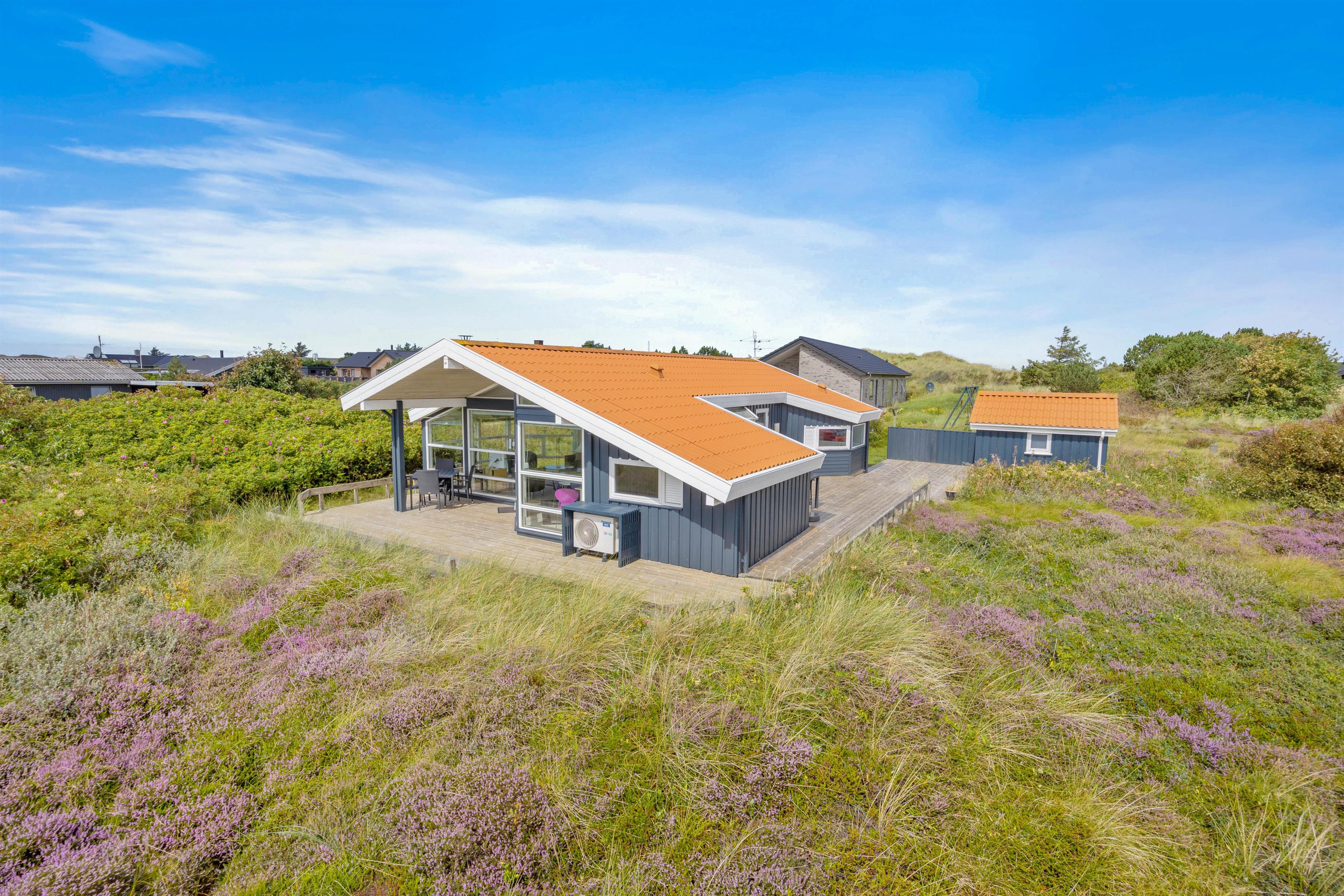 Sommerhuset er beliggende på en af de smukke og karakteristiske naturgrunde, som er typisk for området. Her er sommerhuset omringet af de smukke hedearealer. Udsigten til naturen kan I nyde fra den rummelige træterrasse, hvor I både kan sidde afskærmet og overdækket.
