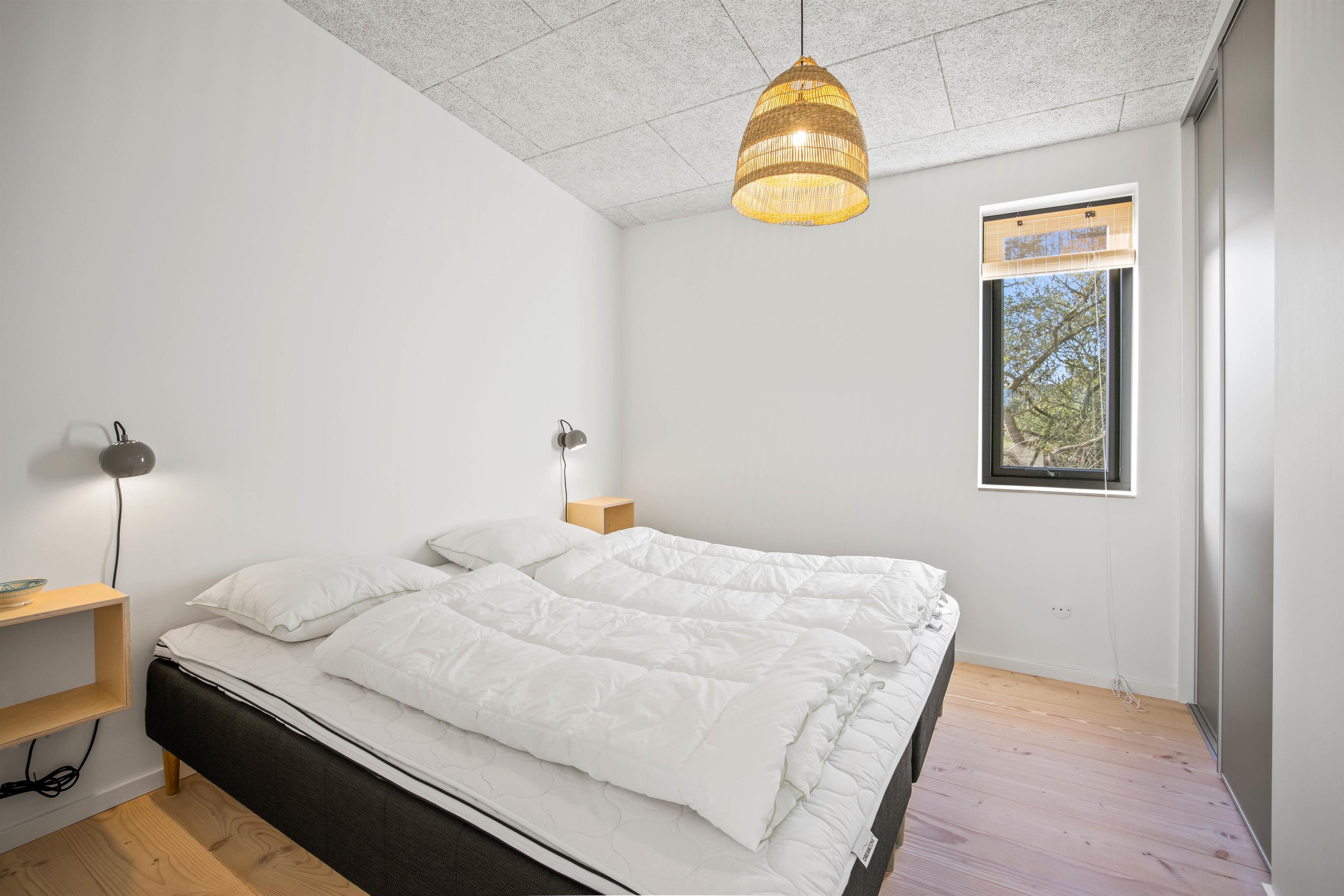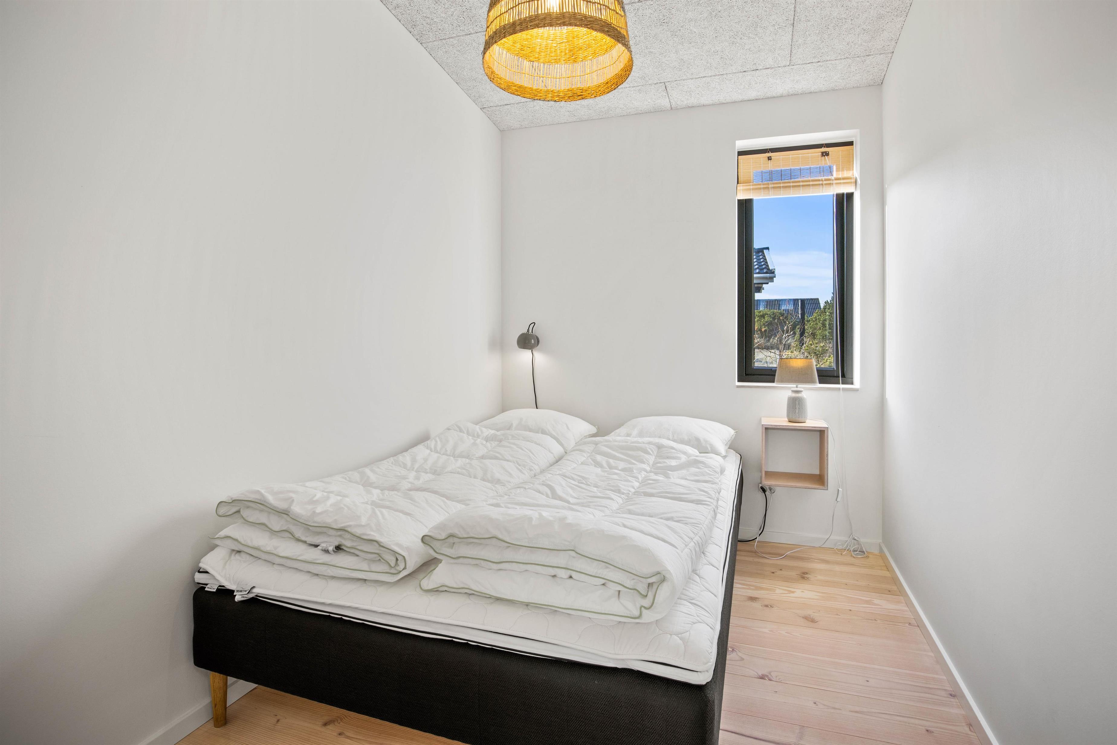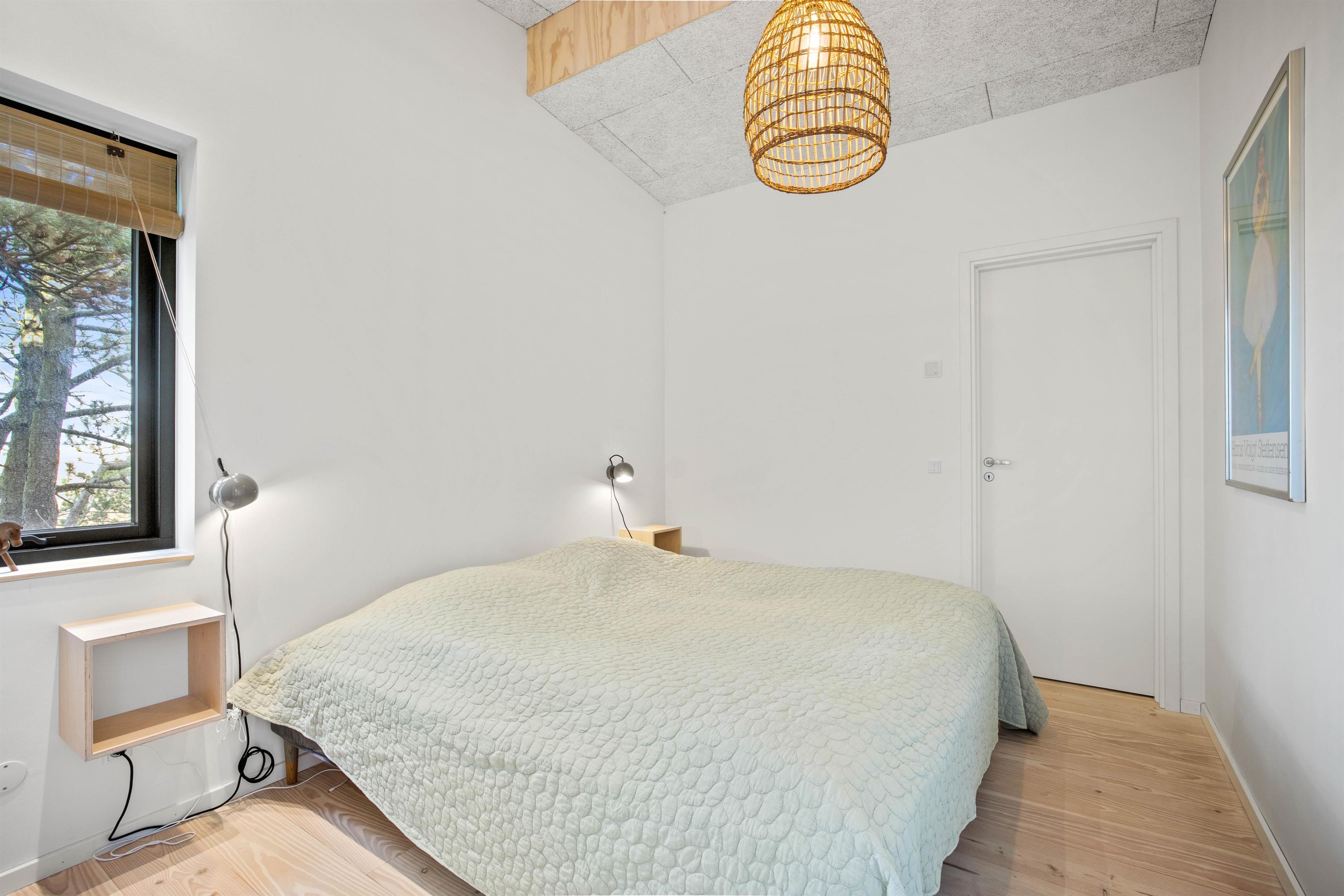 Udover det skønne opholdsrum finder I to badeværelser, tre soverum og bryggers med vaskemaskine. To af soveværelserne er indrettet med dobbeltseng, mens der er en 140x200 seng i det sidste værelse. På to af værelserne findes indbyggede skabe, så tasker osv. kan gemmes væk, mens I holder ferie.