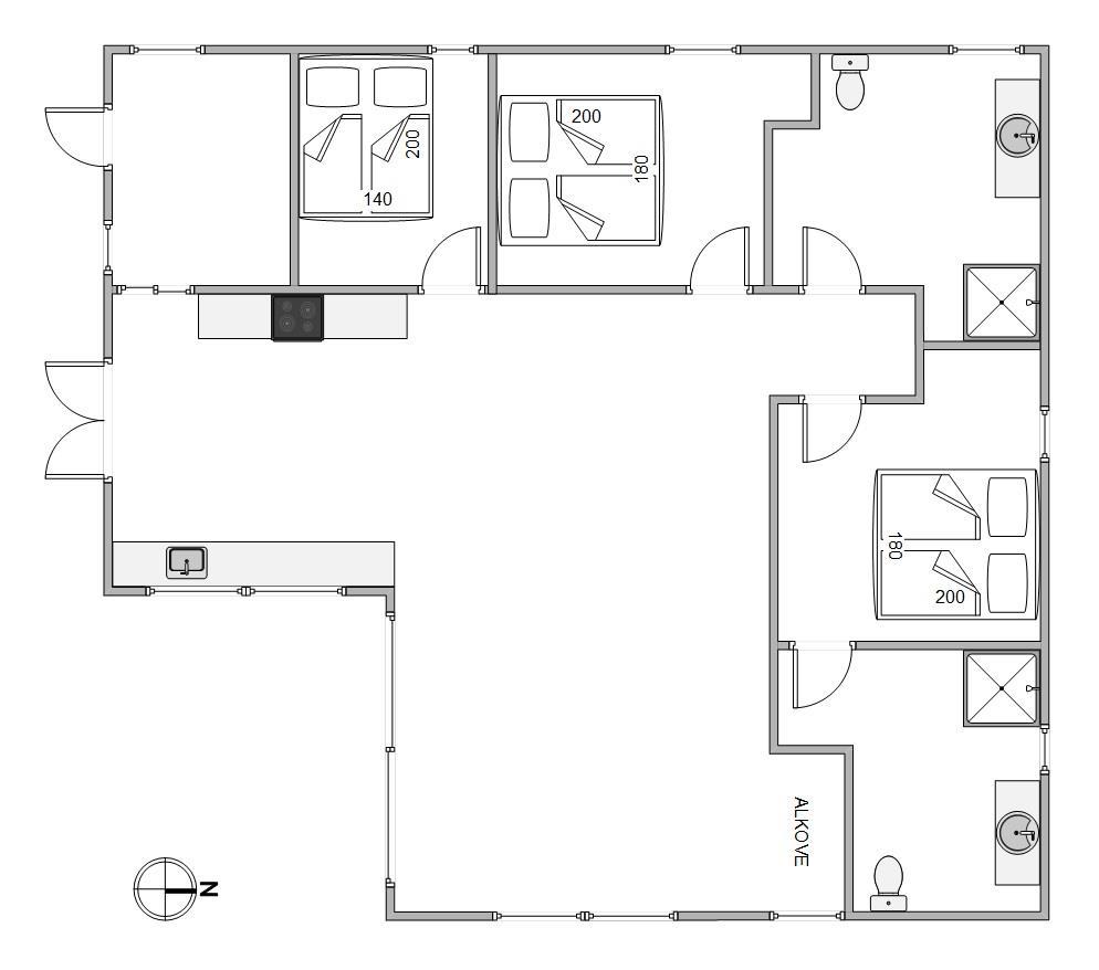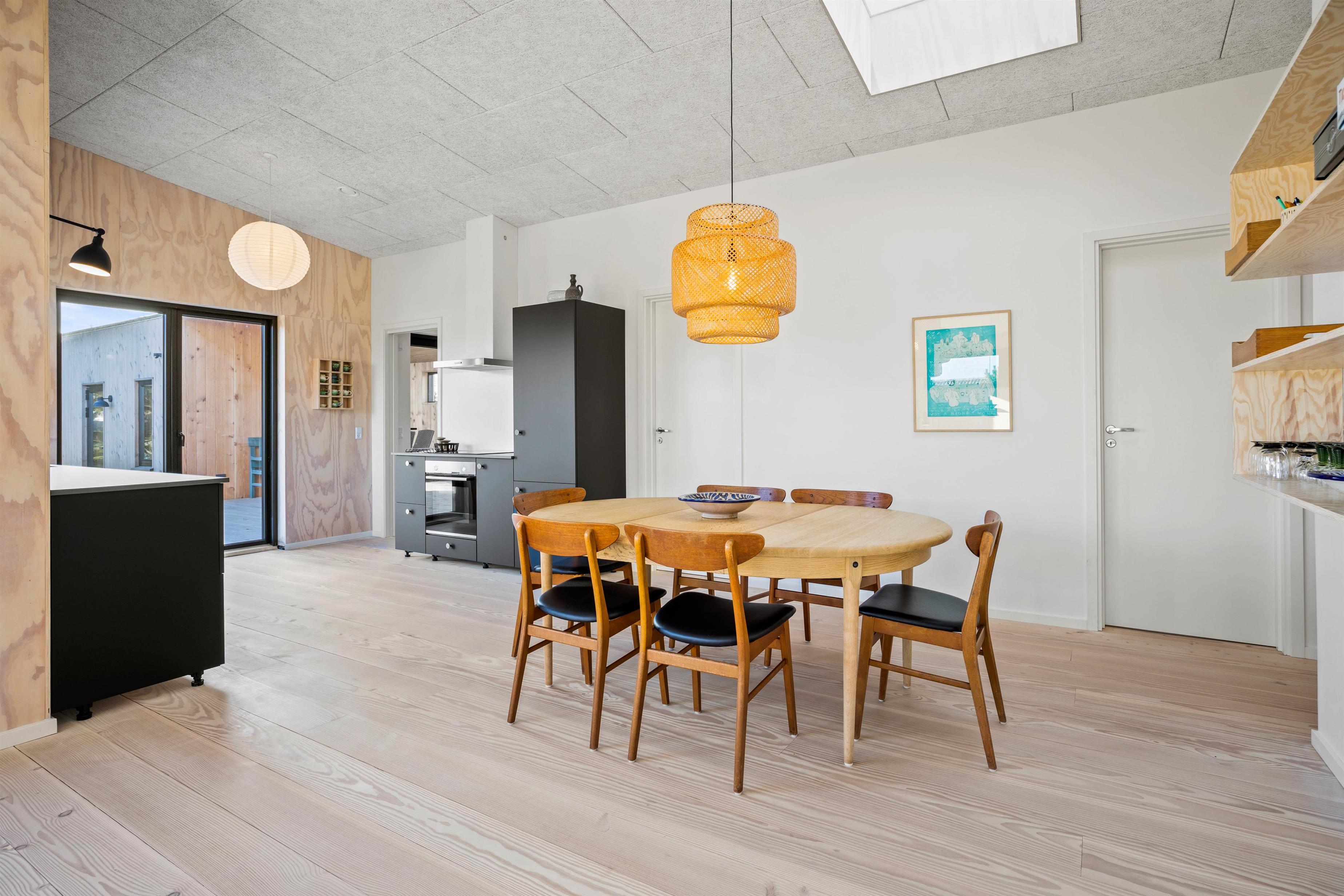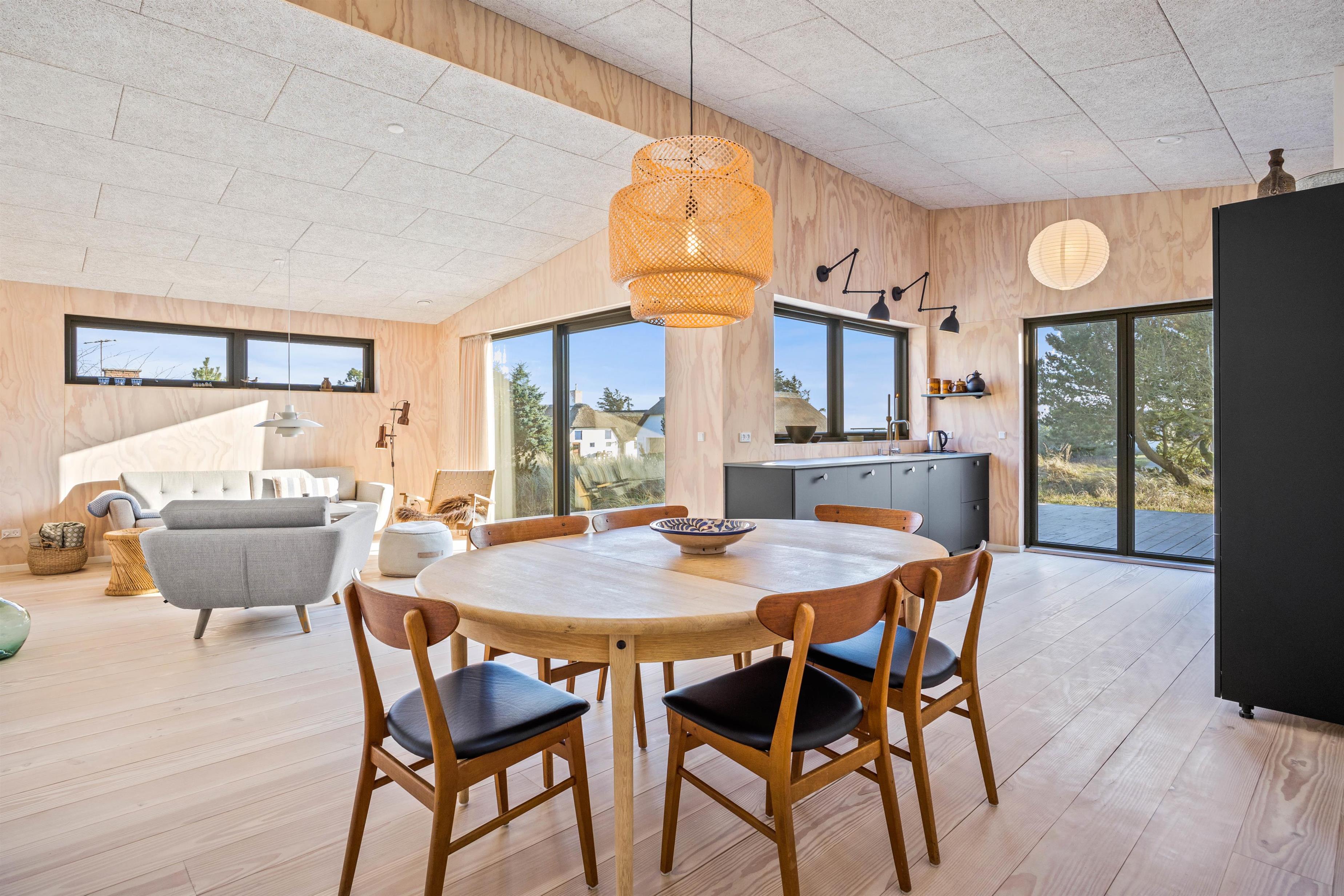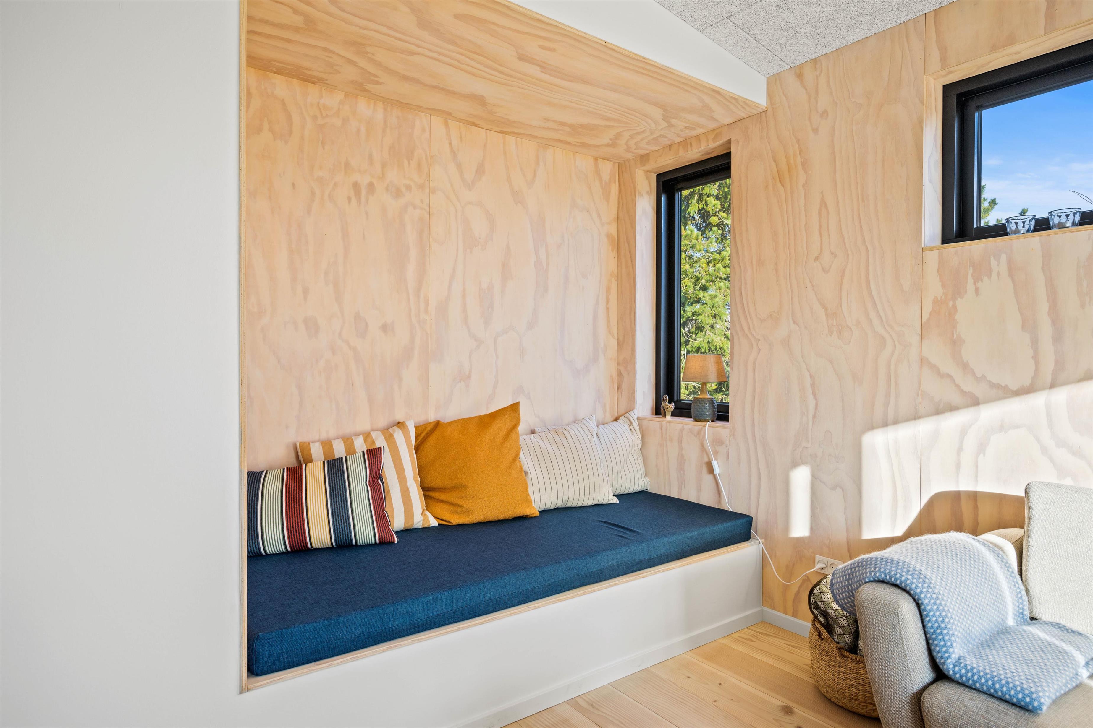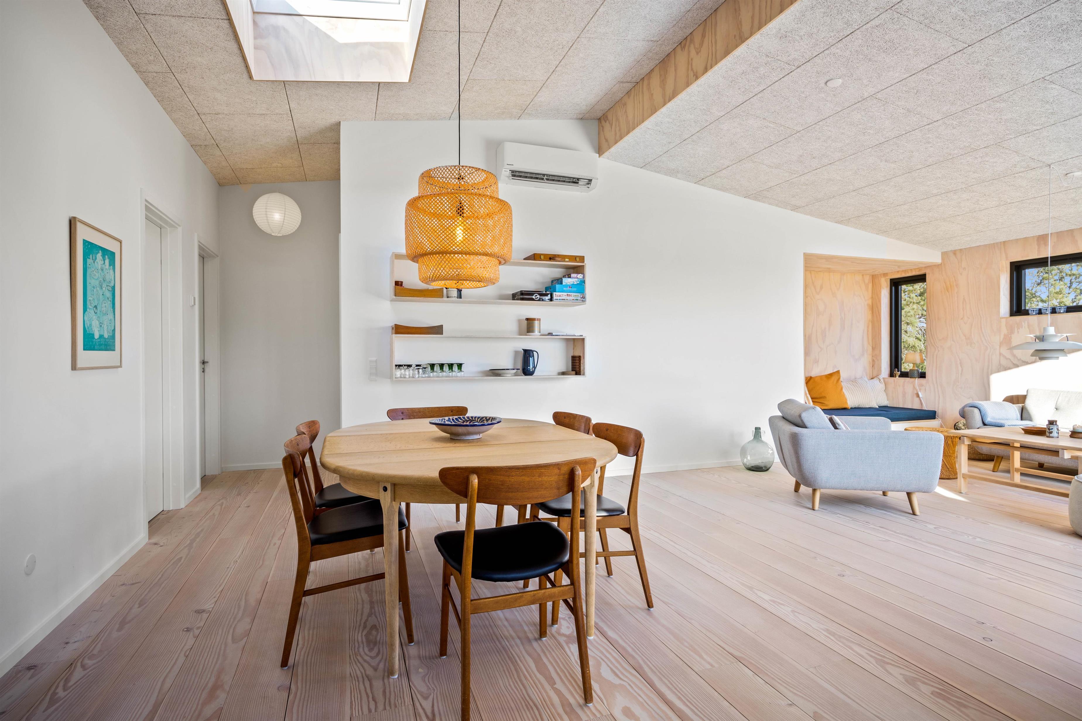 Feriehusets hjerte er det store opholdsrum med køkken og stue i åben forbindelse, hvor der er rummeligt og plads til jer alle. Den funktionelle planløsning gør det nemt at være sammen, selvom I gerne vil lave noget forskelligt. I sofaarrangementet kan I holde spilaften, eller I kan streame jeres yndlingsfilm via sommerhusets Chromecast. I hjørnet er den skønne hyggekrog, alkoven, hvor du kan læse en god bog eller blot slappe af, mens der laves en skøn middag i køkkenet.