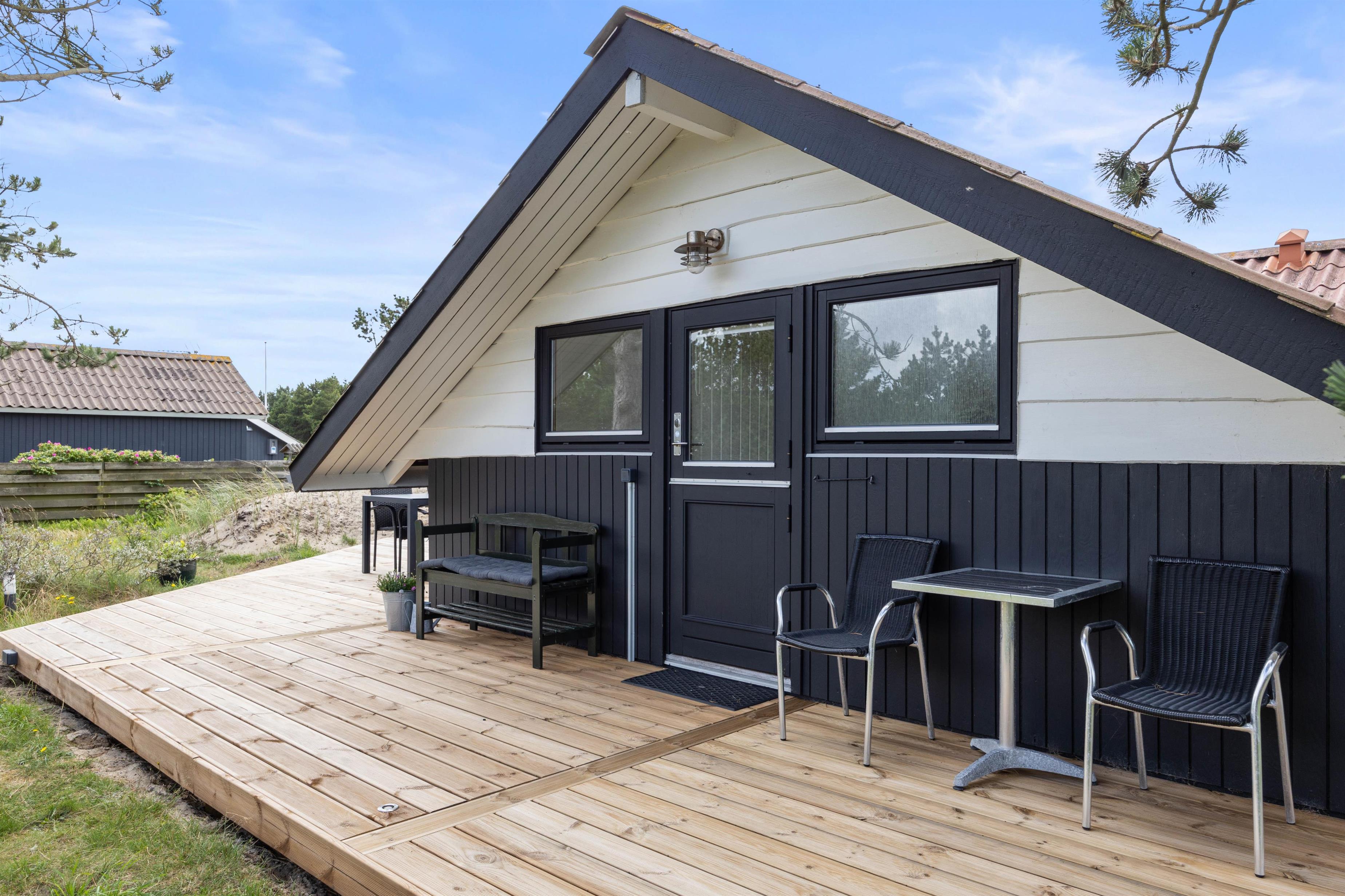 På sommerhusets terrasse står der havemøbler og liggestole klar til jer, så I kan finde jer en god plads, hvor I kan nyde sol og afslapning. Derudover har I også en hyggelig have, og her vil jeres hund helt sikkert elske at snuse rundt.