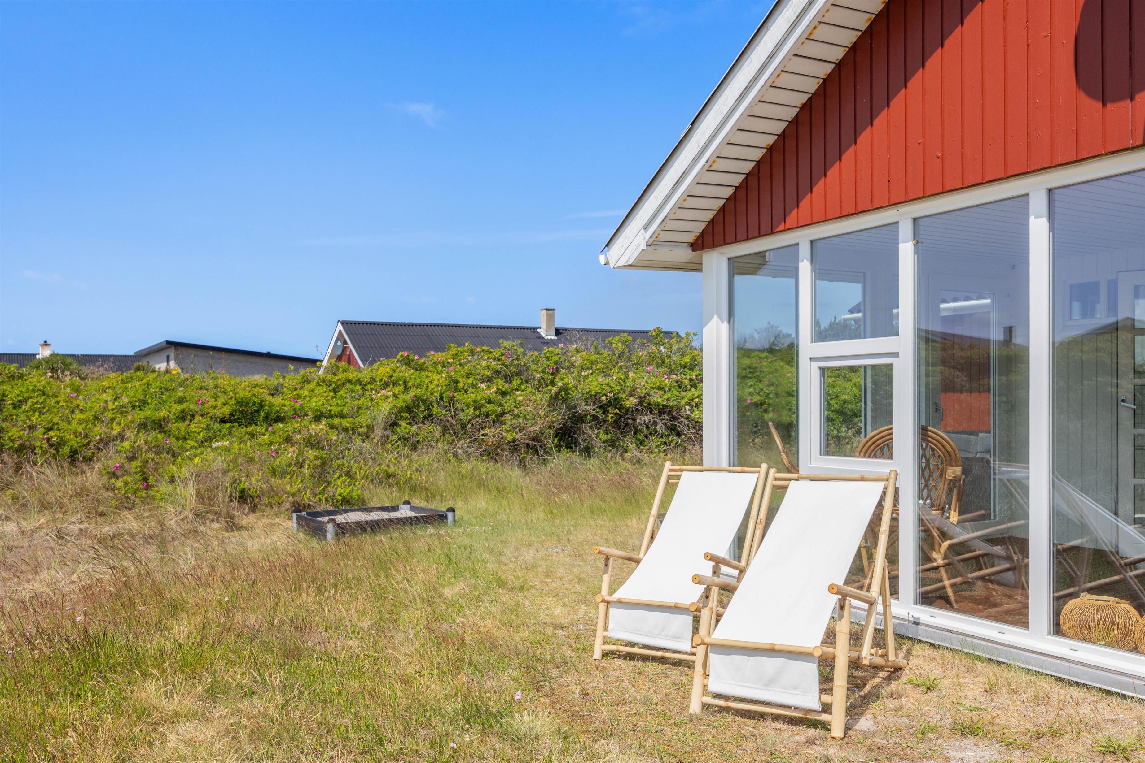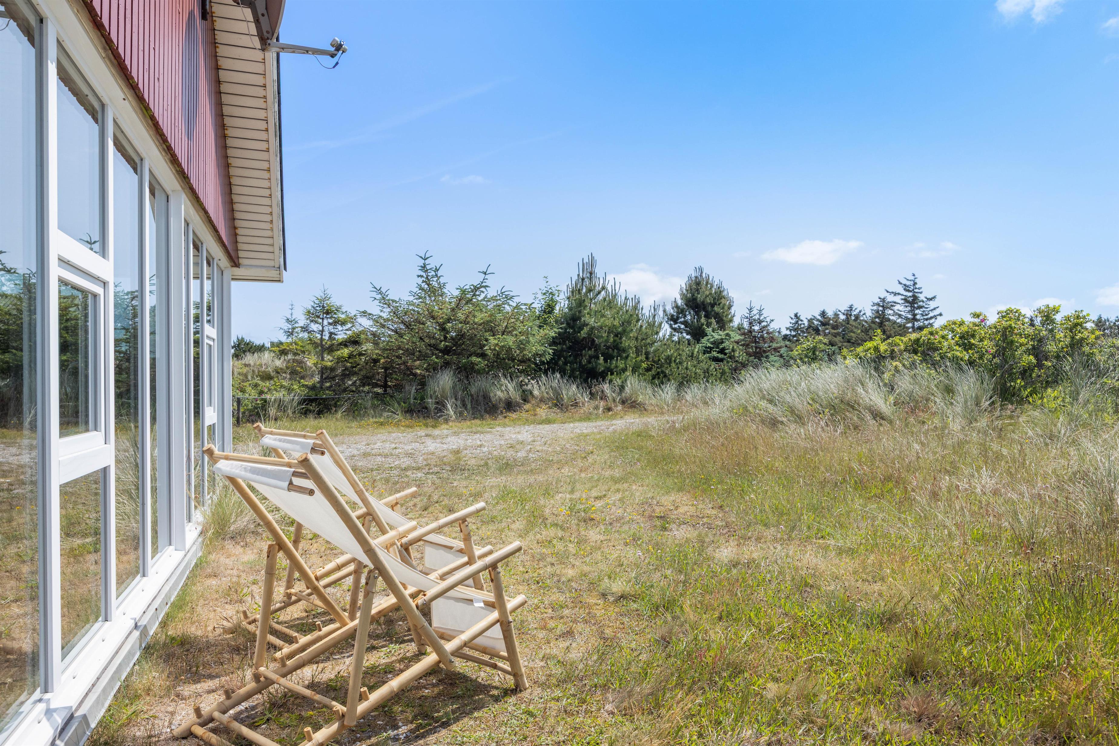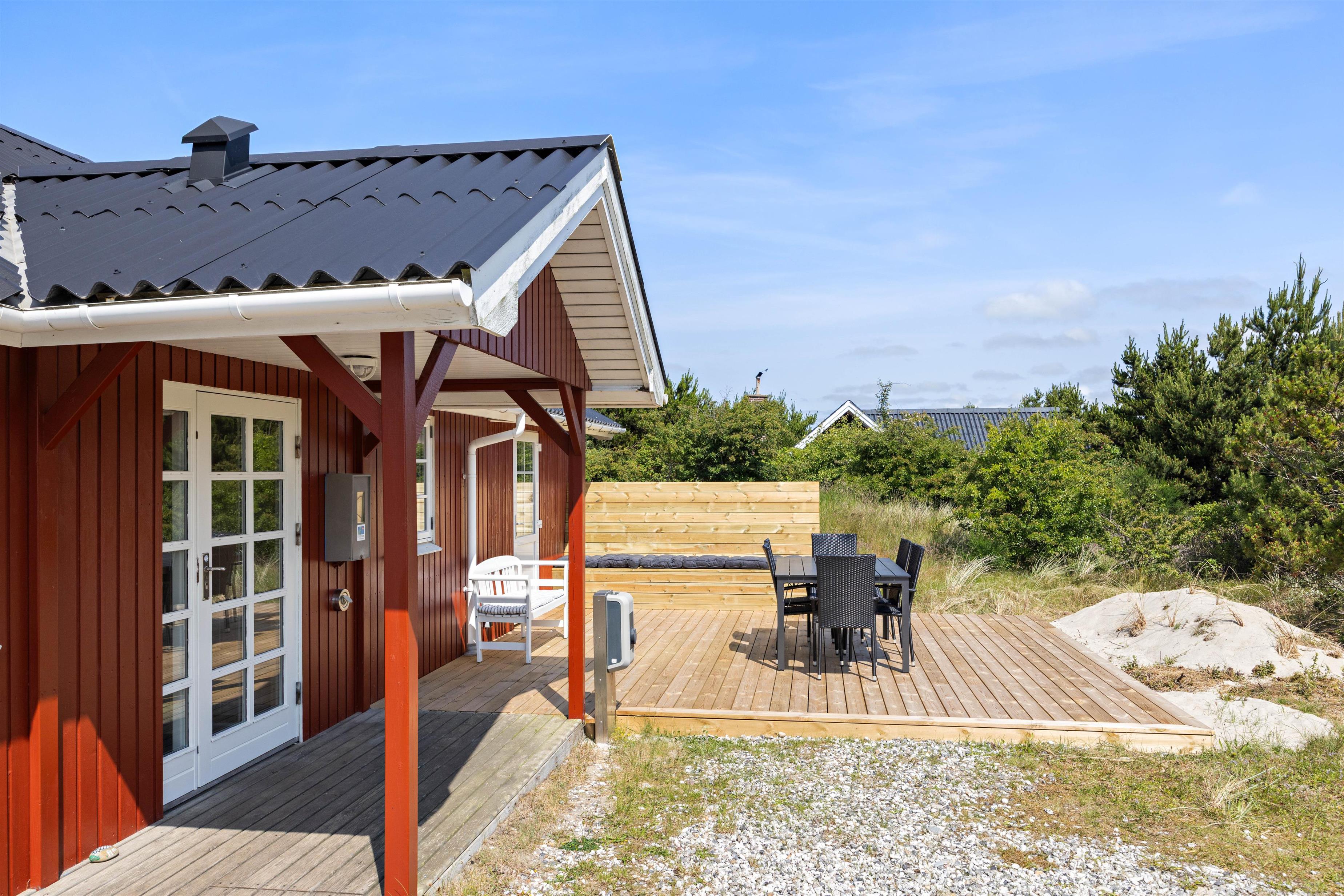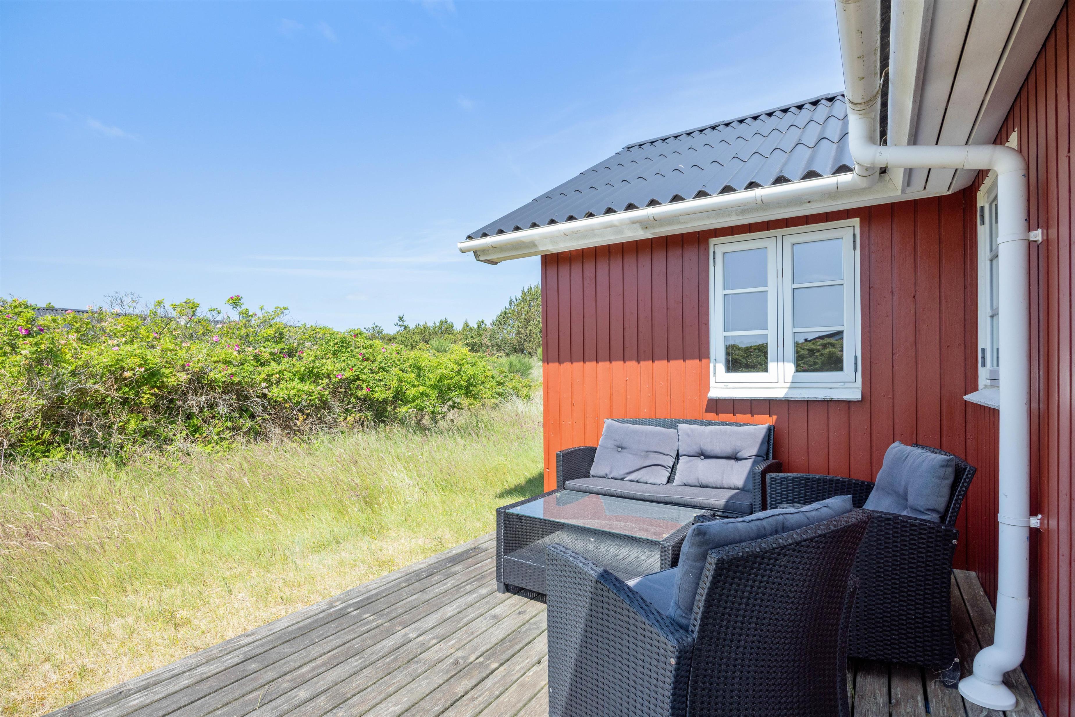 På den åbne terrasse har I frit udsyn til den skønne og fredfyldte natur der ligger omkring sommerhuset. Sommerhuset er nemlig beliggende på en smuk natur- og klitgrund, som er præget af de karakteristiske lyng og marehalms områder.