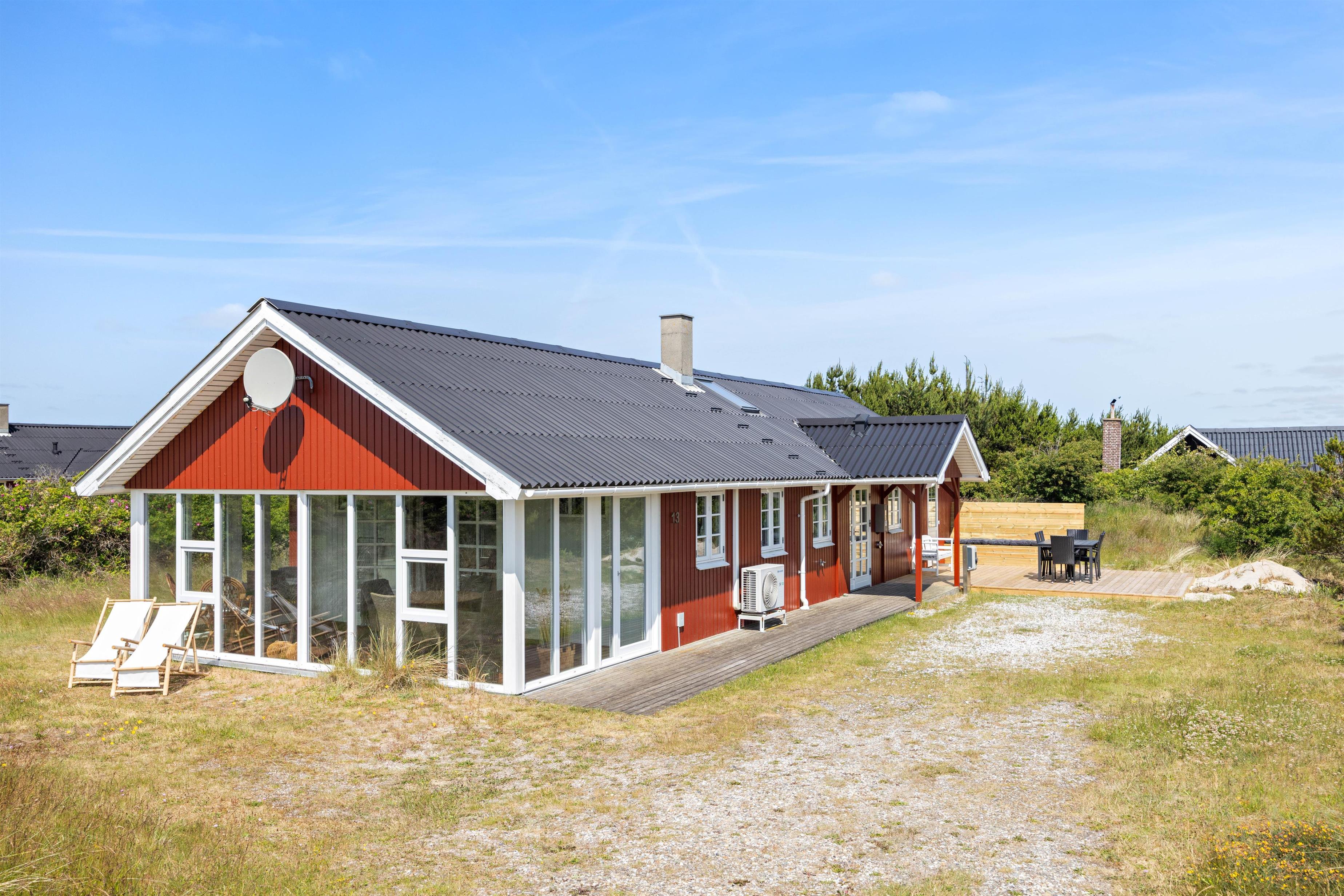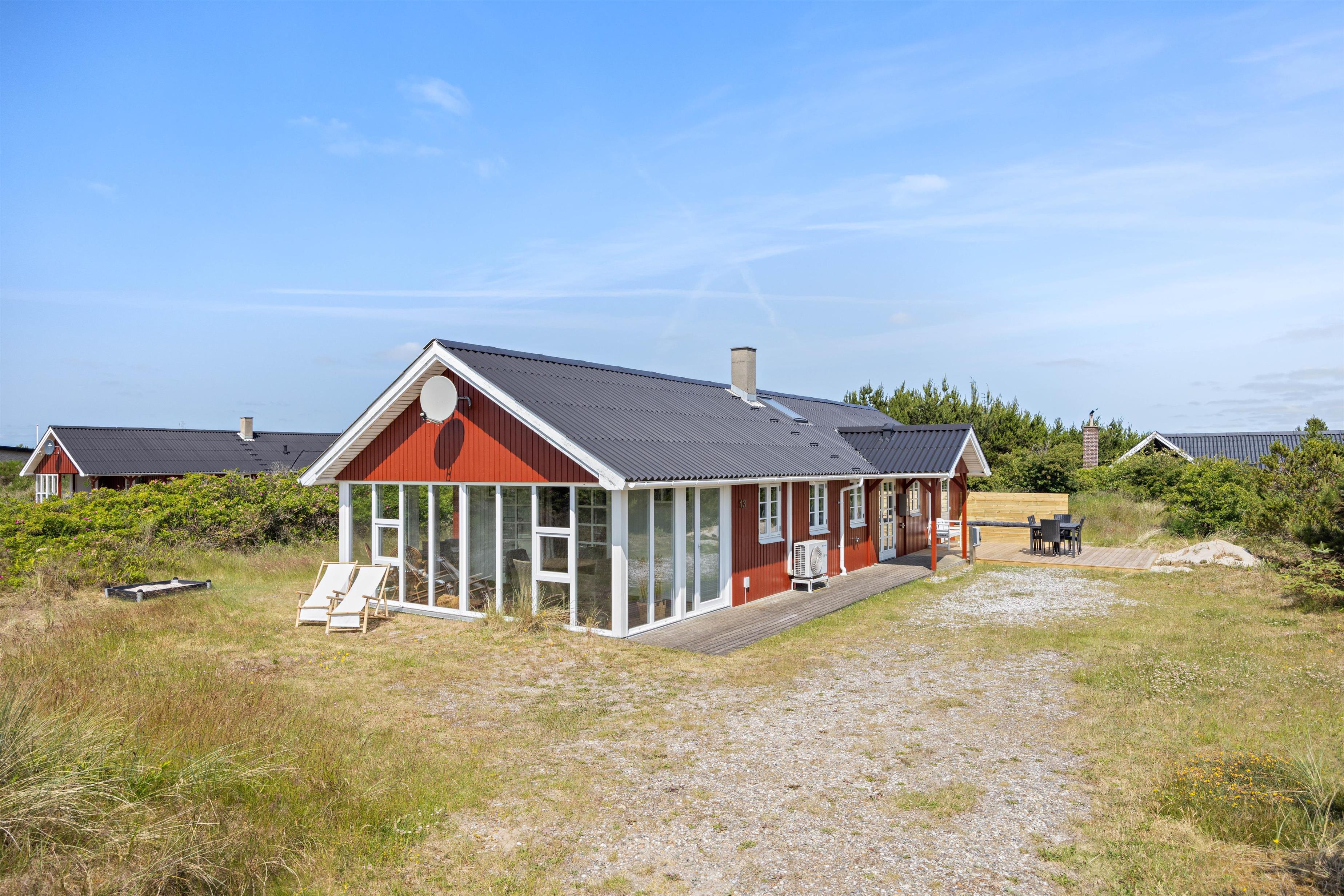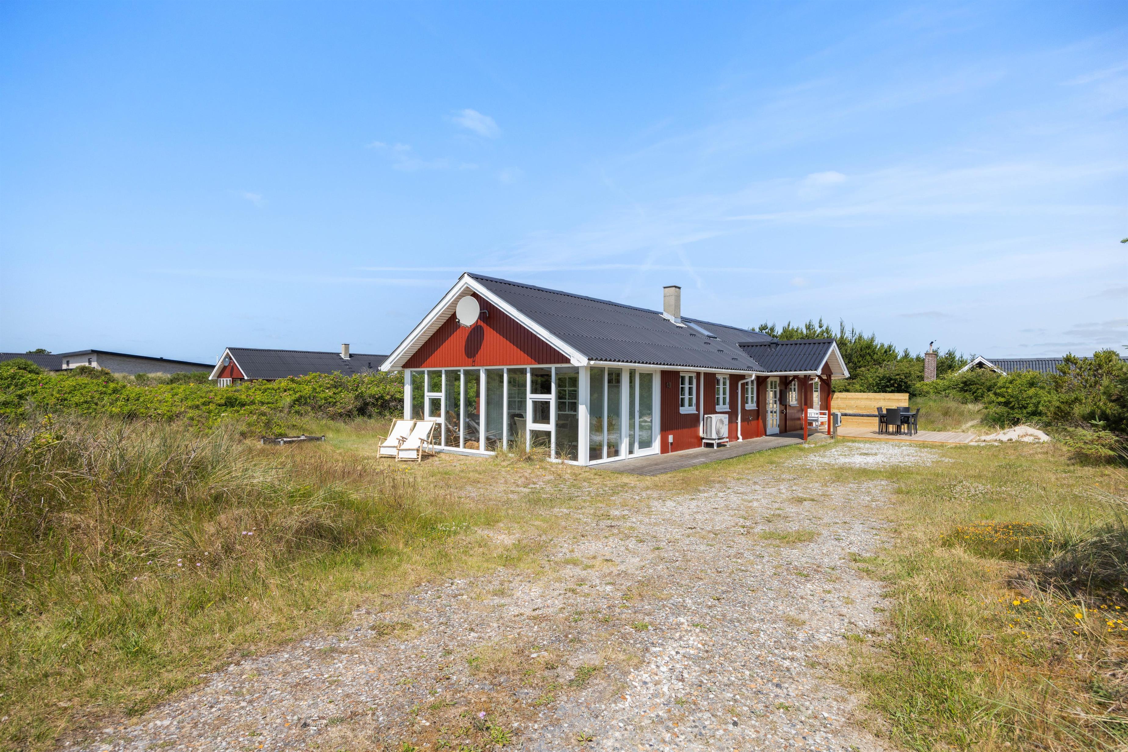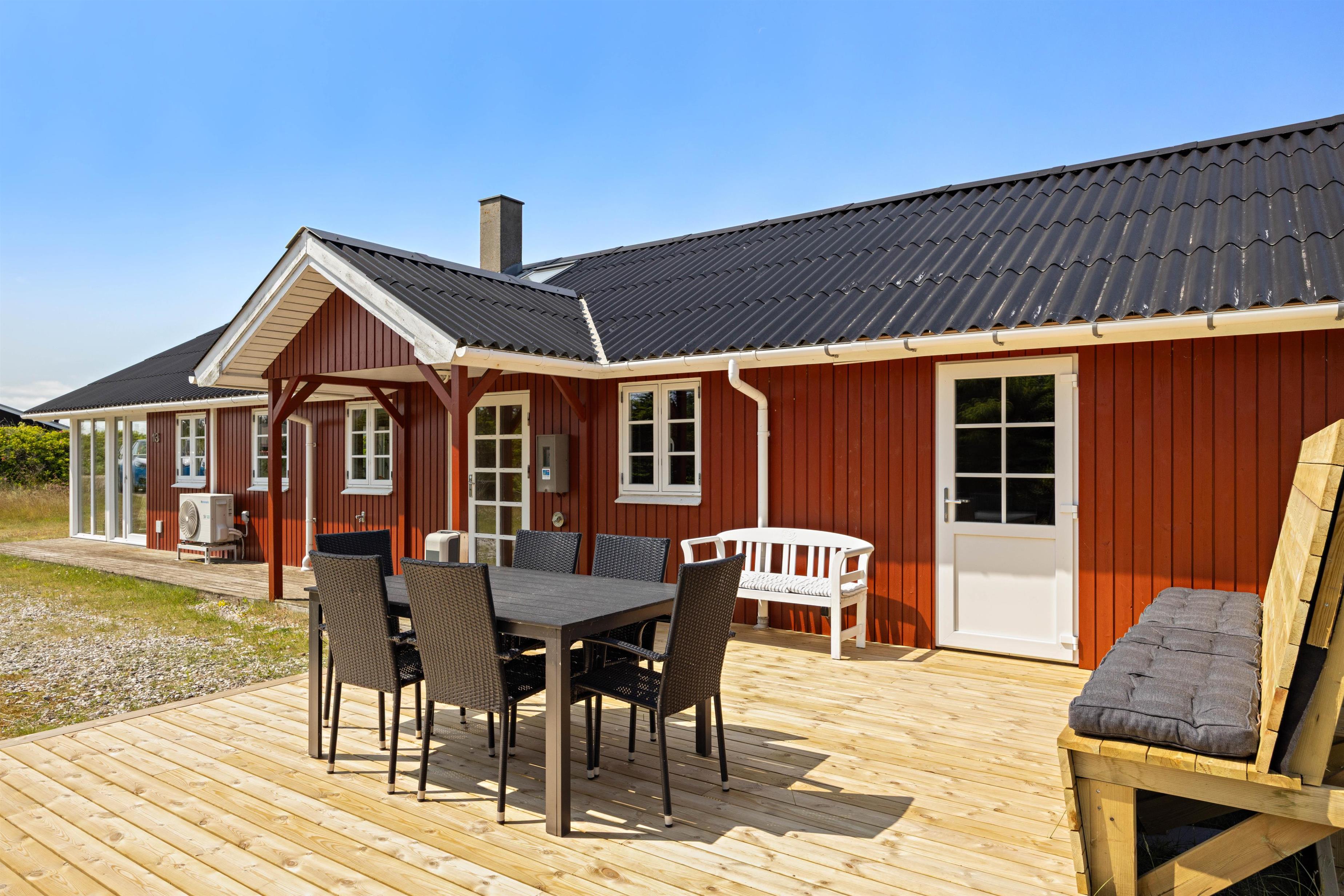 På den åbne terrasse har I frit udsyn til den skønne og fredfyldte natur der ligger omkring sommerhuset. Sommerhuset er nemlig beliggende på en smuk natur- og klitgrund, som er præget af de karakteristiske lyng og marehalms områder.
