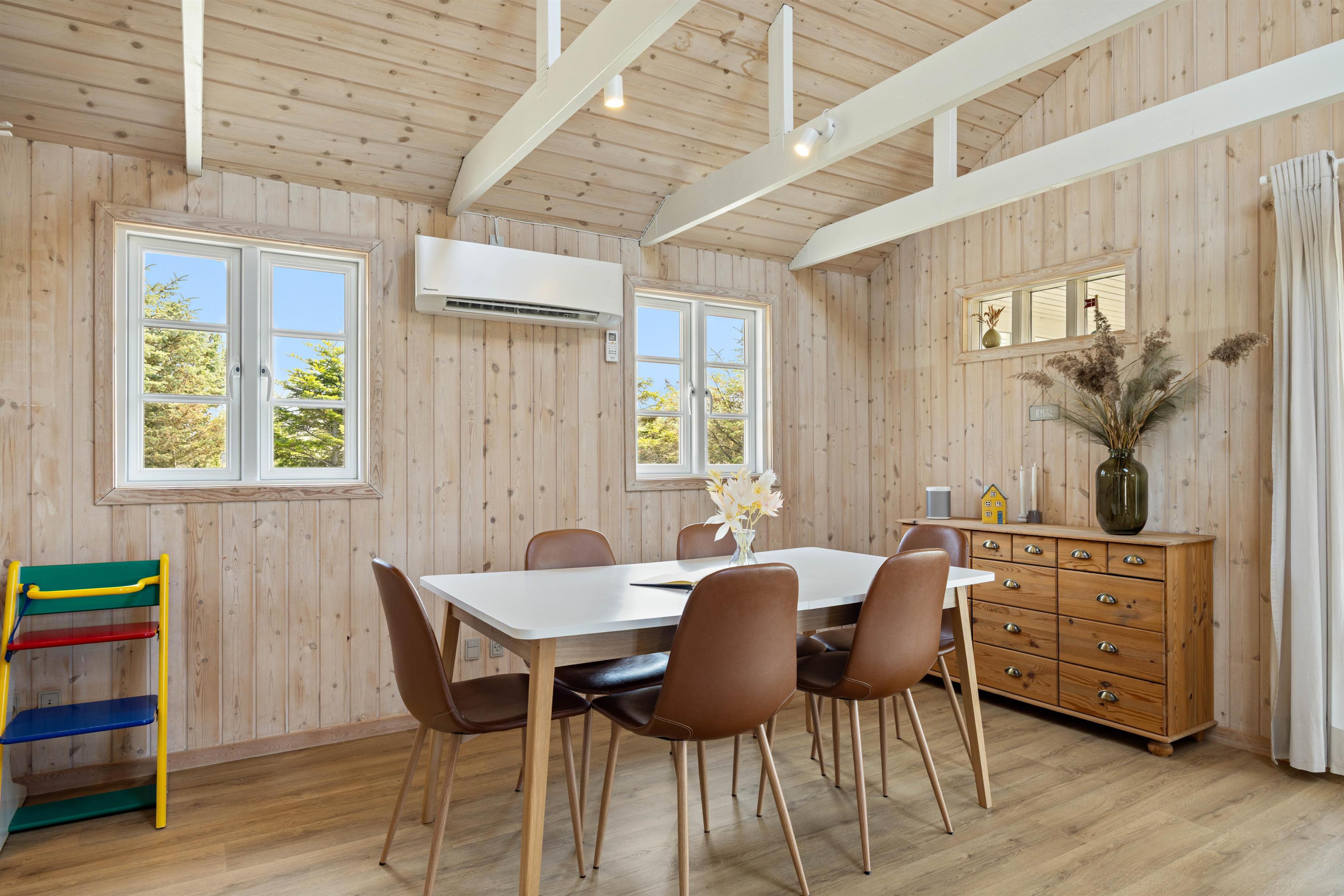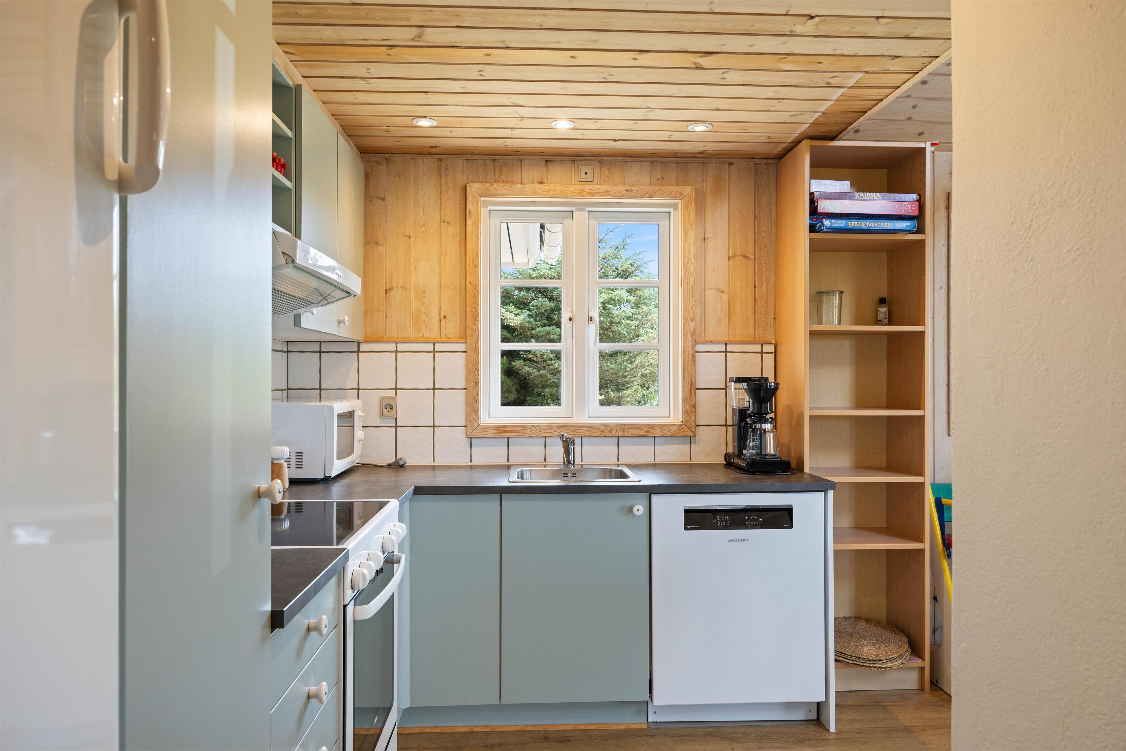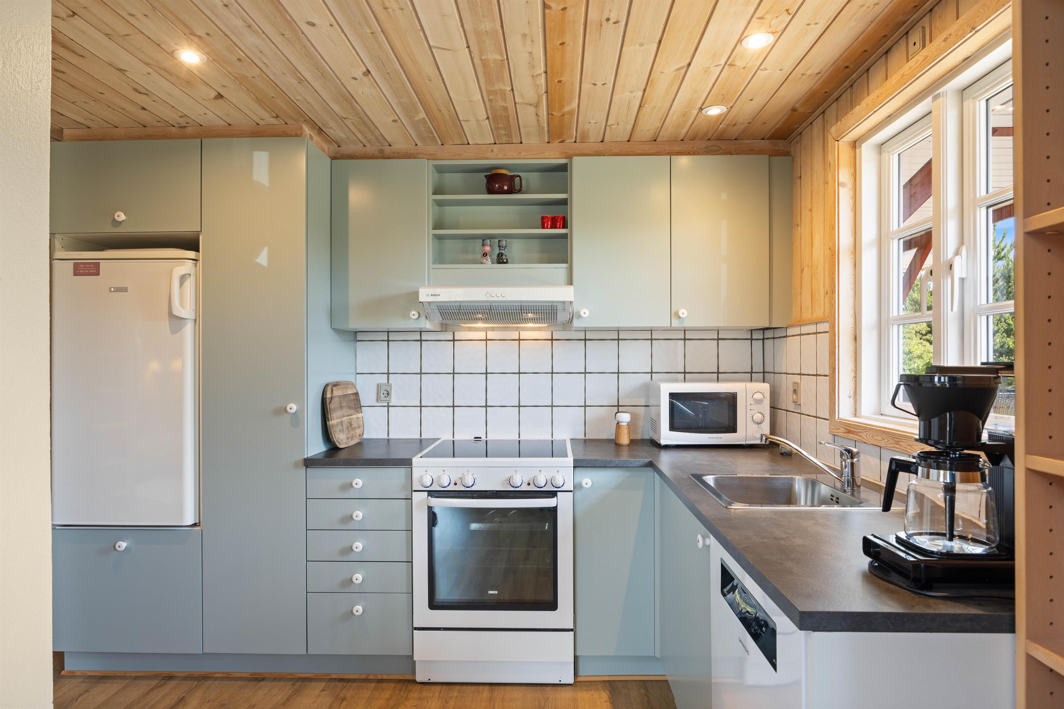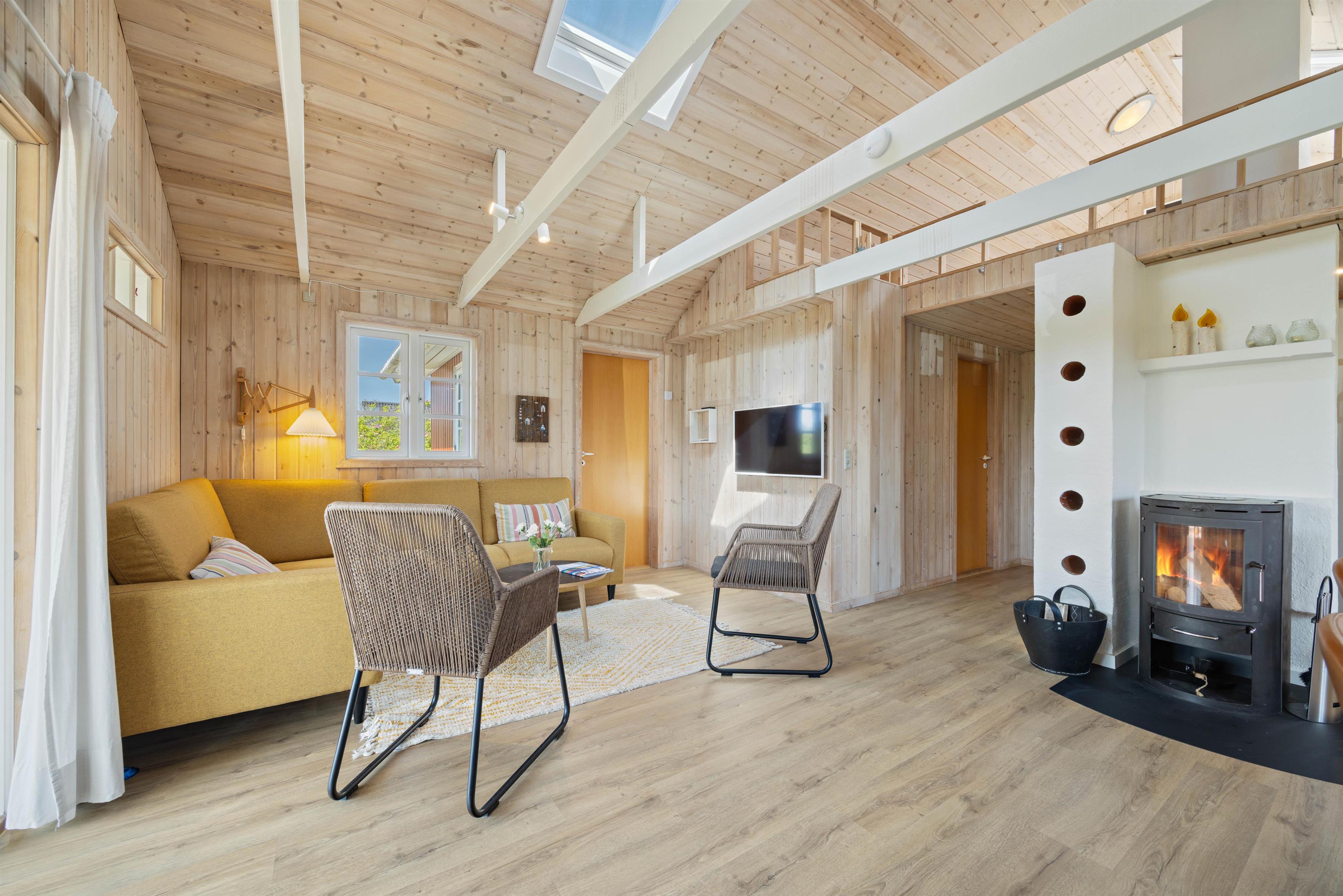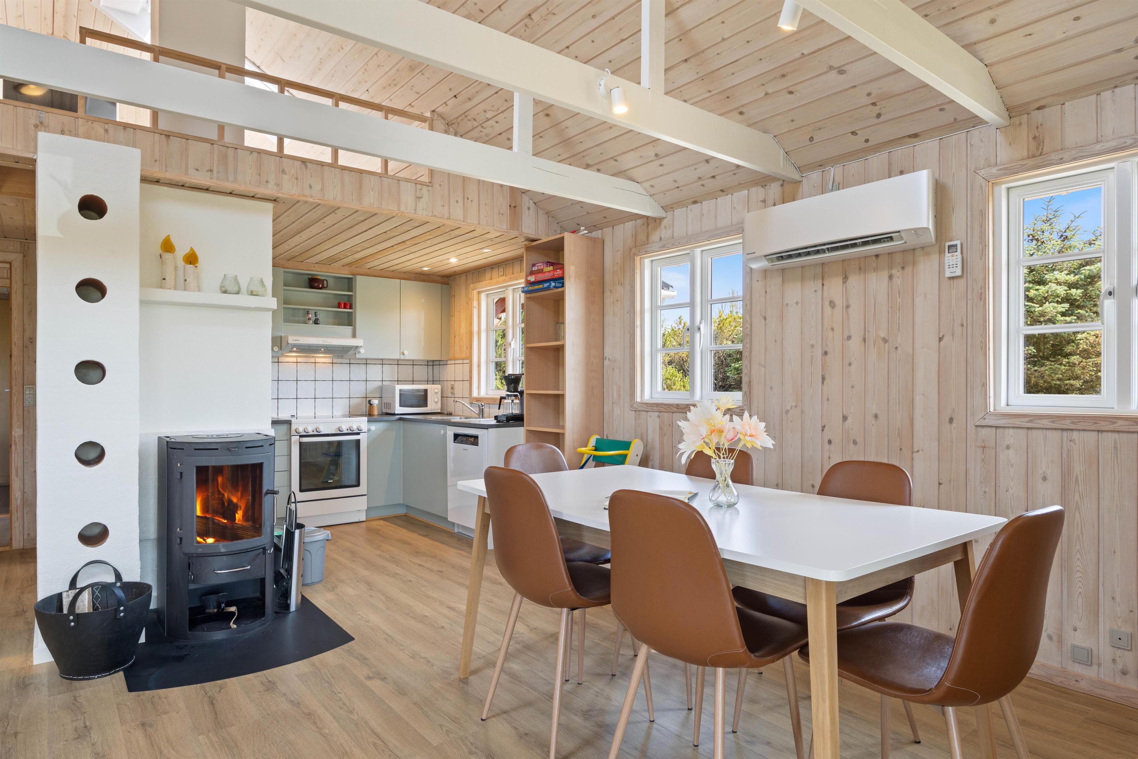 Hvis I har behov for en hyggelig, afslappende og rolig ferie, hvor der primært skal være fokus på at få ladet batterierne op og hyggeligt samvær med familien. Så er sommerhuset på Anker Eskildsens vej 13 et rigtig godt bud. Et funktionelt køkkenalrum vil danne rammer for en ferie med nærvær i fokus, her kan I nemlig lave dagens lækre måltider, se tv på apple tv’et eller nyde varmen fra brændeovnen.