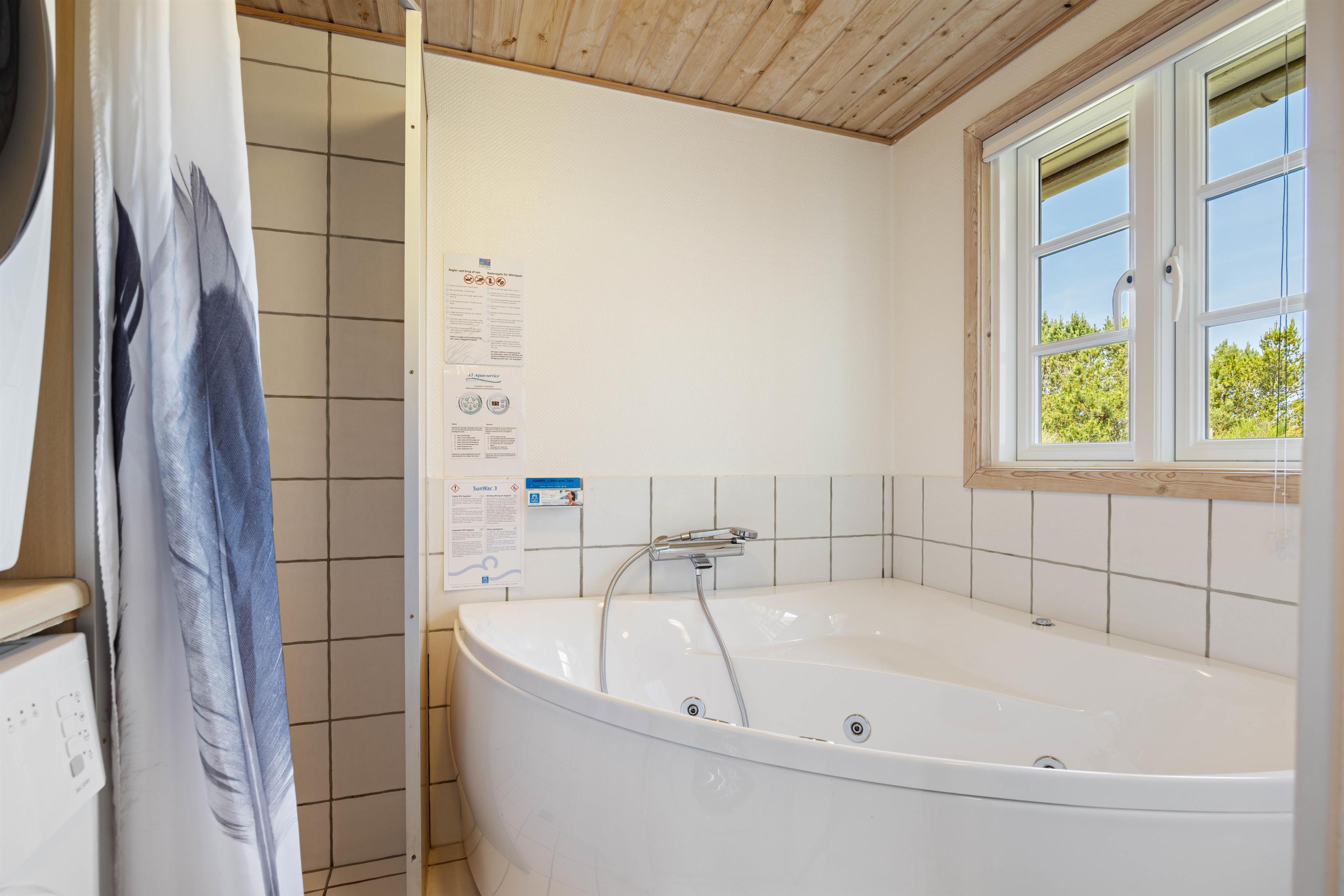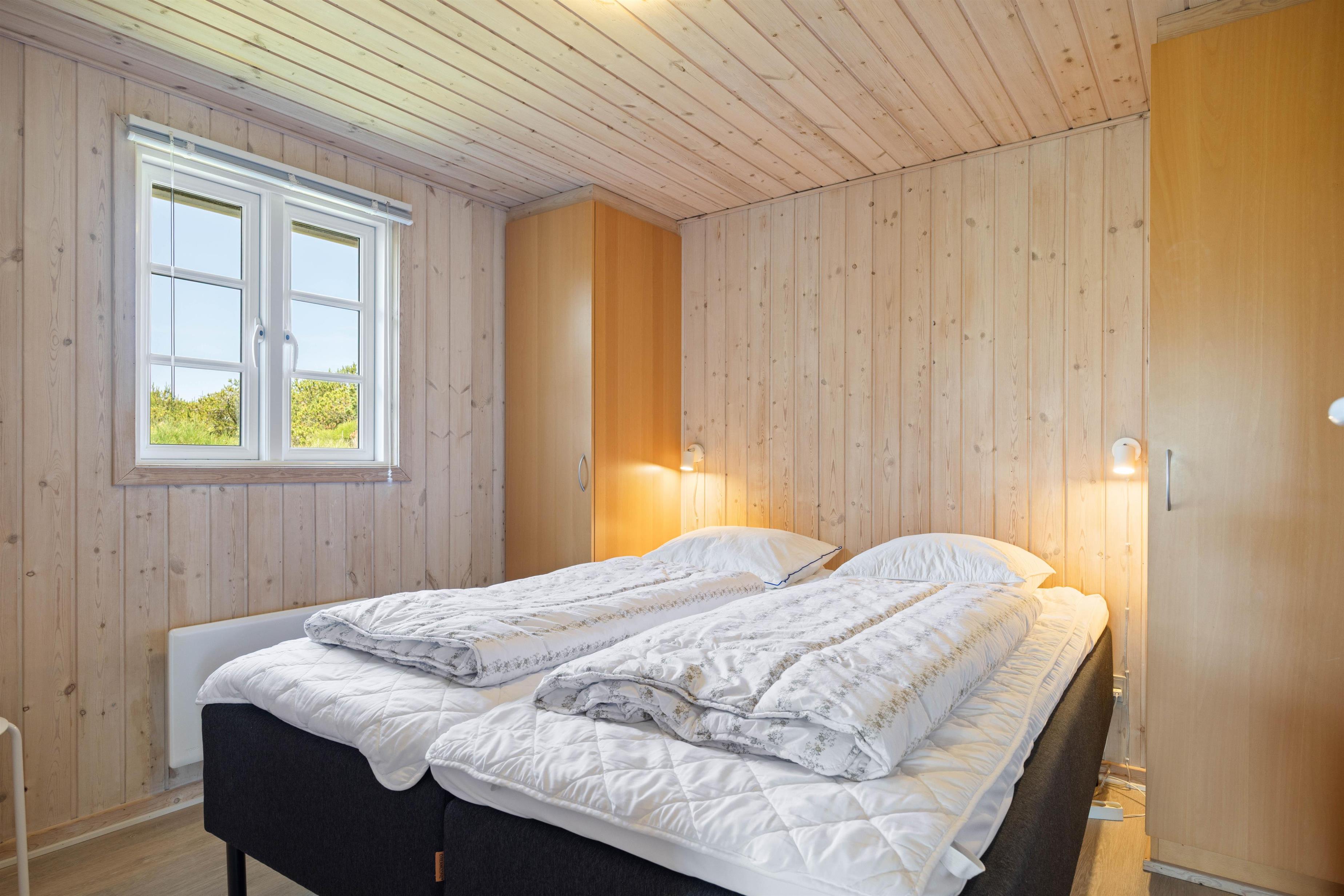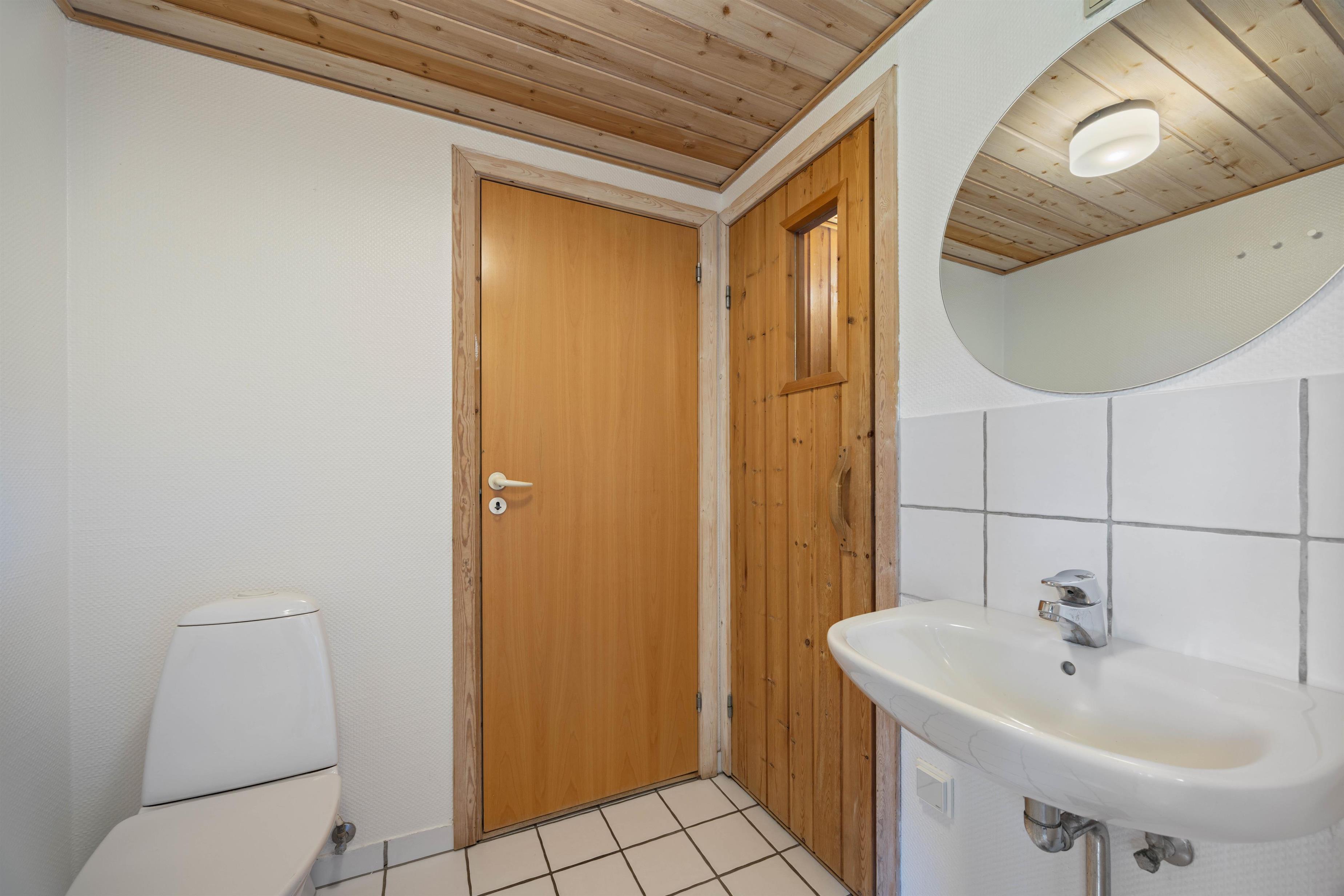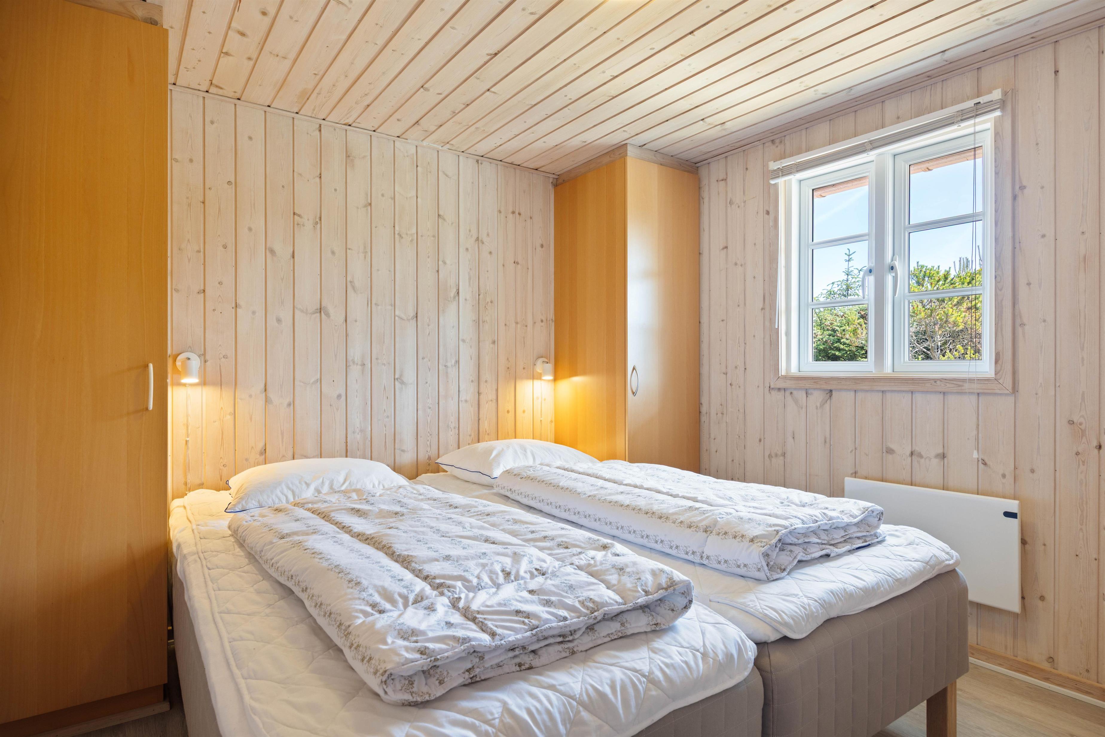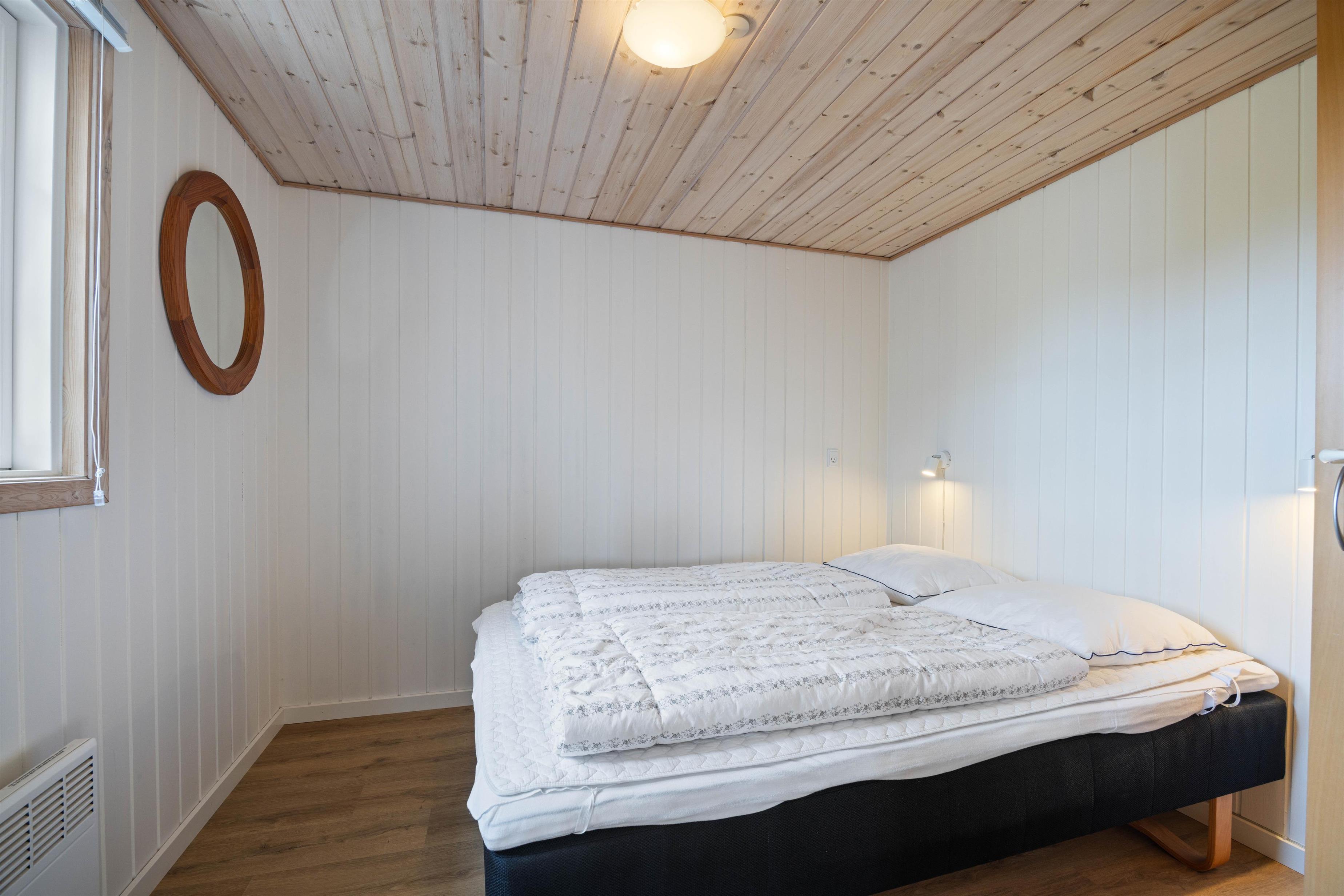 Sommerhusets 6 sovepladser er fordelt på 3 soveværelser med henholdsvis 3 dobbeltsenge. Soveværelserne har et roligt udtryk, som helt sikkert vil sørge for en rolig og afslappende nats søvn. Sommerhuset har både et badeværelse og et gæstetoilet med gulvarme, så I ikke behøver at stå i kø for at børste tænder om morgenen. På badeværelset finder I desuden en sauna og et spabad, som sørger for et ekstra afslappende element.