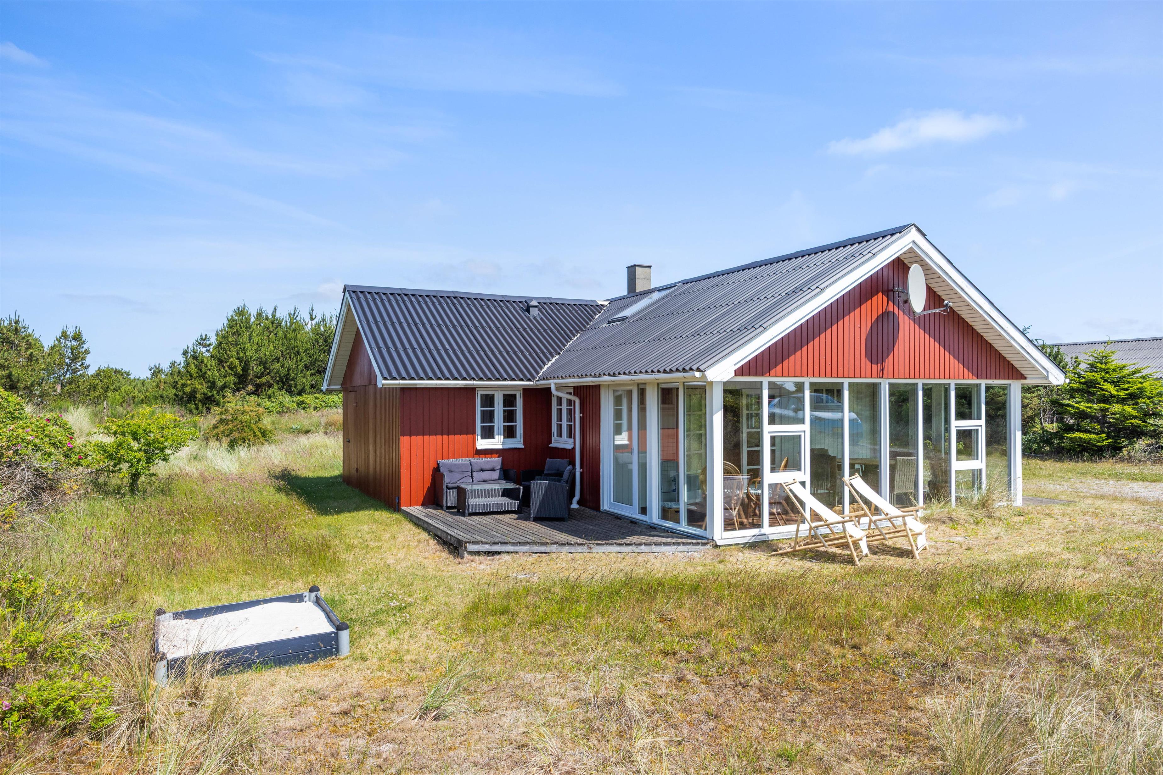 På terrassen kan I nyde hele dagen alt fra morgenkaffen til en lækker og hyggelig grillaften. Udenfor finder I desuden en sandkasse, som de mindste feriegæster garanteret vil elske.