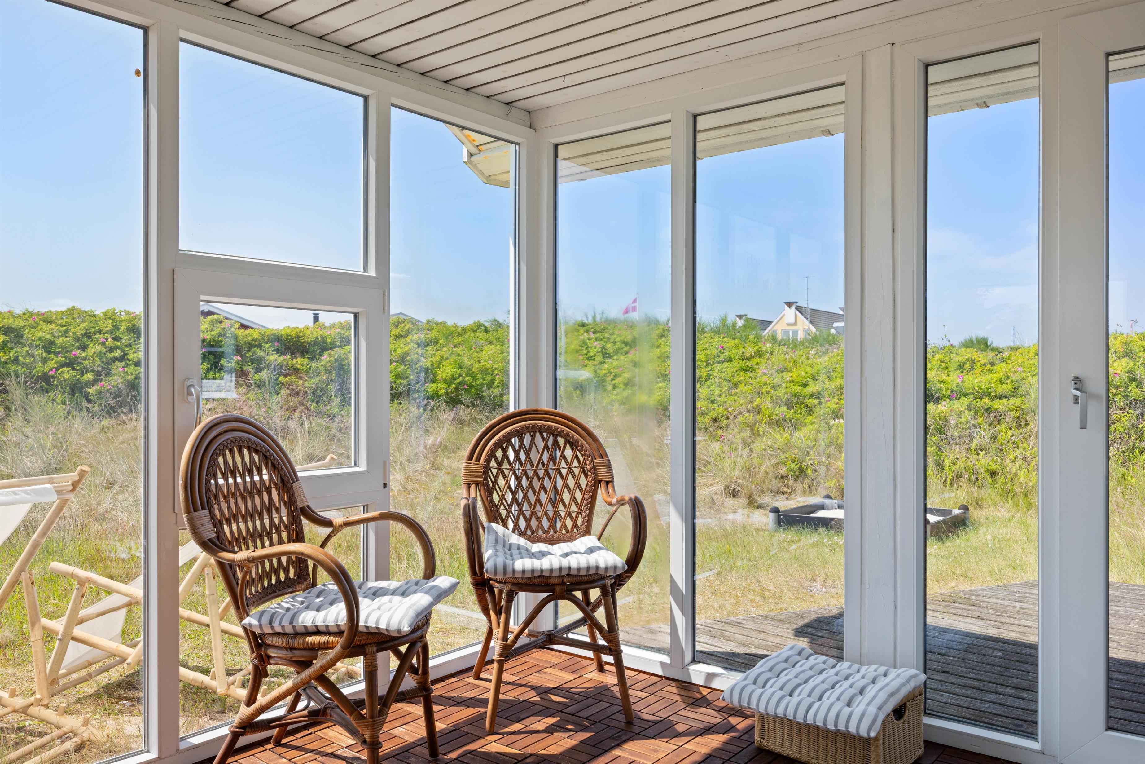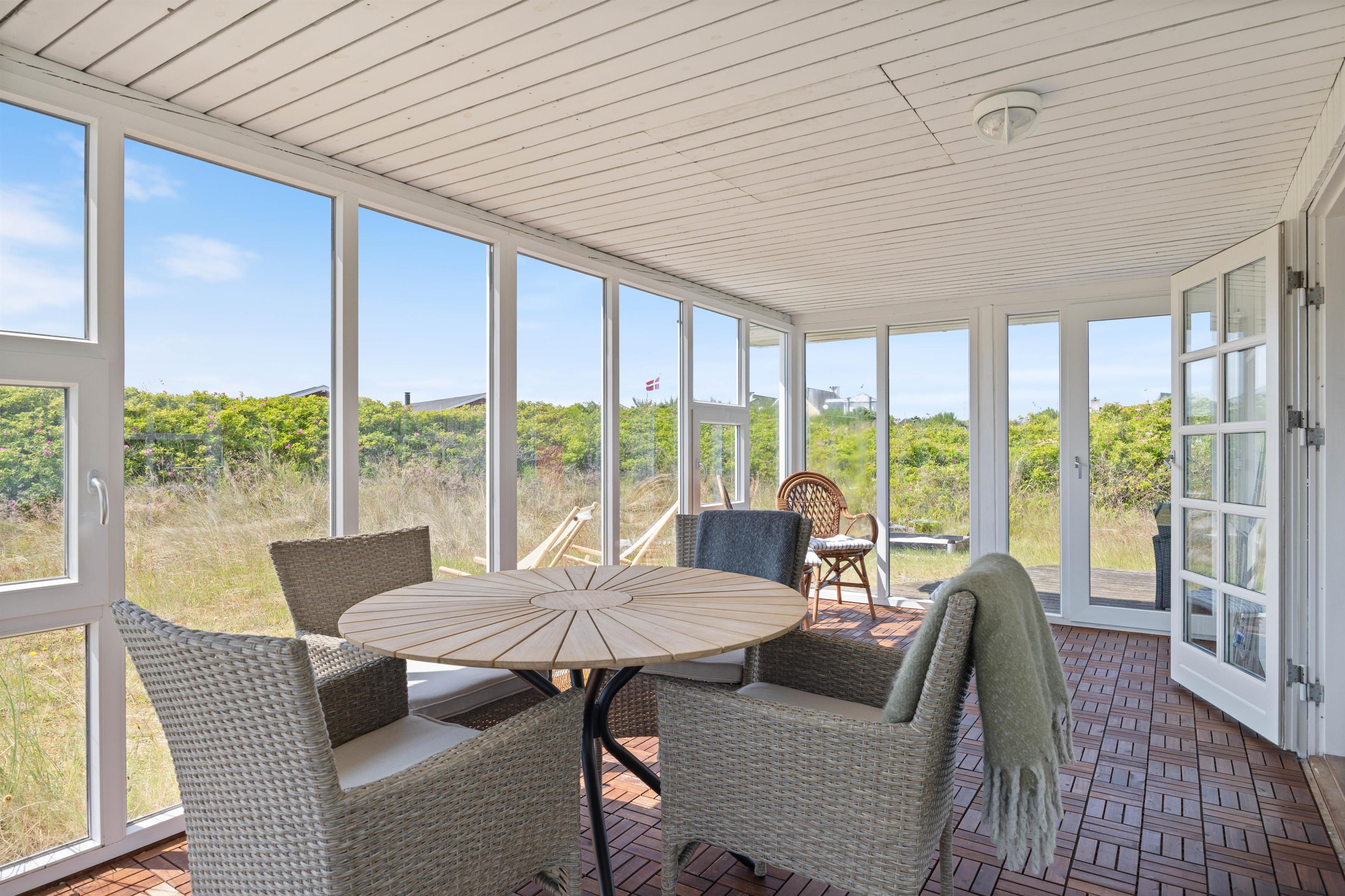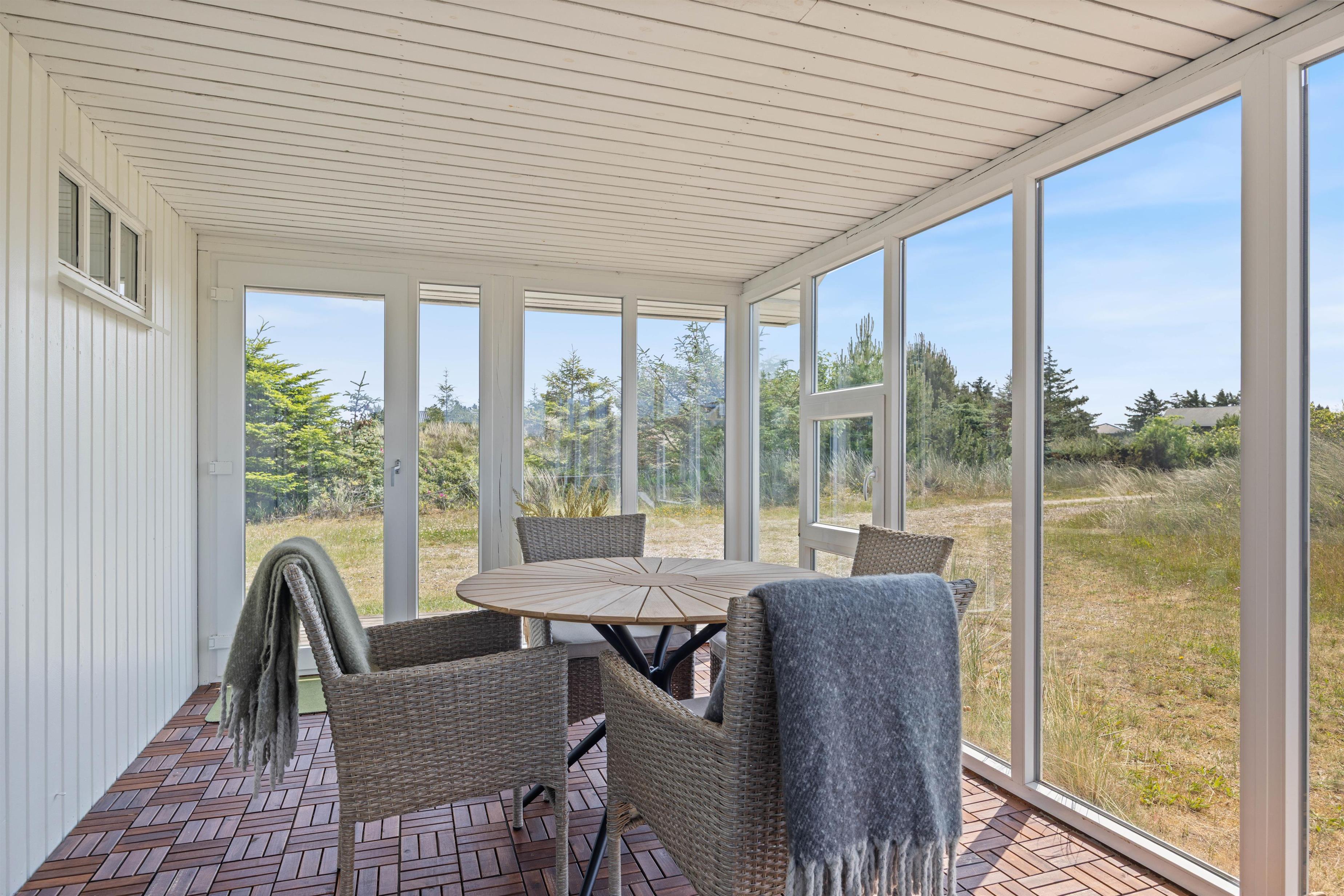 Derudover kan I nyde udsigten til den skønne natur i alt slags vejr i sommerhusets udestue. Perfekt til en rolig morgen med en kopkaffe eller en lun eftermiddag med et brætspil.