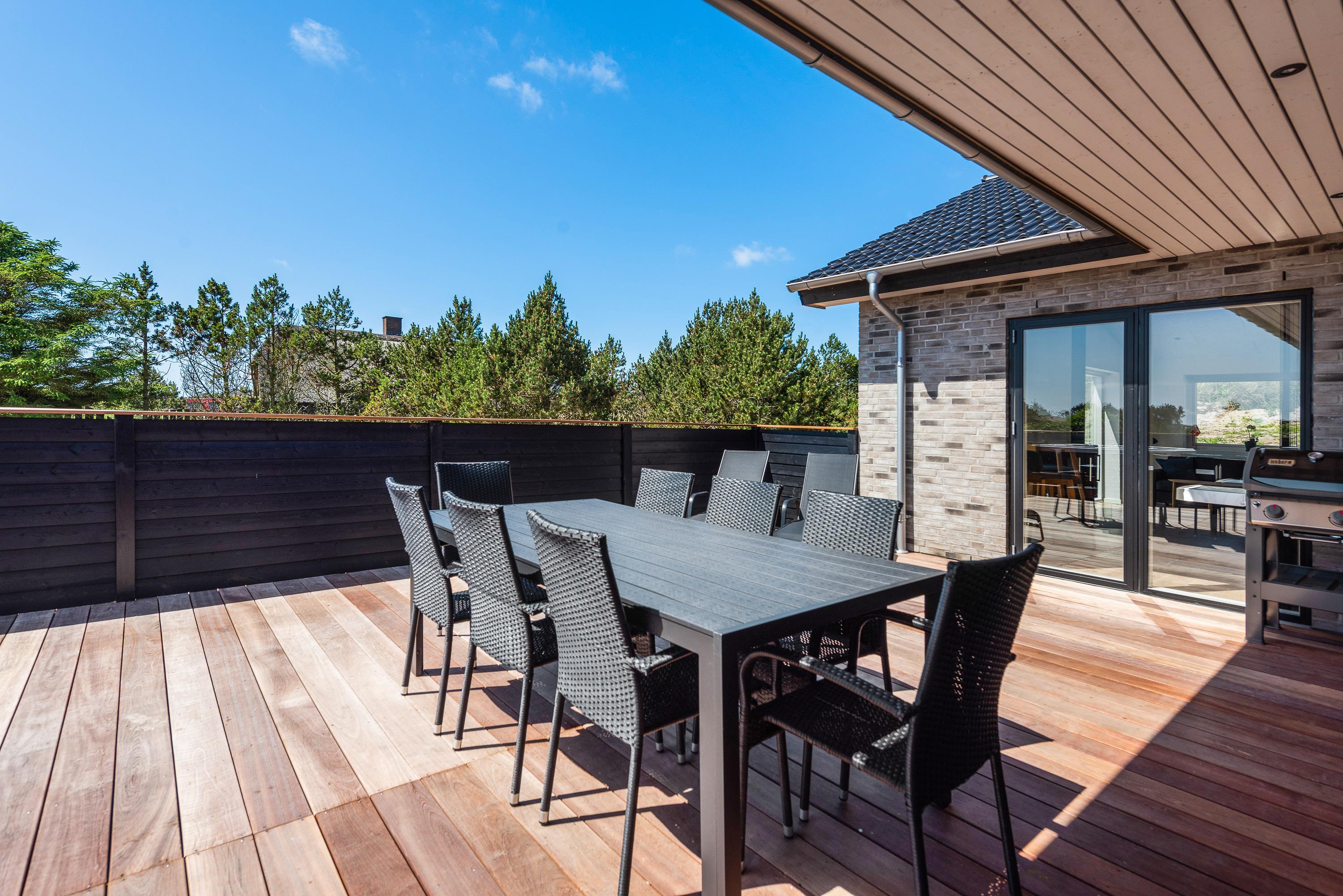 Den lækre, vestvendte terrasse har både en overdækket og en åben del. Den er desuden lukket af hele vejen rundt, så I roligt kan lade hundene være ude, uden at I behøver at holde øje med dem.