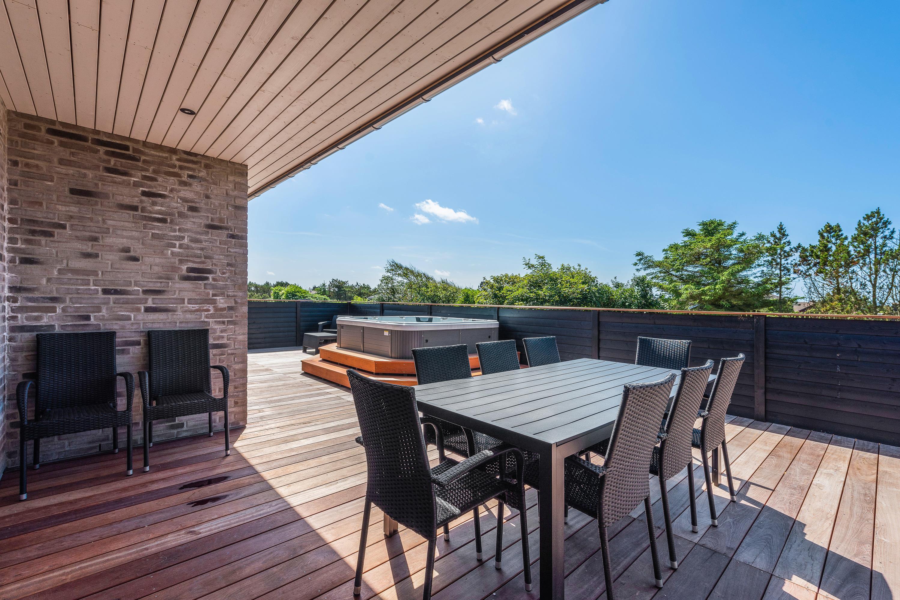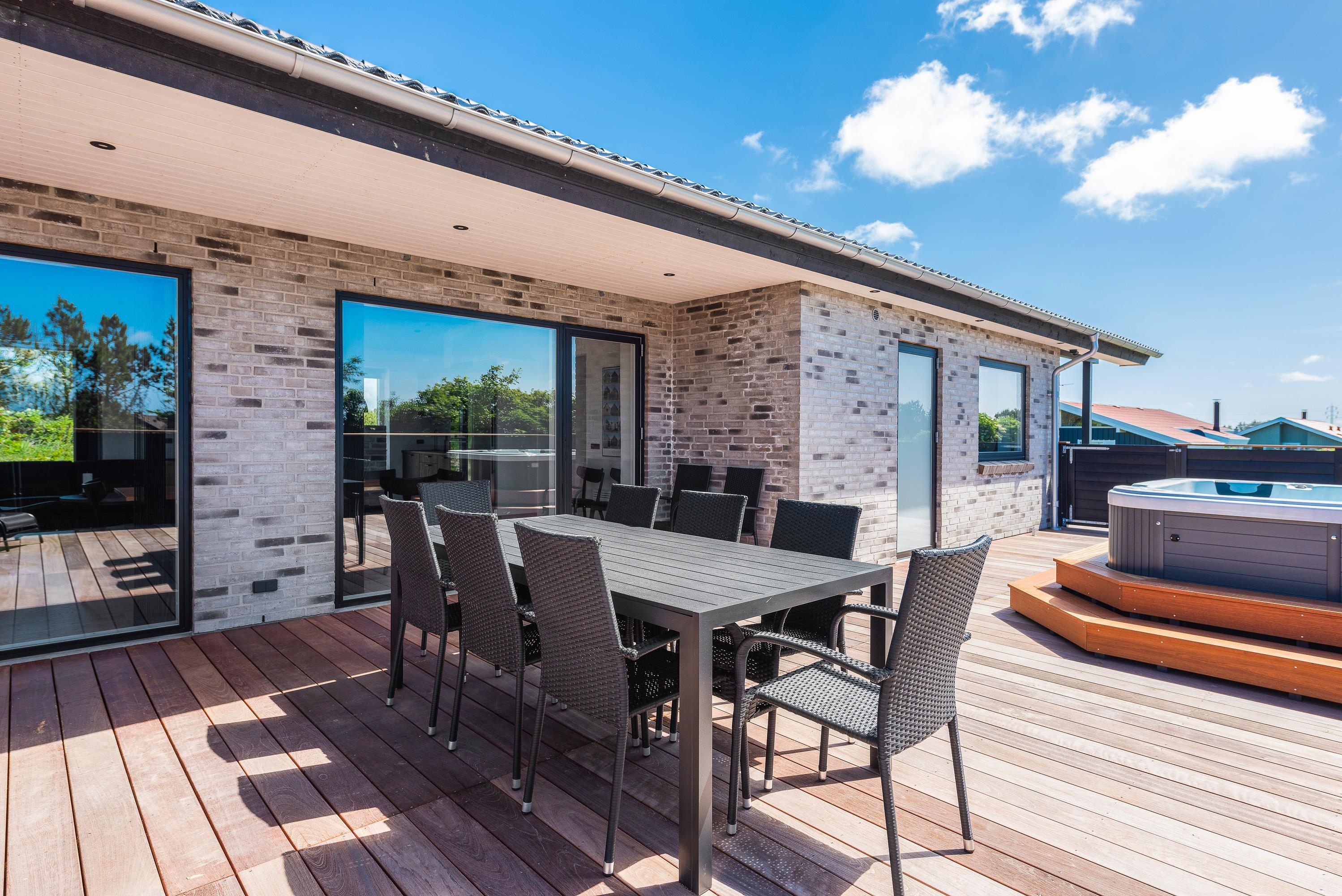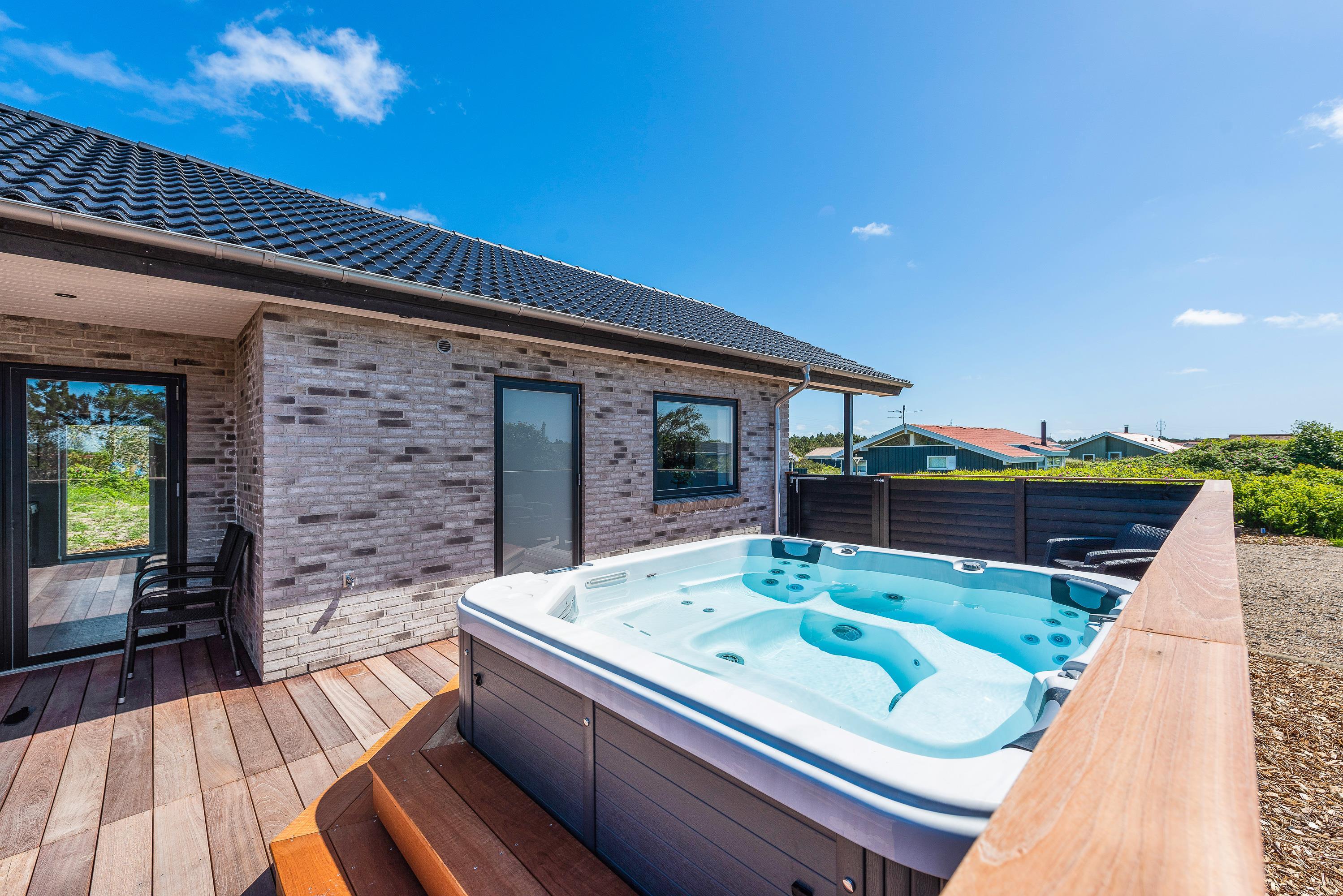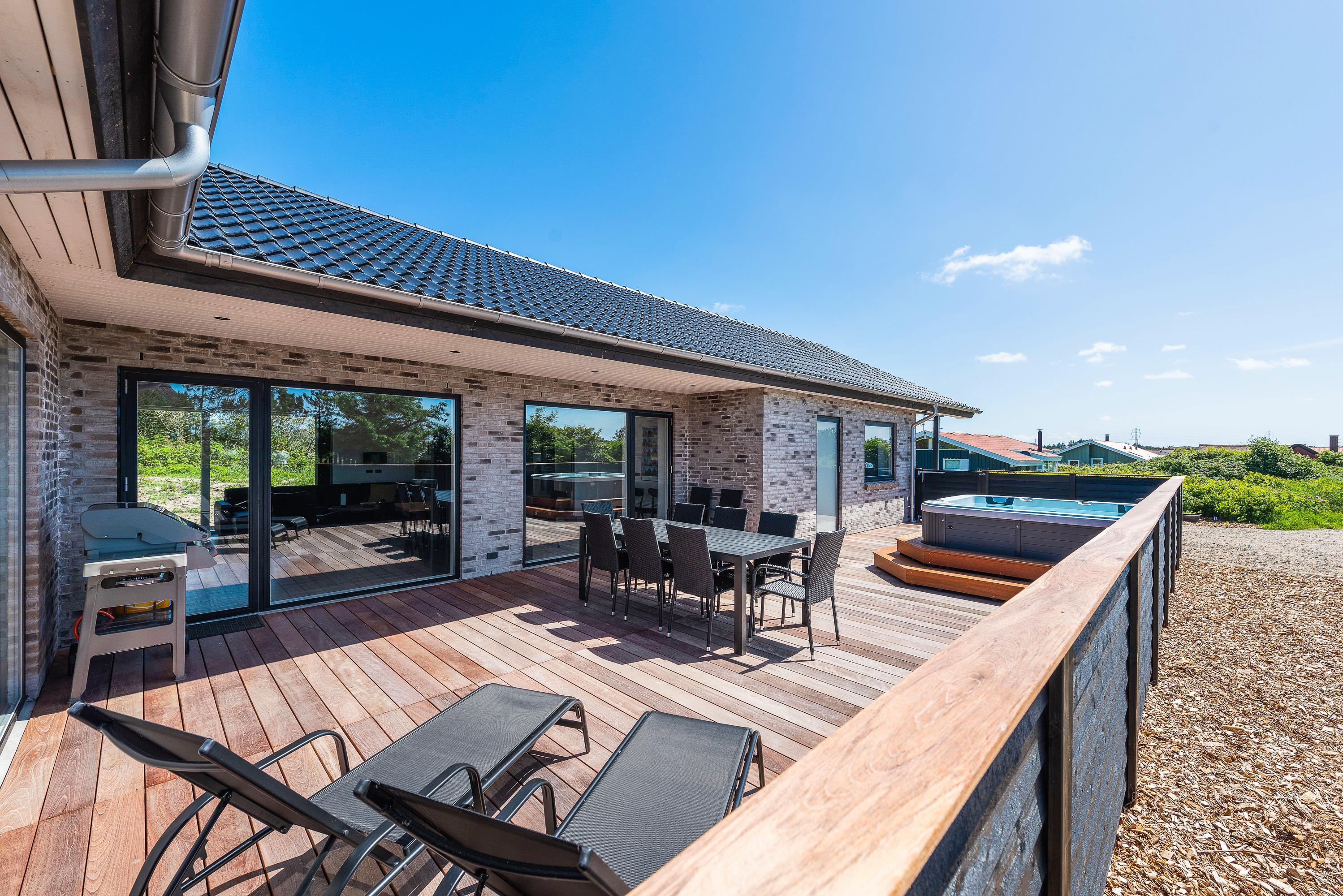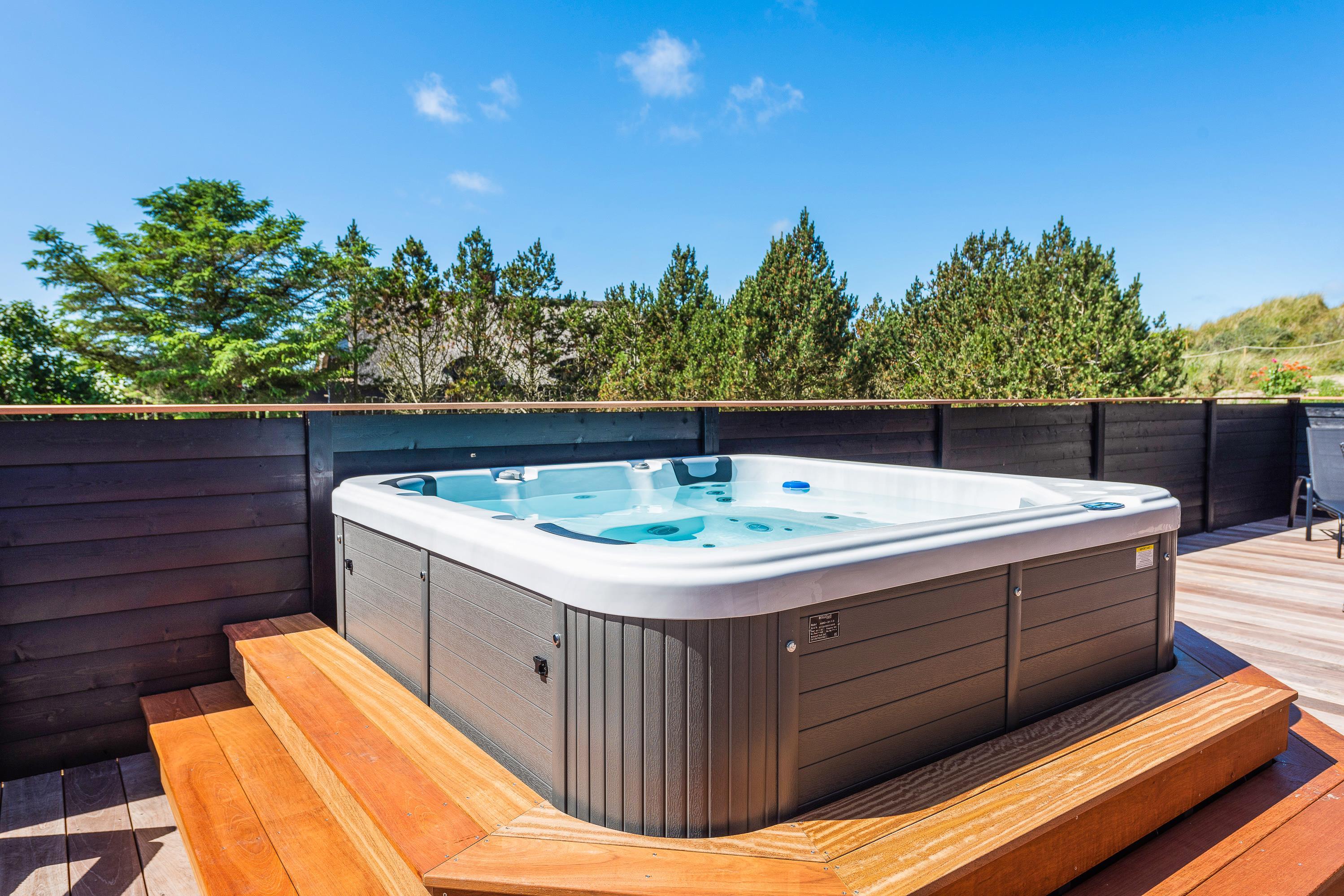 Lækker, lukket terrasse med overdækning, udendørs spabad og kort vej til Lyngvig Fyr