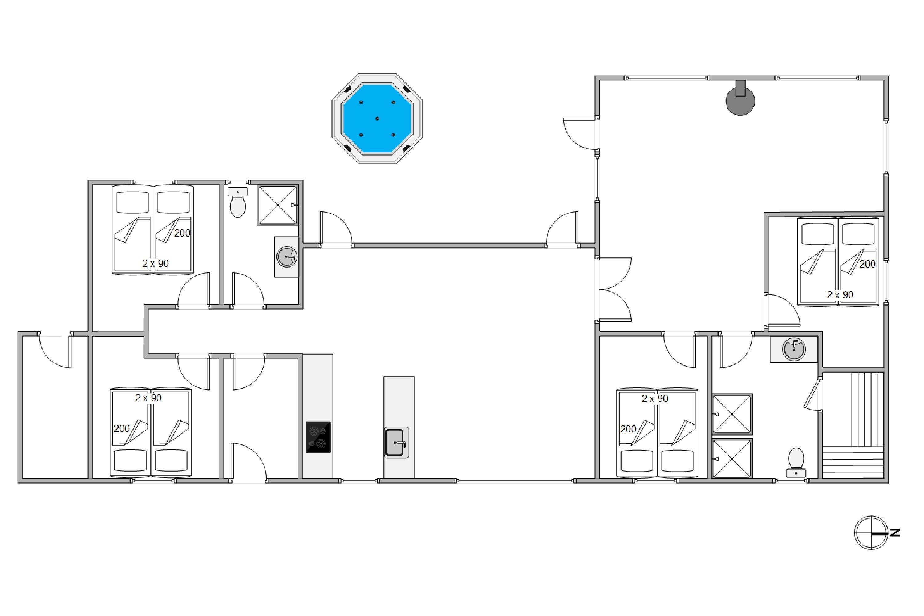 Der er godt med havemøbler, liggestole og en god grill, så I kan få det bedste ud af de solrige dage på terrassen. Dertil kommer et ekstra highlight, som med garanti vil gøre ferien endnu federe; et udendørs spabad med plads til 4 personer. Mon ikke der bliver tid til en tur eller to i det varme boblebad i løbet af ferien?