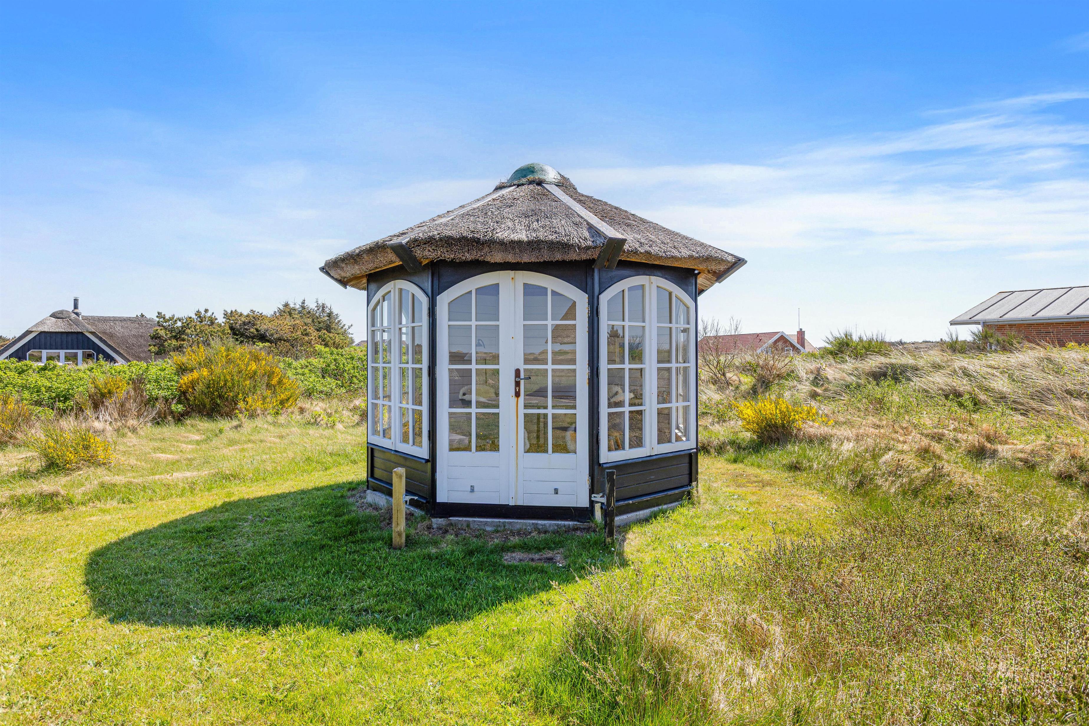 Mens I helt uforstyrret nyder en friskbrygget kop kaffe ude i solen, kan I altså spejde helt til det mægtige hvide fyrtårn, og om aftenen kan I lade dagen rinde ud på bedste vis, mens I i fred og ro betragter den smukke aftenhimmel, når solen dykker ned bag klitterne i det fjerne.