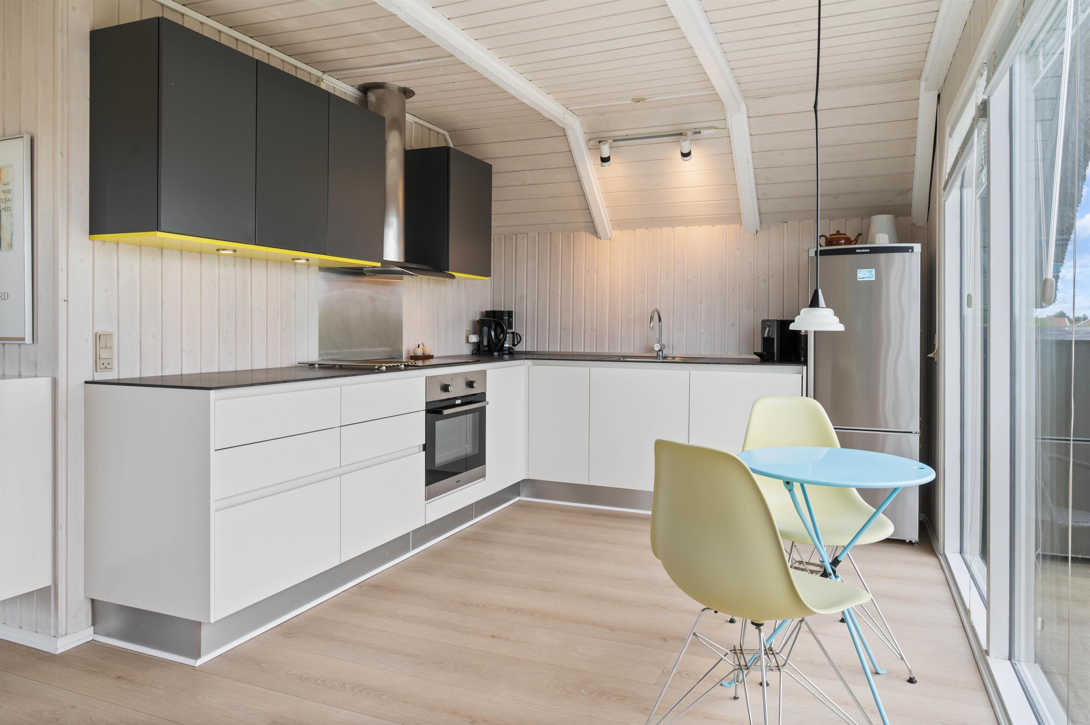 Det charmerende træsommerhus udstråler fra første øjeblik hyggelig og venlig atmosfære, og det gør sig gældende både indenfor og udenfor. De hvidklædte vægge og lofter kombineret med den moderne, men stadig personlige indretning gør omgivelserne behagelige og indbydende, og her kan I slappe af fra første ferieøjeblik.