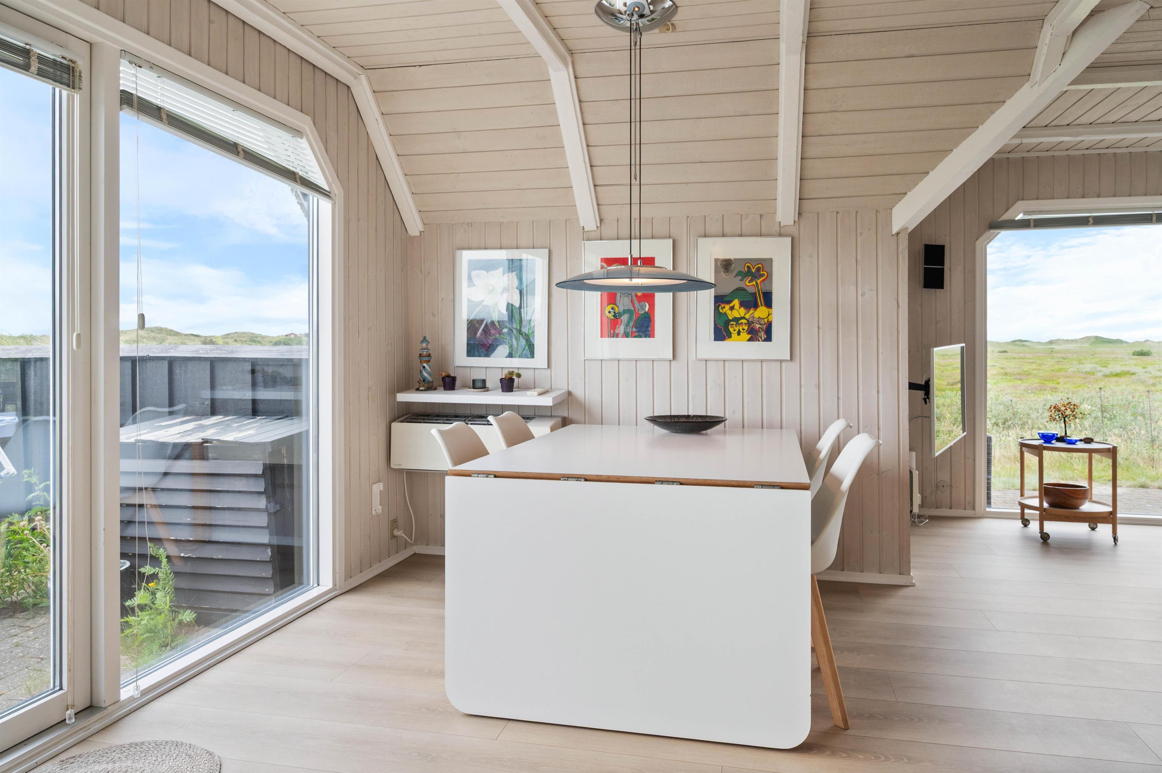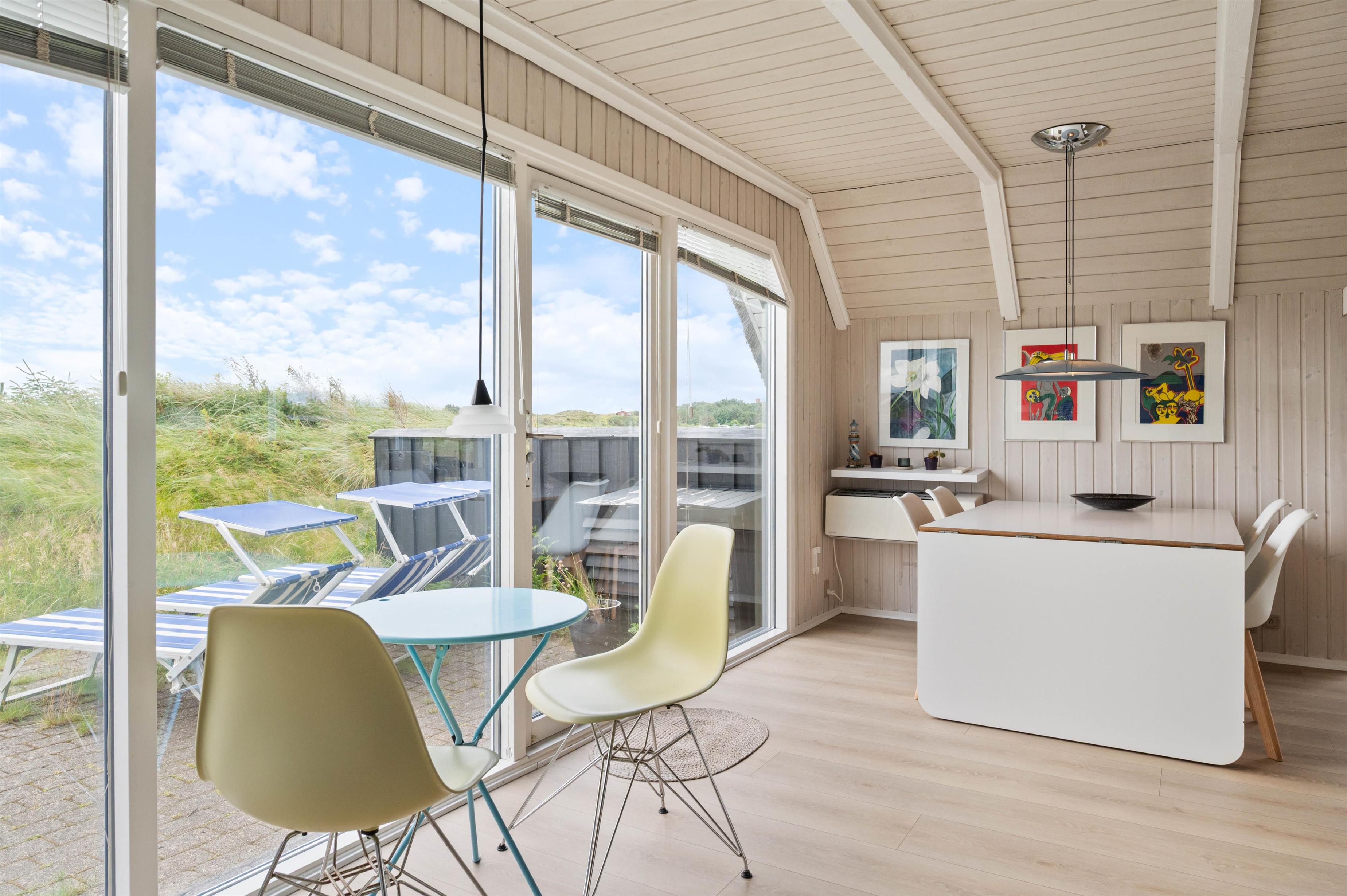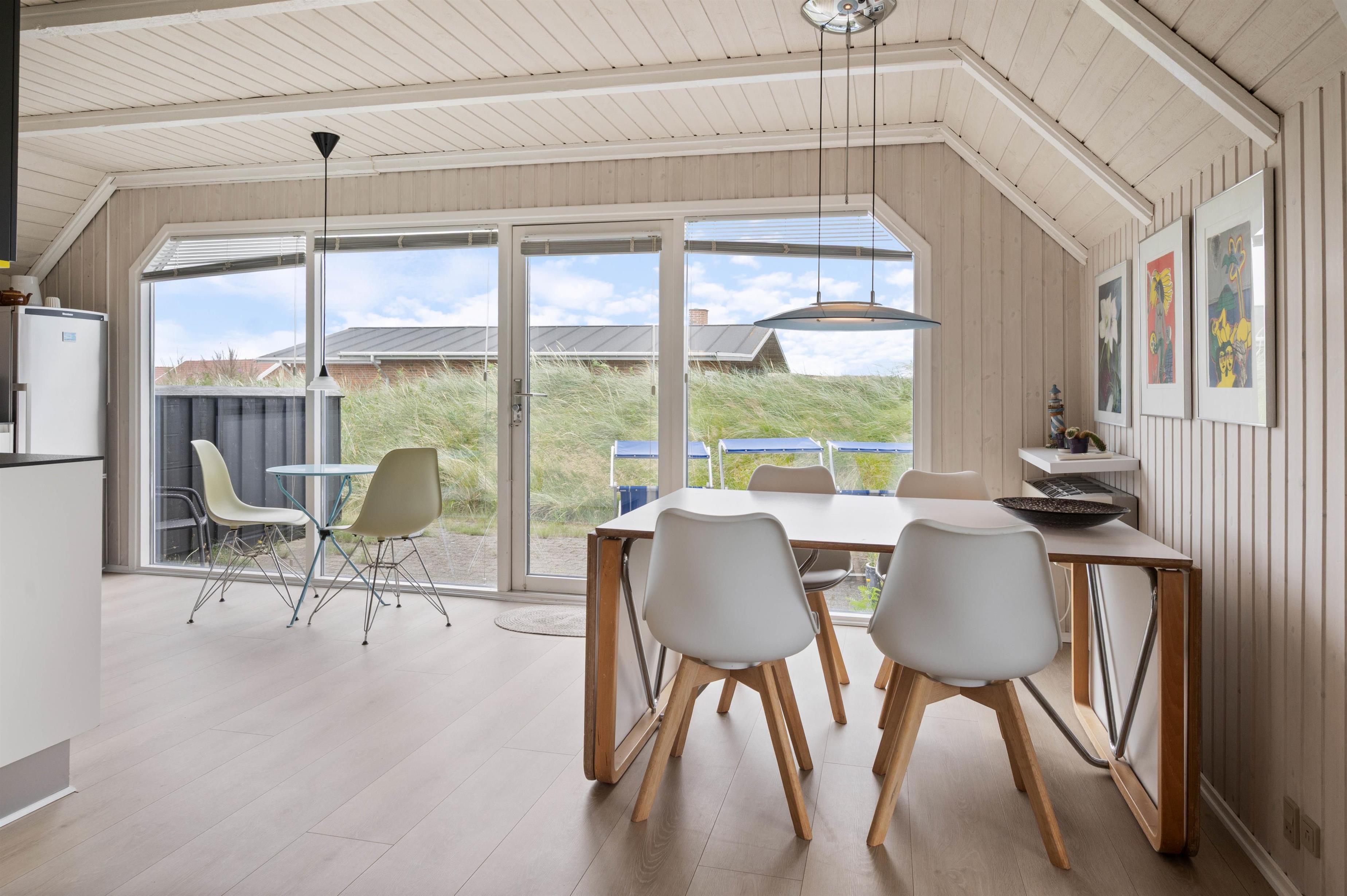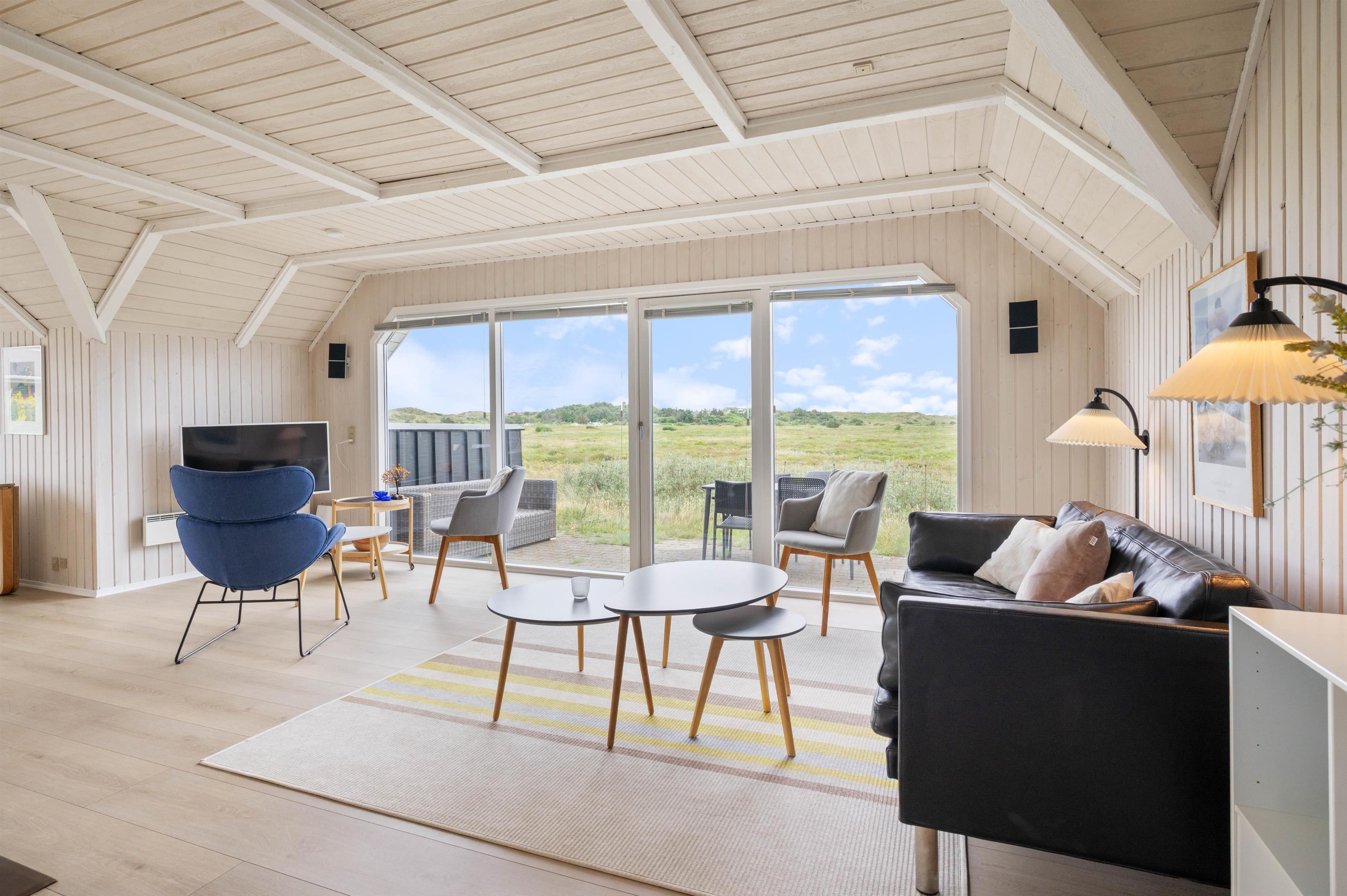 De mange store vinduer lader hver eneste solstråle slippe ind og sørger samtidig for, at I i al slags vejr kan nyde den smukke udsigt ud over heden og mod fyrtårnet fra sofaen, mens brændeovnen spreder god varme og stemning i stuen.