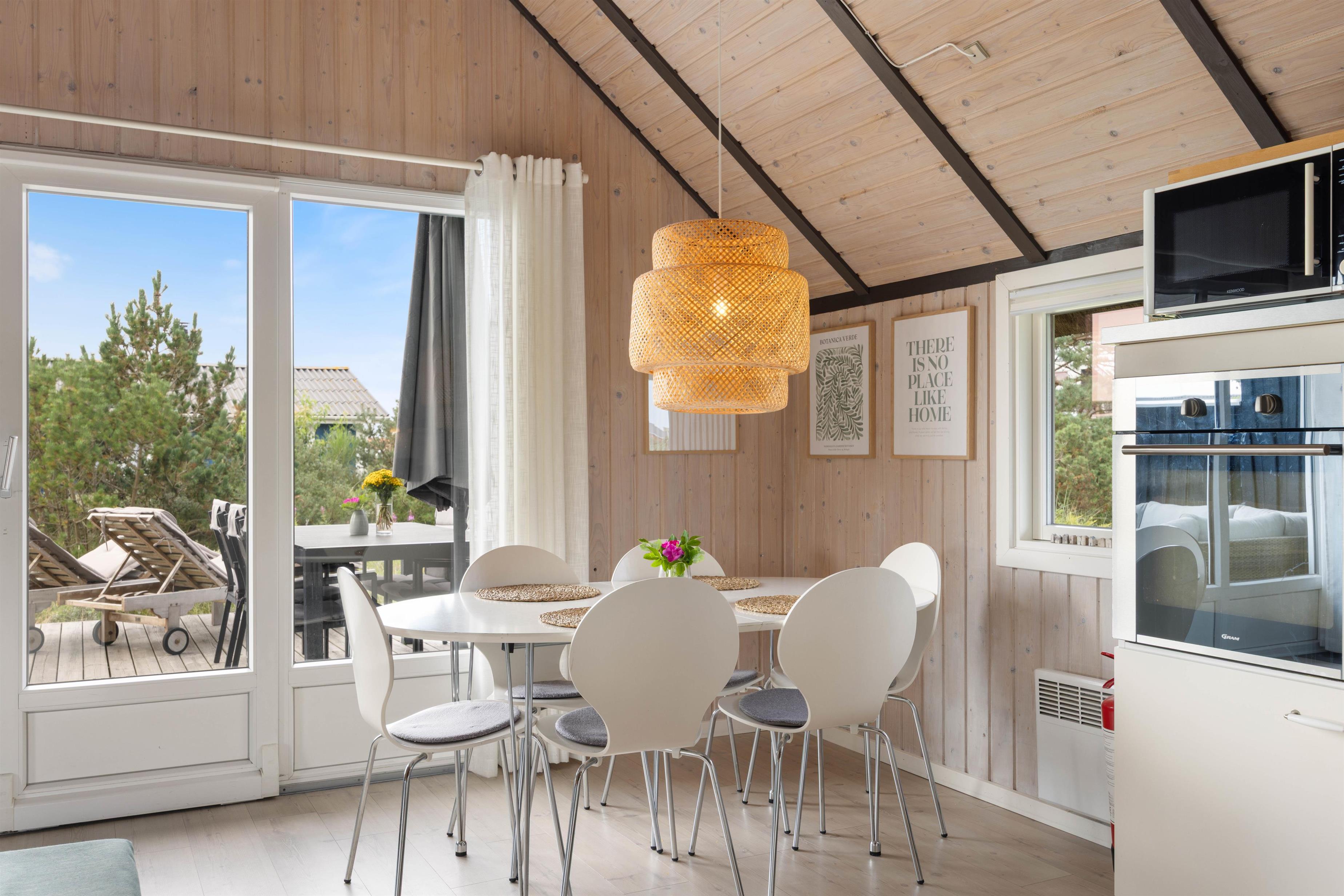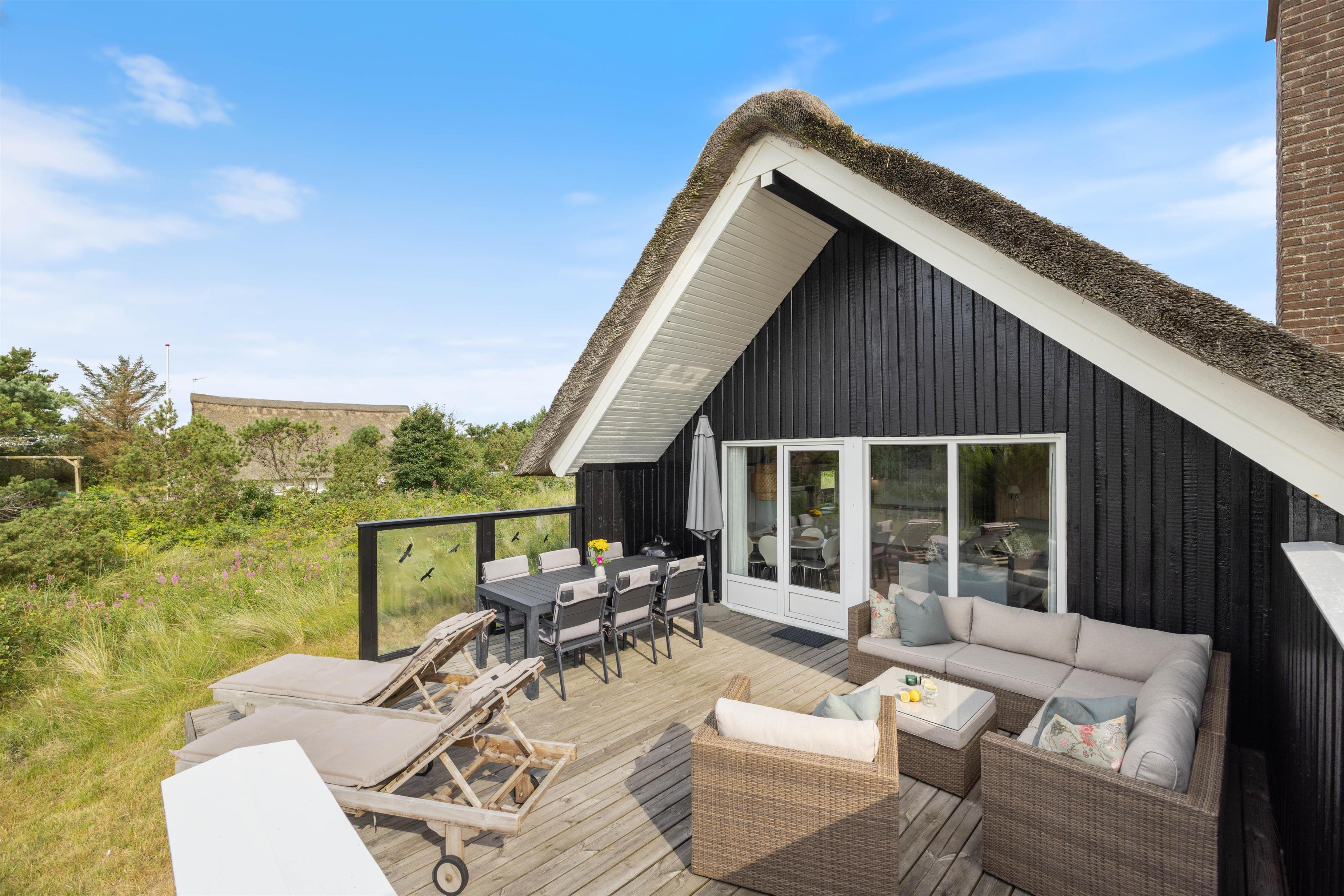Huset har rigtig gode terrasseområder, som indbyder til afslapning og hygge med familien. Terrassen ligger ugeneret, så I kan sidde i fred og ro og nyde ferien. Sommerhuset ligger desuden tæt ved Nr. Lyngvig Fyr, som rager smukt op i det flotte landskab. Fyret er bestemt et besøg værd. Fra toppen er der den mest fantastiske udsigt over det flotte landskab, som både har bølgende klitter, flade hedestykker og glimtende vand. Nr. Lyngvig ligger desuden midt mellem Hvide Sande og Søndervig, som begge er hyggelige feriebyer, der har meget at byde på. Fra spændende butikker og lækre spisesteder til sjove aktiviteter for hele familien.