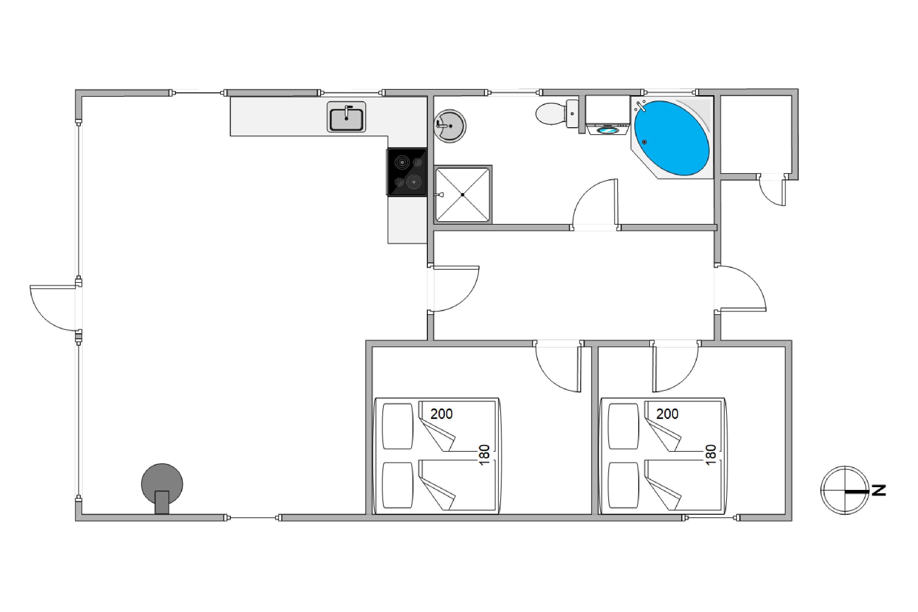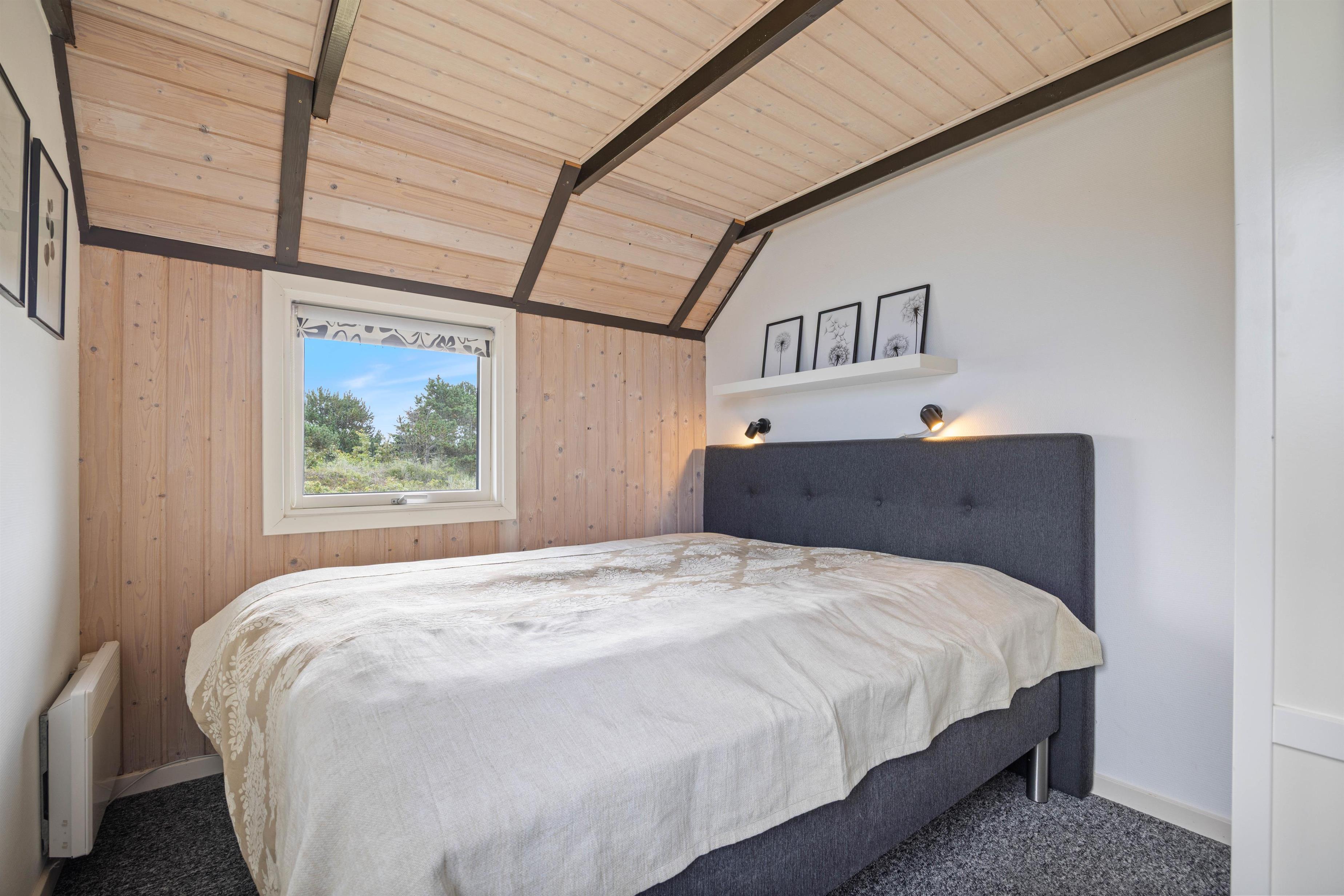 Det charmerende sommerhus i Nr. Lyngvig er smagfuldt og pænt indrettet. Alt i indretningen fremstår lyst og indbydende. Det store alrum har højt til loftet. Det skaber en følelse af rum og lys i indretningen. Samtidig inviterer de store vinduer både lyset og naturen indenfor. Huset er indrettet med to soverum + hems. I alt er der plads til 4 gæster i huset.