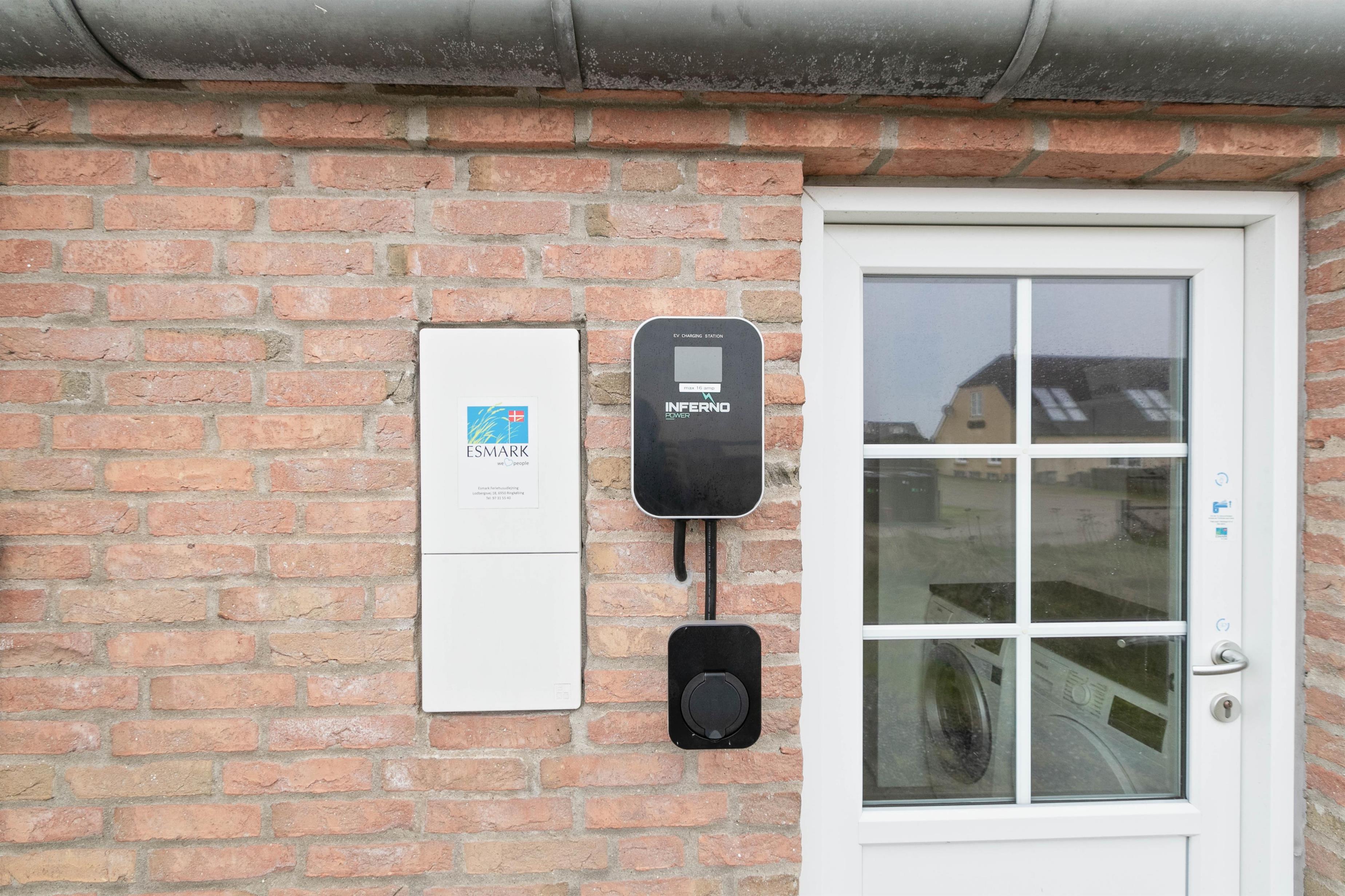 Desuden er der både sandkasse og gyngestativ til børnene og en el-ladestander til jeres bil, som blot kræver et kabel type 2, som I selv skal medbringe.