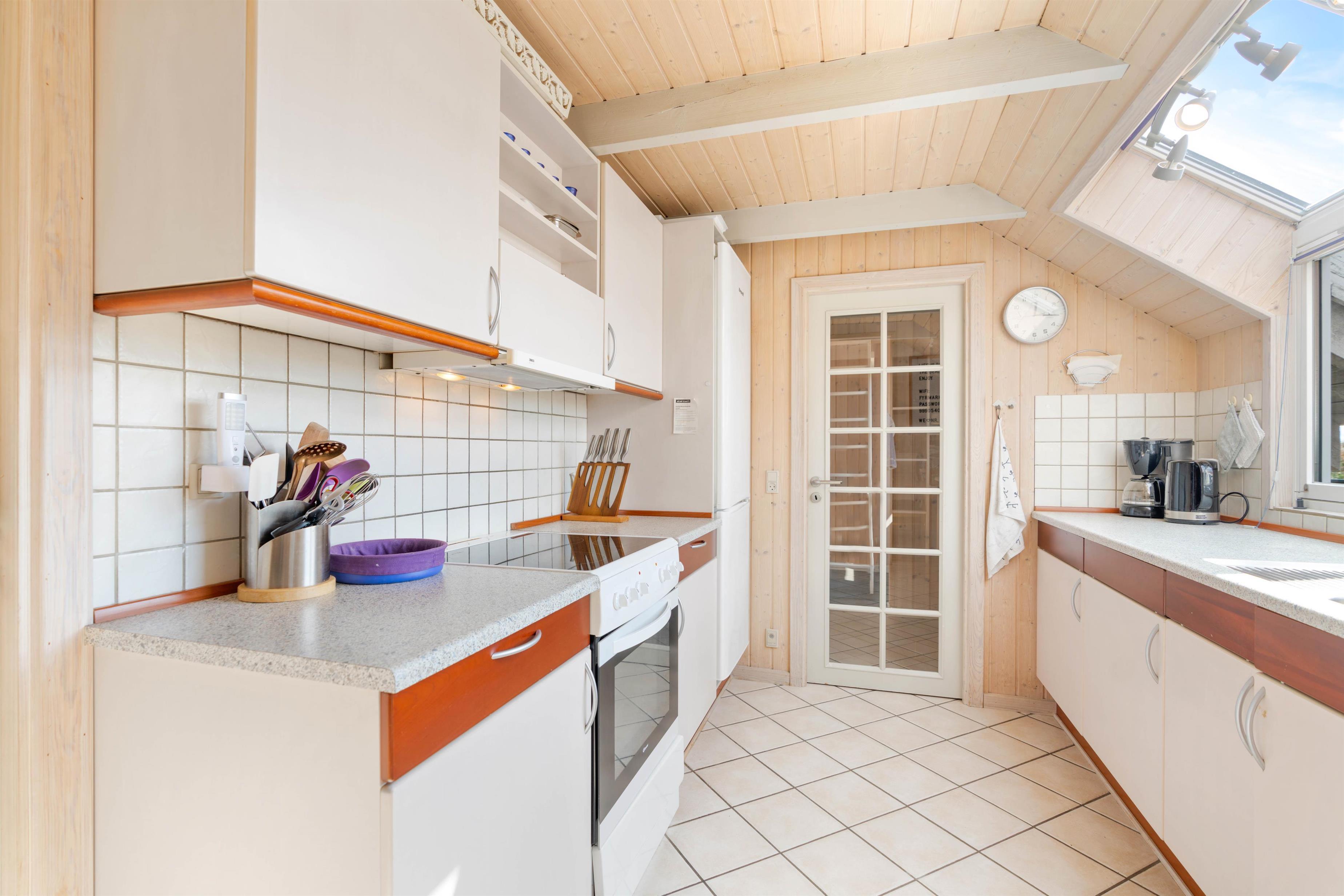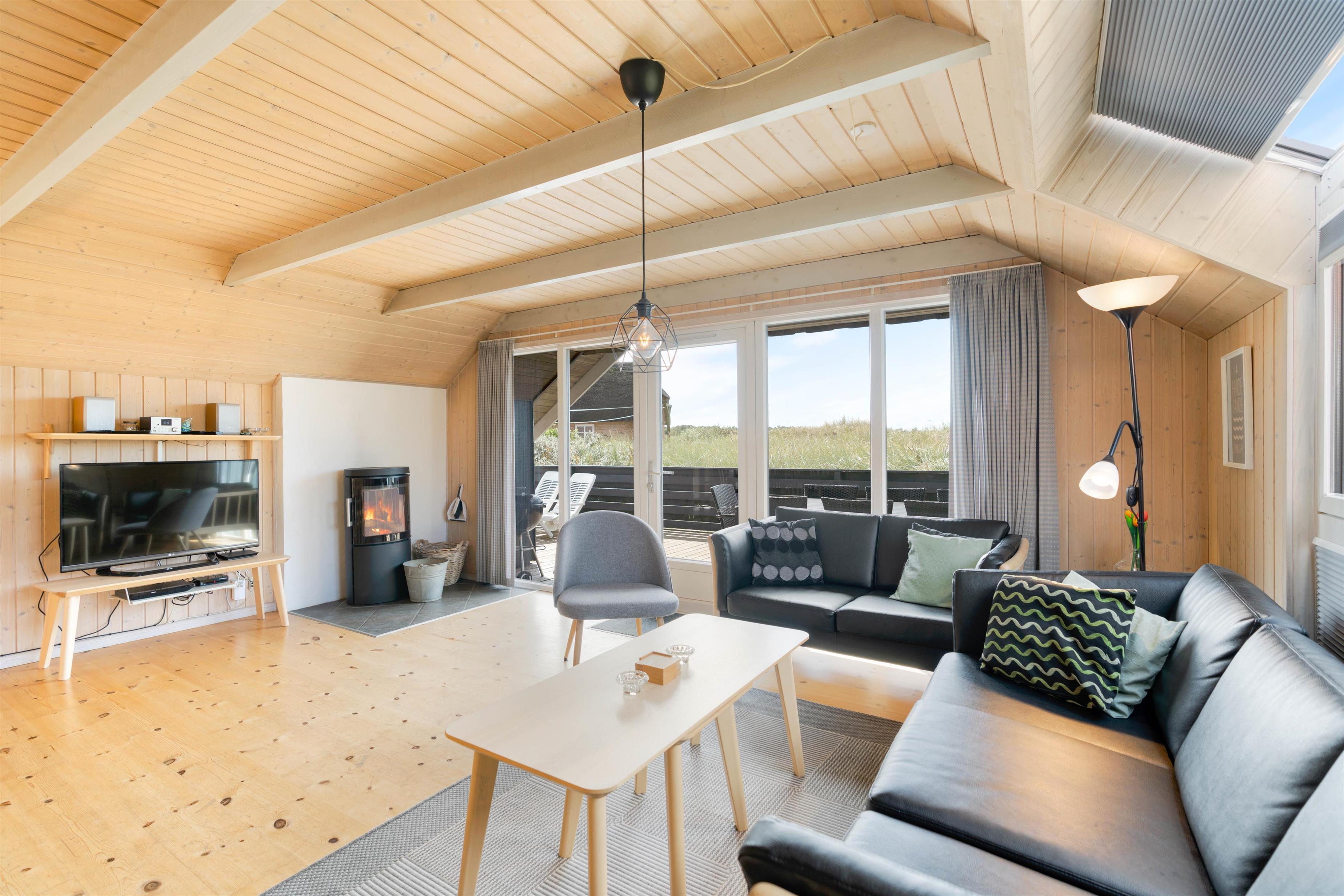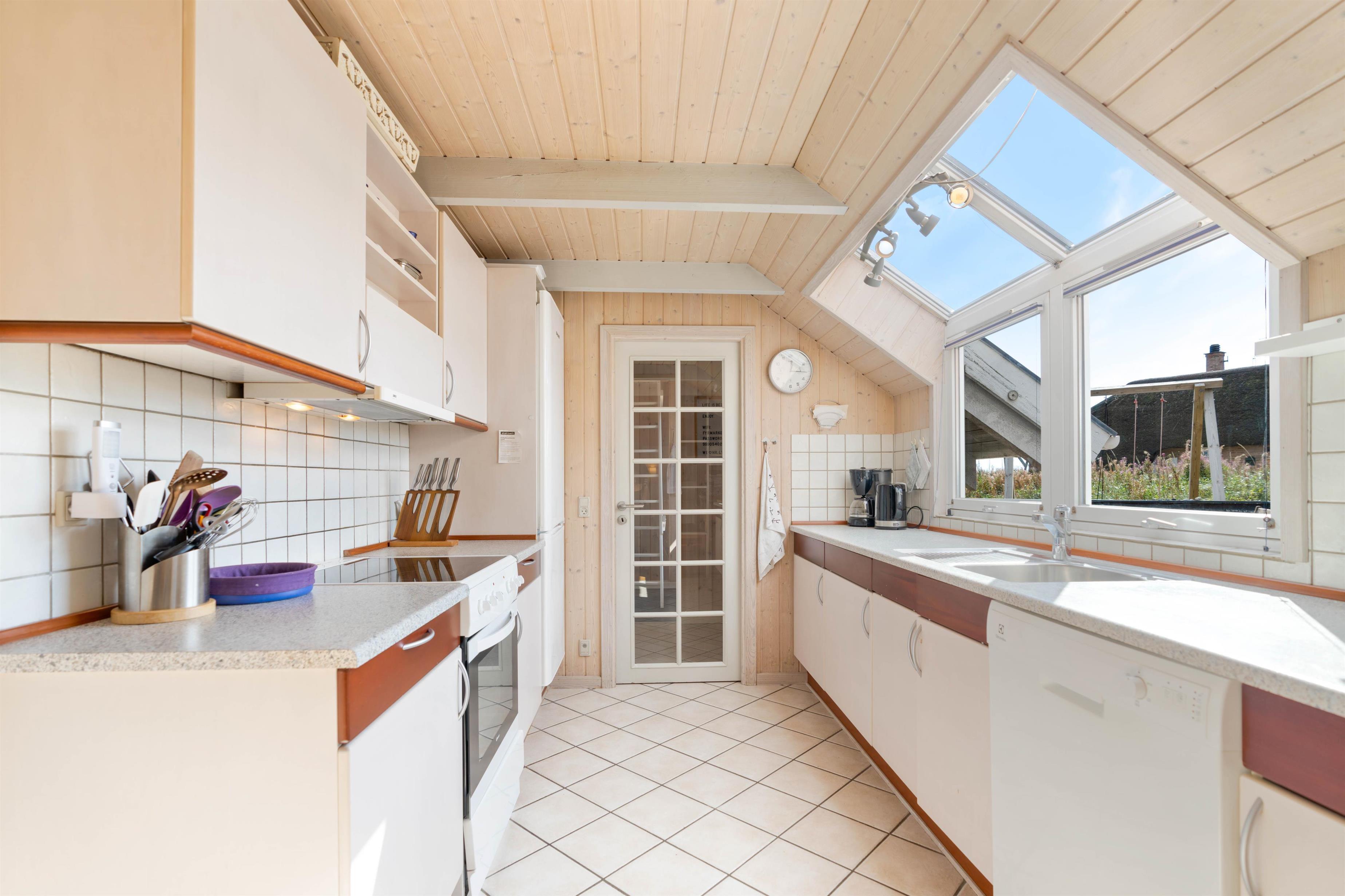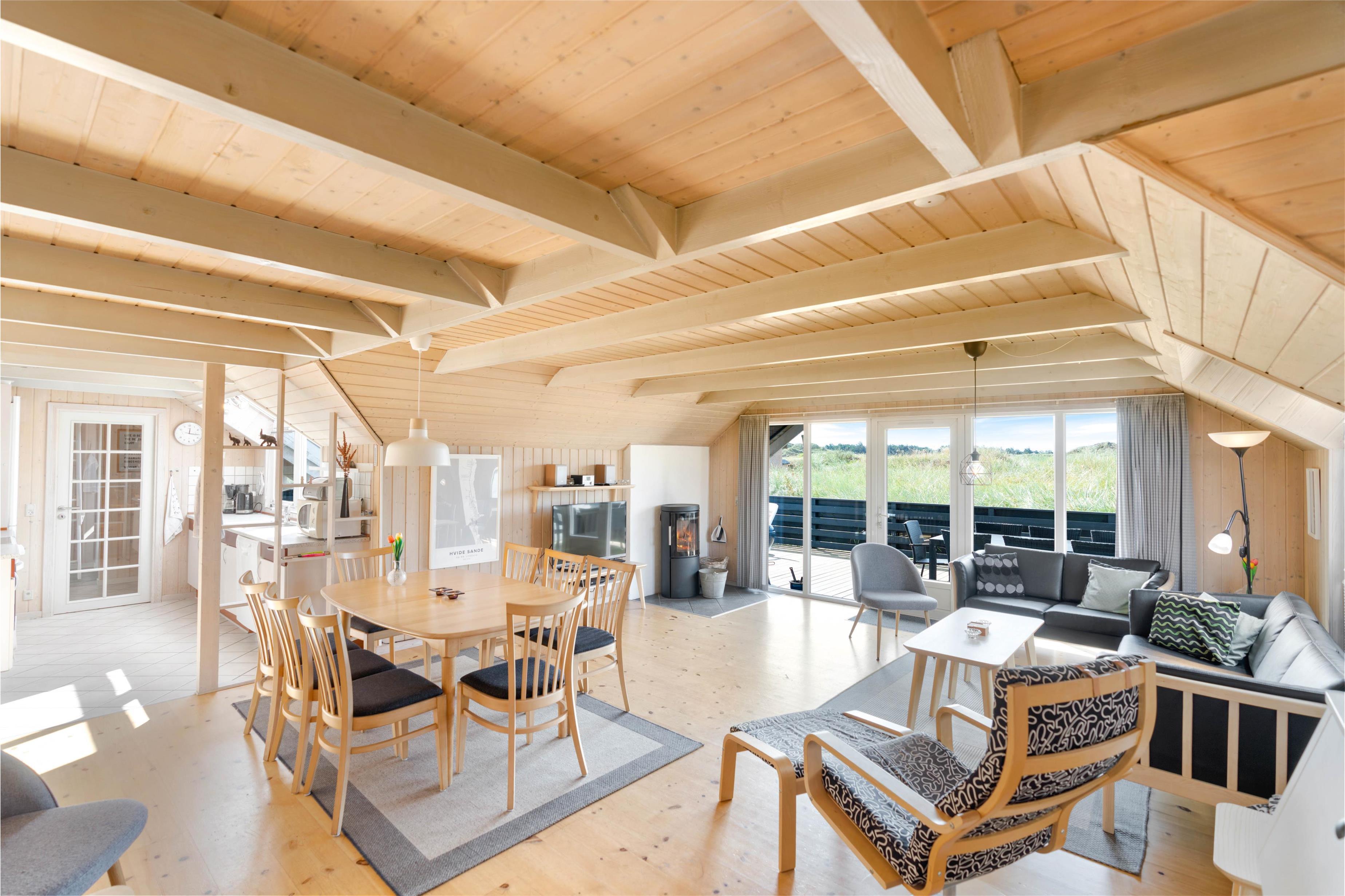 Huset har mange af de moderne faciliteter der bliver efterspurgt, kombineret med en fred og ro der tilbydes i dette område, som kan være medvirkende til en skøn ferie ved Vestkysten. I sommerhuset er køkkenalrummet husets hjerte, her vil størstedelen af jeres hygge stunder formegentlig foregå. Her kan I nyder varmen fra brændeovnen. I det funktionelle køkken er der alle de nødvendige redskaber for at lave en lækkert måltid, mens man nyder den skønne udsigt.