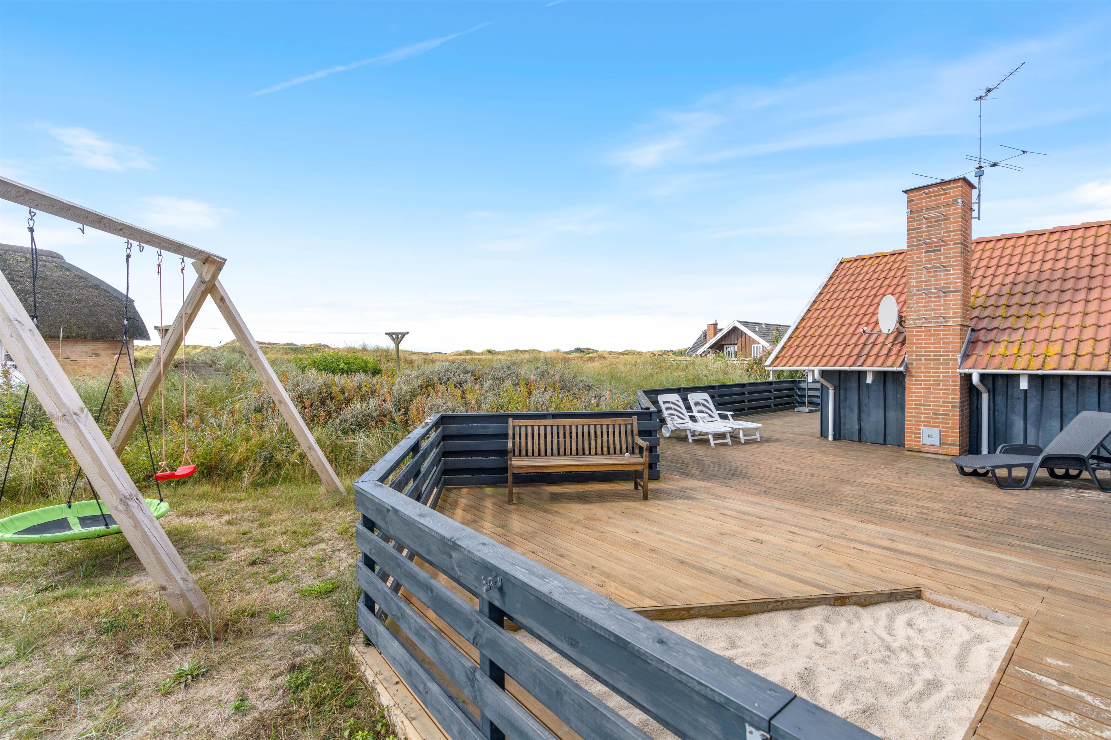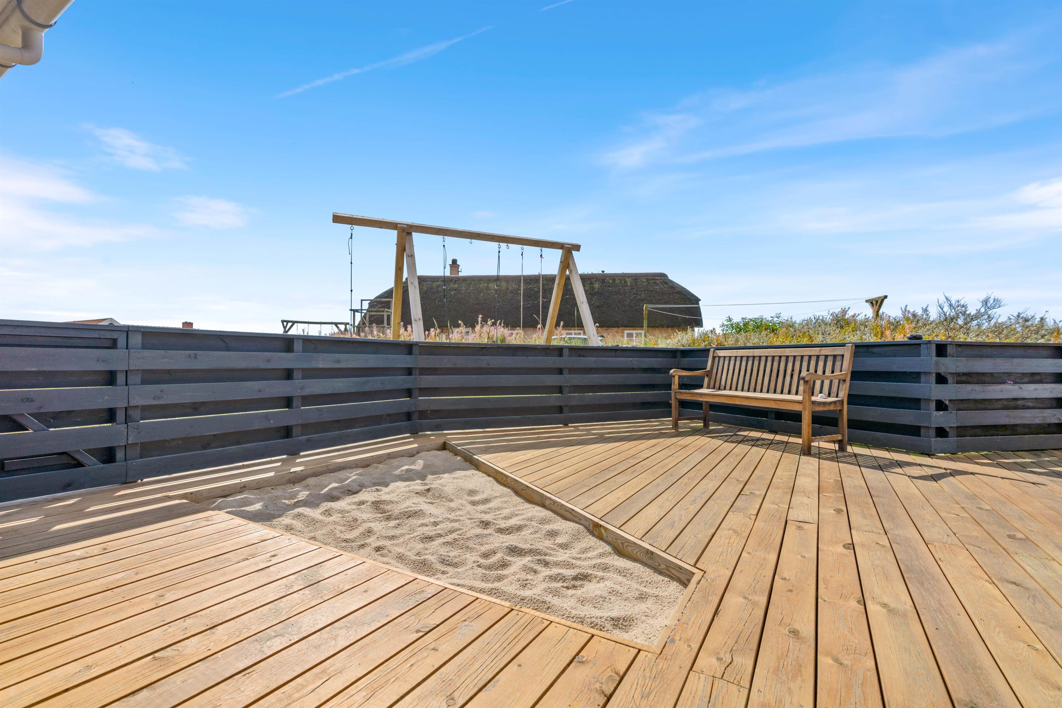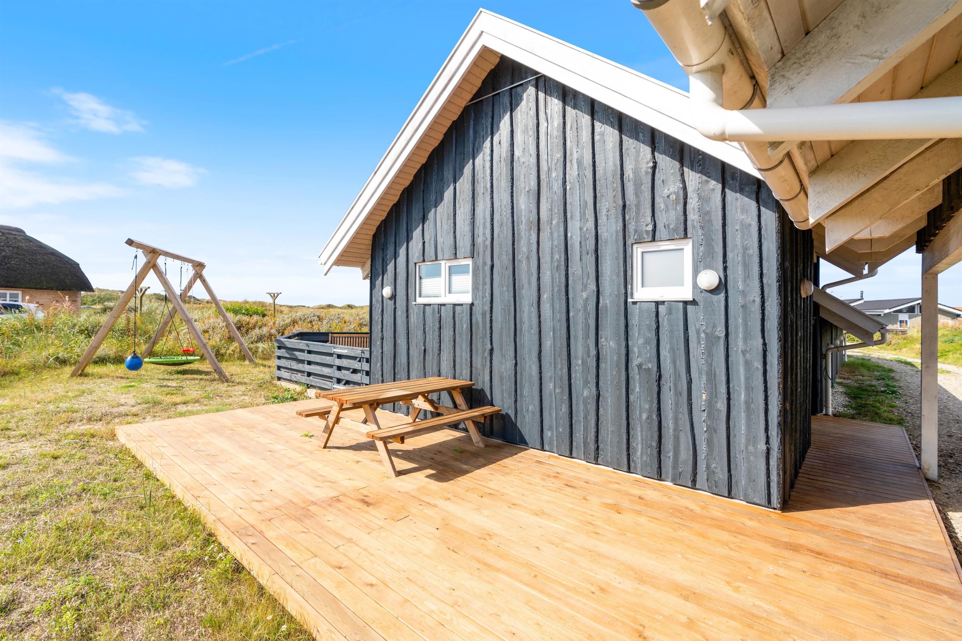 Dette sommerhus er både børnevenligt, hundevenligt og bilvenligt. Sommerhuset har nemlig en stor og lukket terrasse, som giver både børn og kæledyr mulighed for at rende frit rundt uden noget særligt opsyn. Her er der også sandkasse og gyngestativ til at holde børnene beskæftiget.