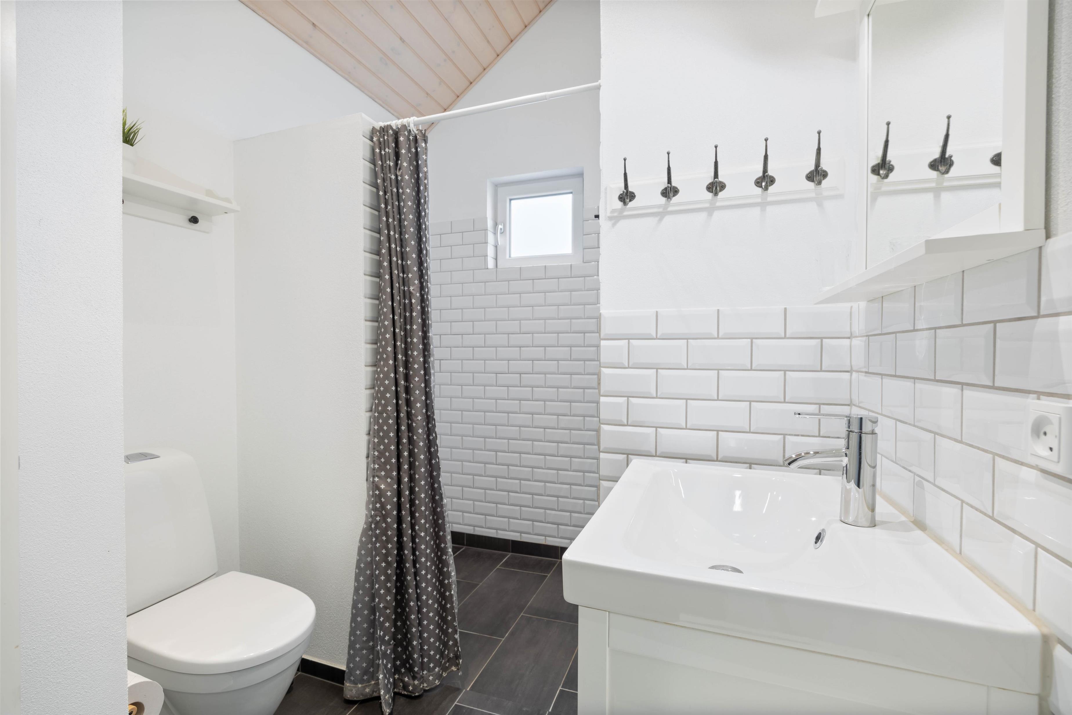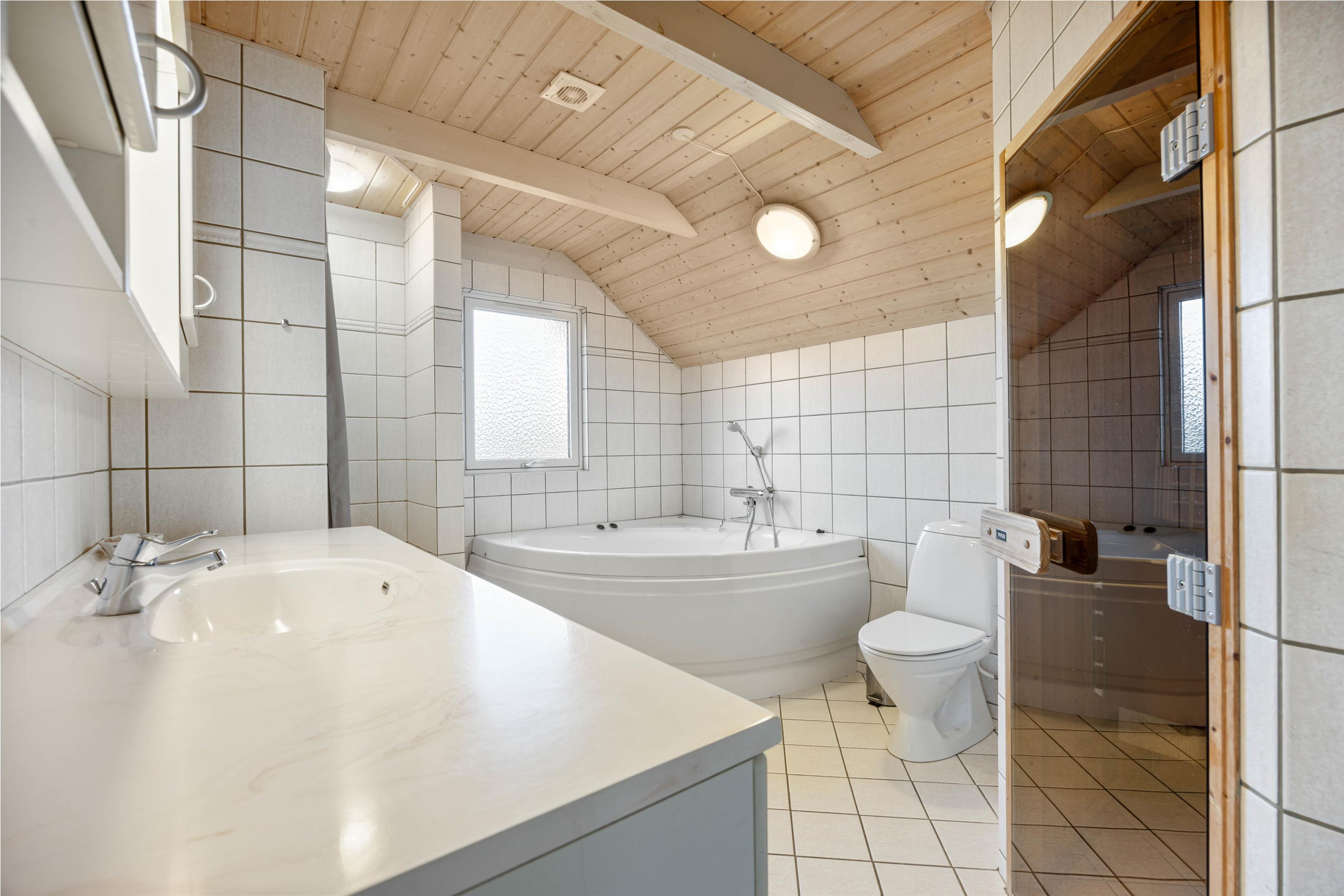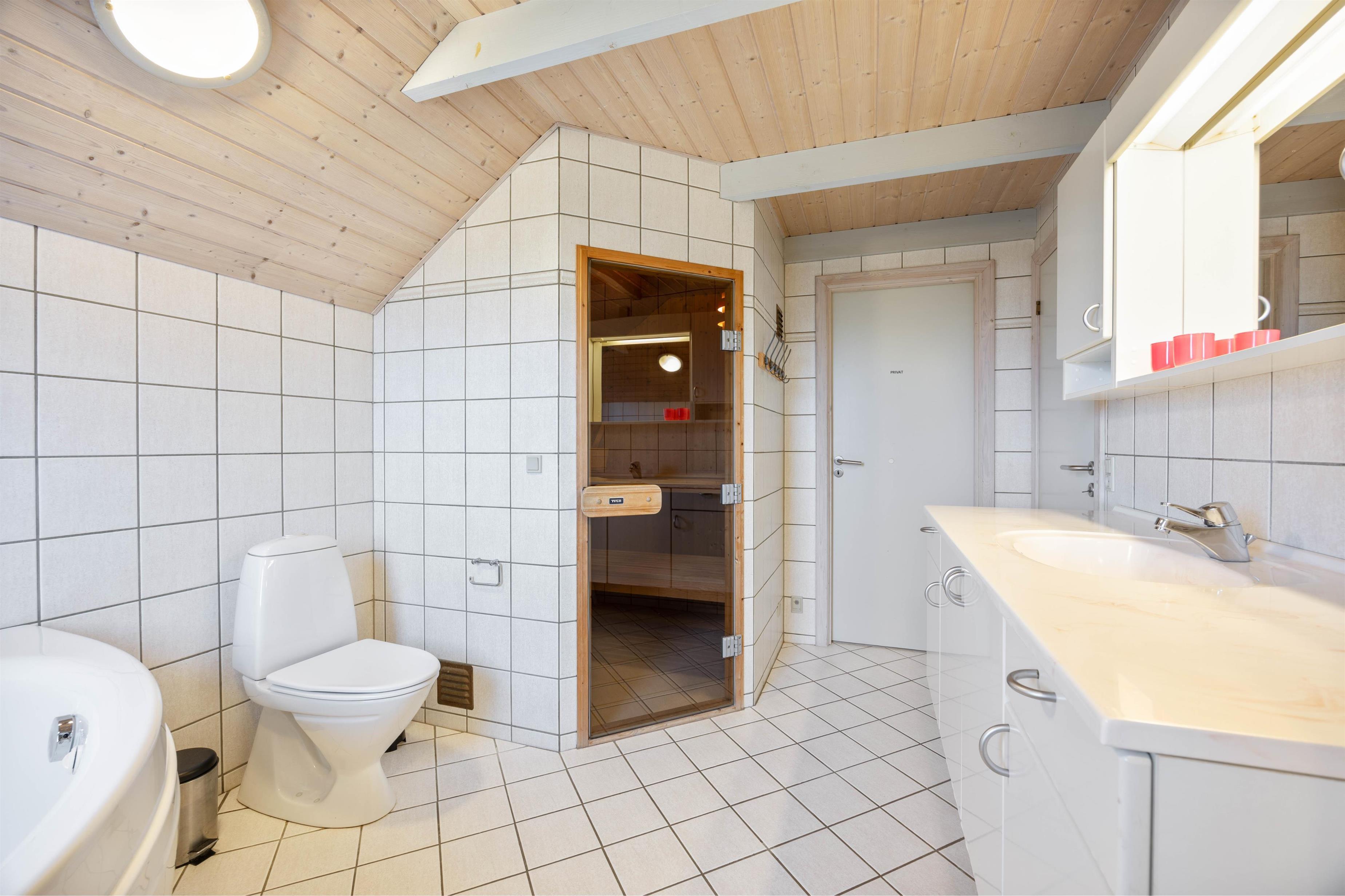 Højdepunktet i dette hus er med garanti det ene badeværelse. Her finder i både en rummelig sauna og et lækkert spabad, som kan nydes efter en kølig gåtur ved stranden. Der er 2 badeværelser i huset og et gæstetoilet, så derfor undgår i køen til brusebadet om morgenen. Alle badeværelserne er også udstyret med gulvvarme.