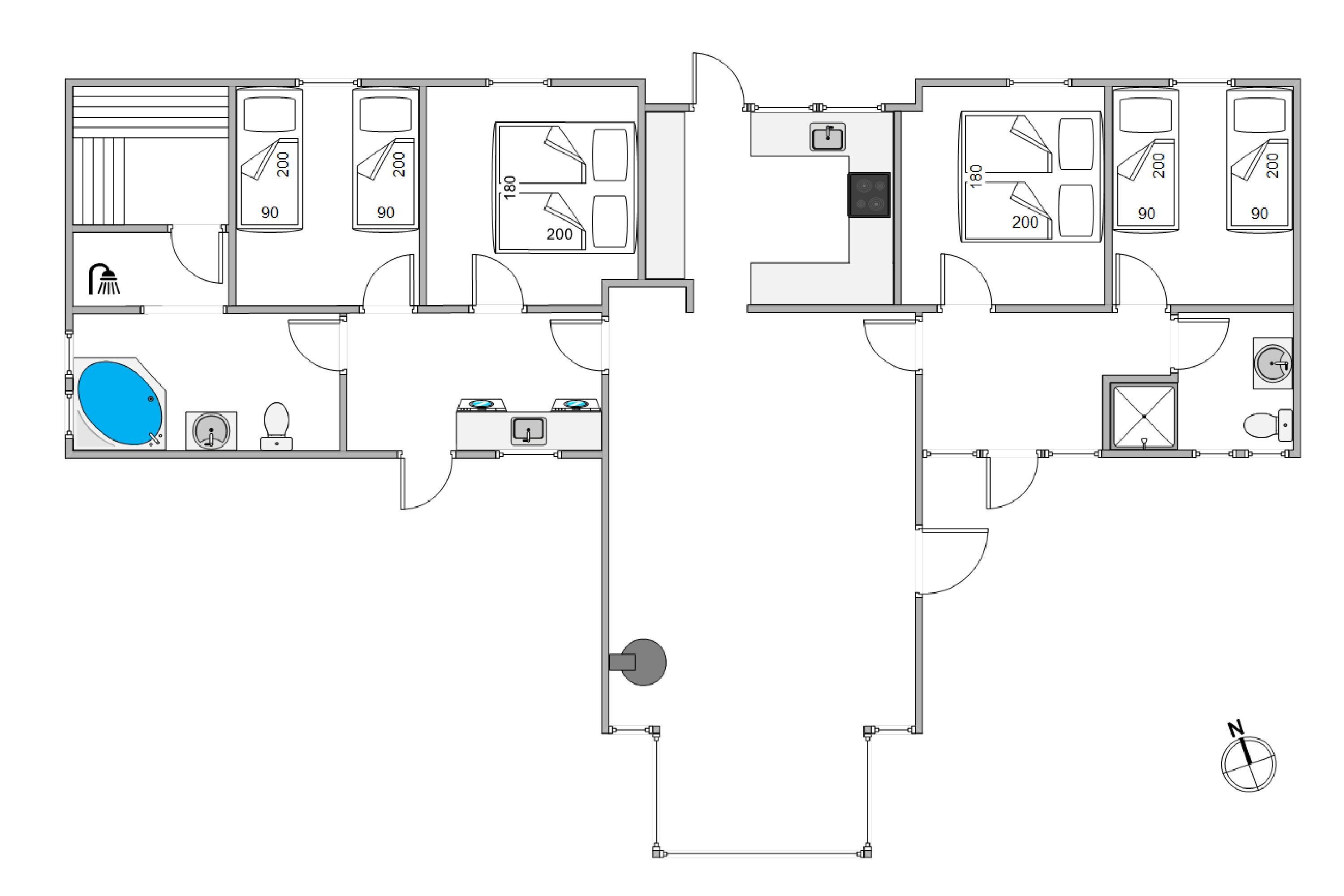 Samlingspunktet i sommerhuset er det skønne køkken-alrum, hvor I kan tænde op i brændeovnen, finde popcornene frem og sætte en god film på tv’et. Udover køkken-alrummet finder I 8 sovepladser i sommerhuset, som fordeler sig på 4 soverum med 2 dobbeltsenge og 4 enkeltsenge.