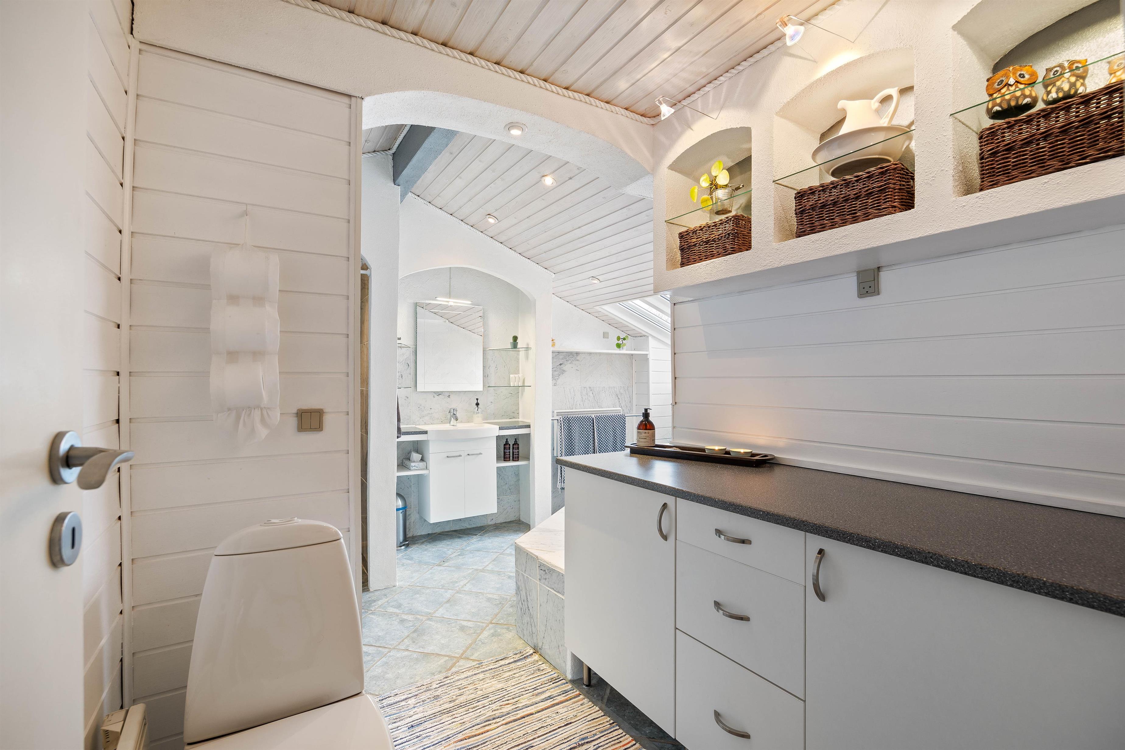 I dette sommerhus er der lagt op til en dejlig ferie med afslapning. I stuen kan I sidde og nyde de knitrende lyde fra brændeovnen, imens I læser en god bog. I sommerhuset finder I også en varmepumpe, som er med til at give sommerhuset en dejlig varme. Når I trænger til at komme helt ned i gear, kan I sætte jer ind i spaen, som I finder på det ene badeværelse. Udover spaen er der også en sauna på badeværelset, hvor I kan få varmen igen efter en lang gå tur. Der er i alt 2 badeværelse med gulvvarme i sommerhuset.