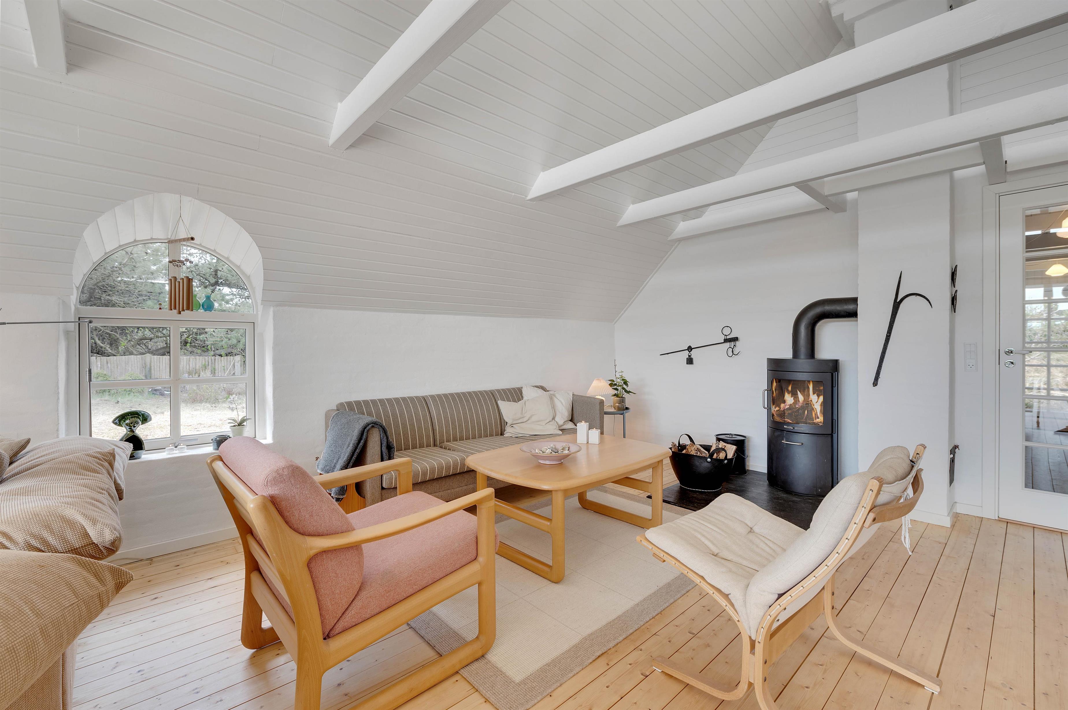 Indbydende, renoveret sommerhus med brændeovn