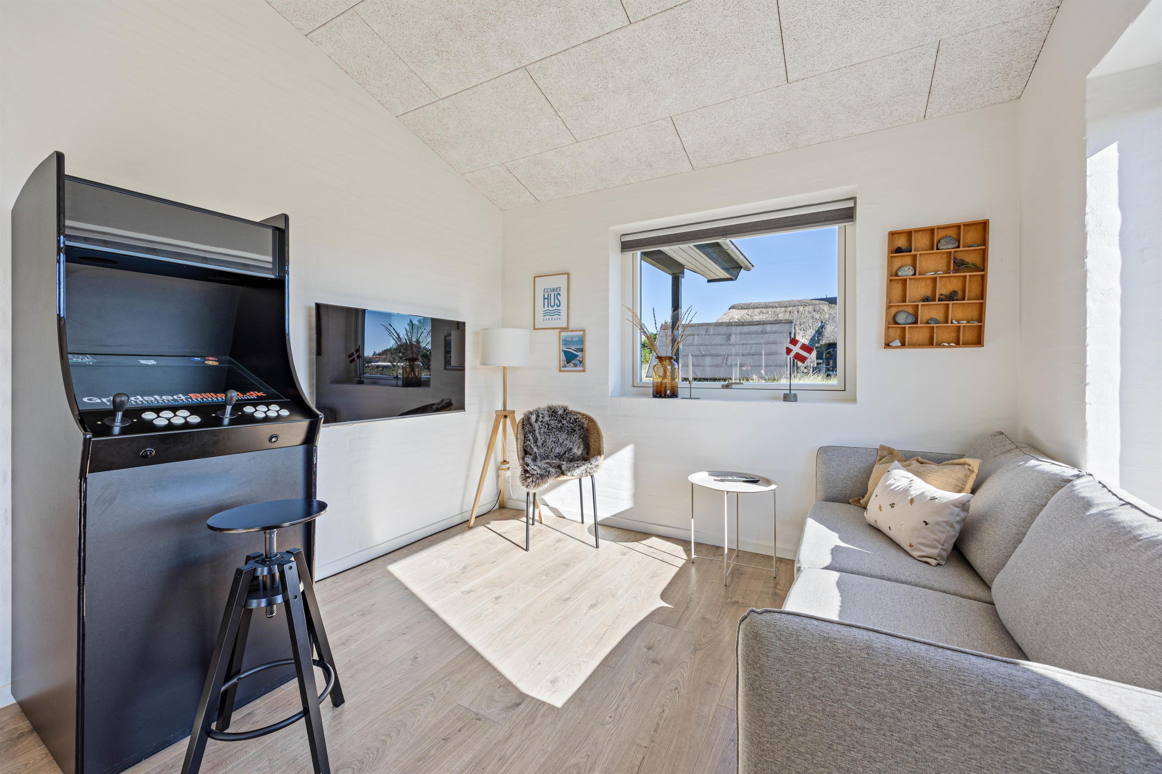 Det 170 kvadratmeter store aktivitetshus er opført i 2020 i moderne kvalitetsmaterialer fra top til tå. Med plads til 8 personer er feriehuset både ideelt til flere familier og vennegrupper, og i indretningen er der i den grad sørget for, at der er noget for enhver smag.