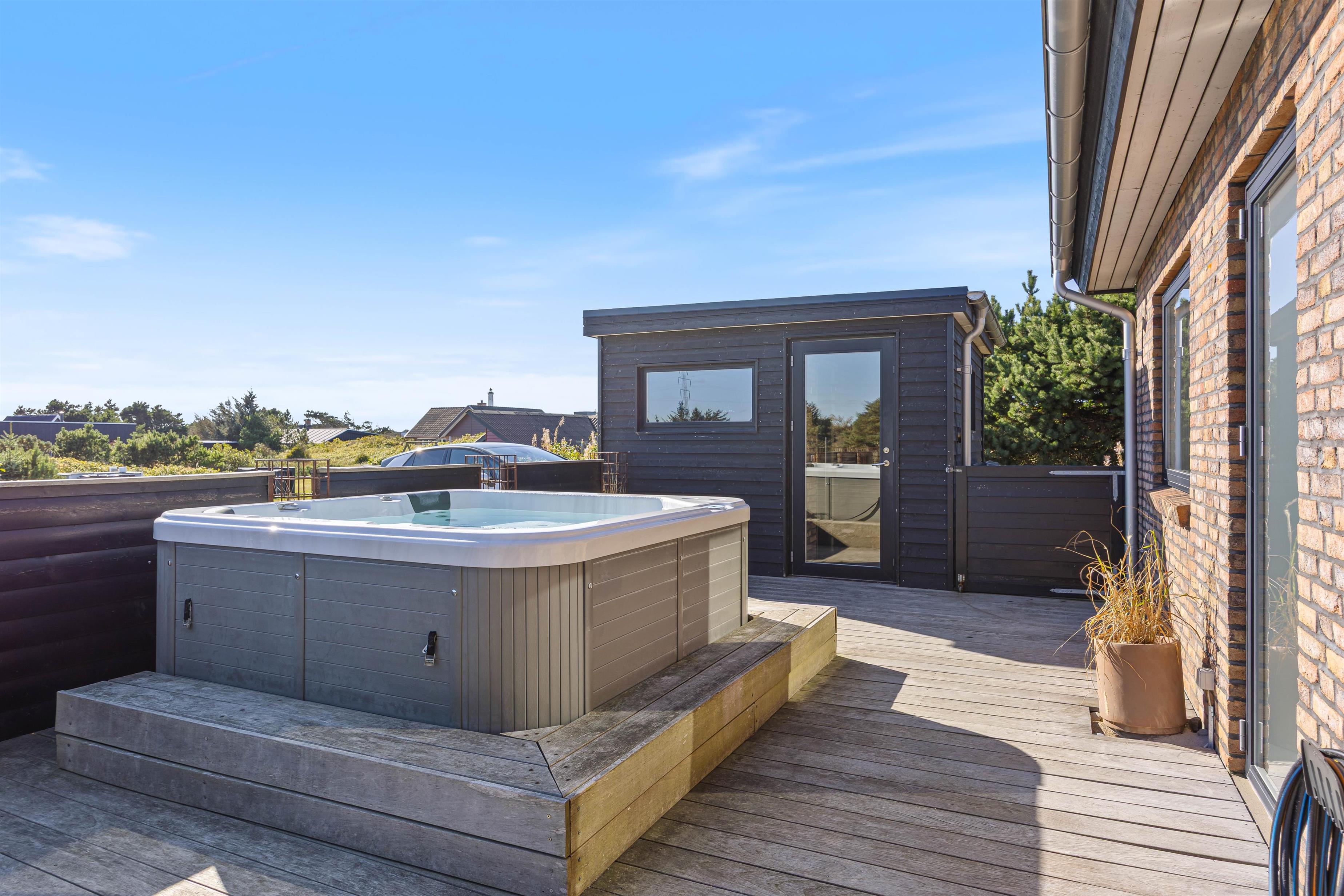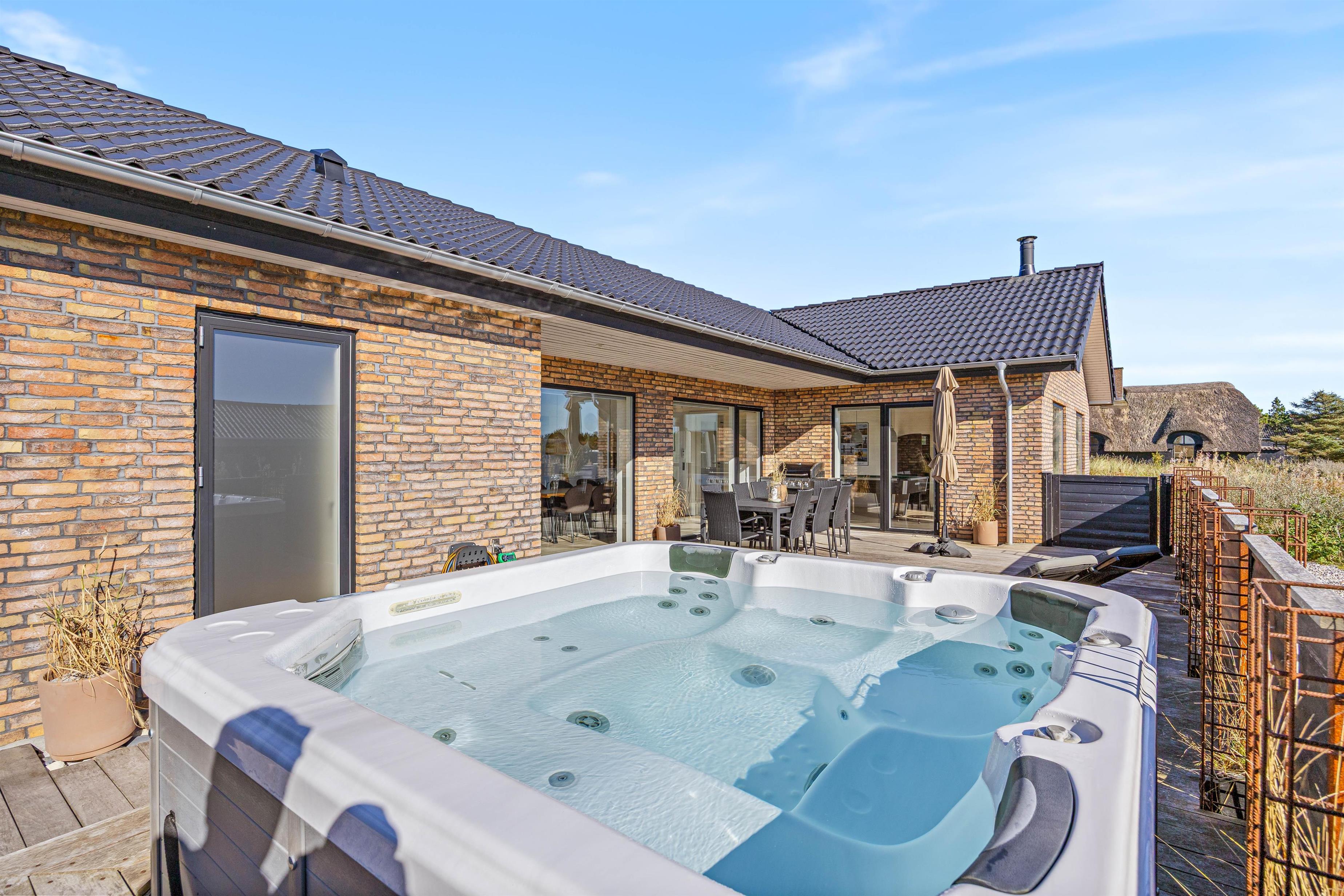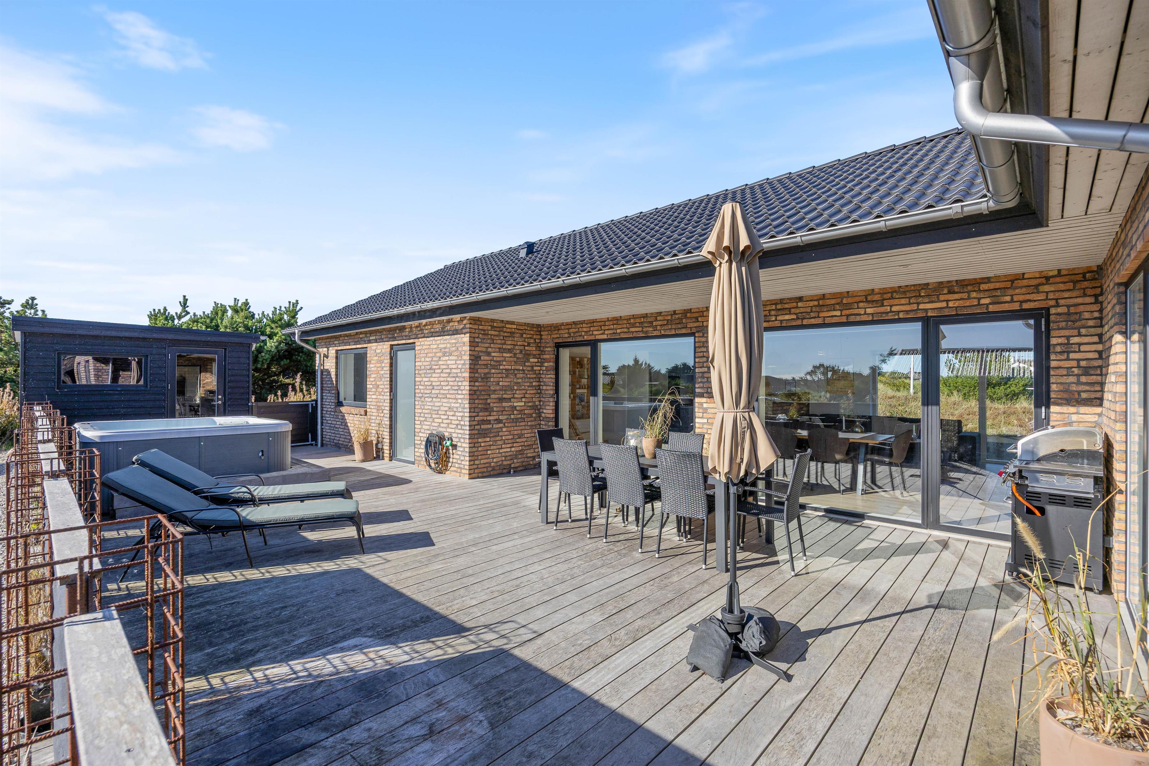 Det er ikke kun indvendigt, aktivitetshuset imponerer. Også de udendørs omgivelser byder på fede highlights. Her er der ikke kun sørget for gode havemøbler, liggestole og en stor gasgrill til de hyggelige grillaftener – der er også et udendørs spabad, der indbyder til lækre luksusoplevelser i den friske havluft. Terrassen er lukket hele vejen rundt, så I uden bekymringer kan lufte hundene.
