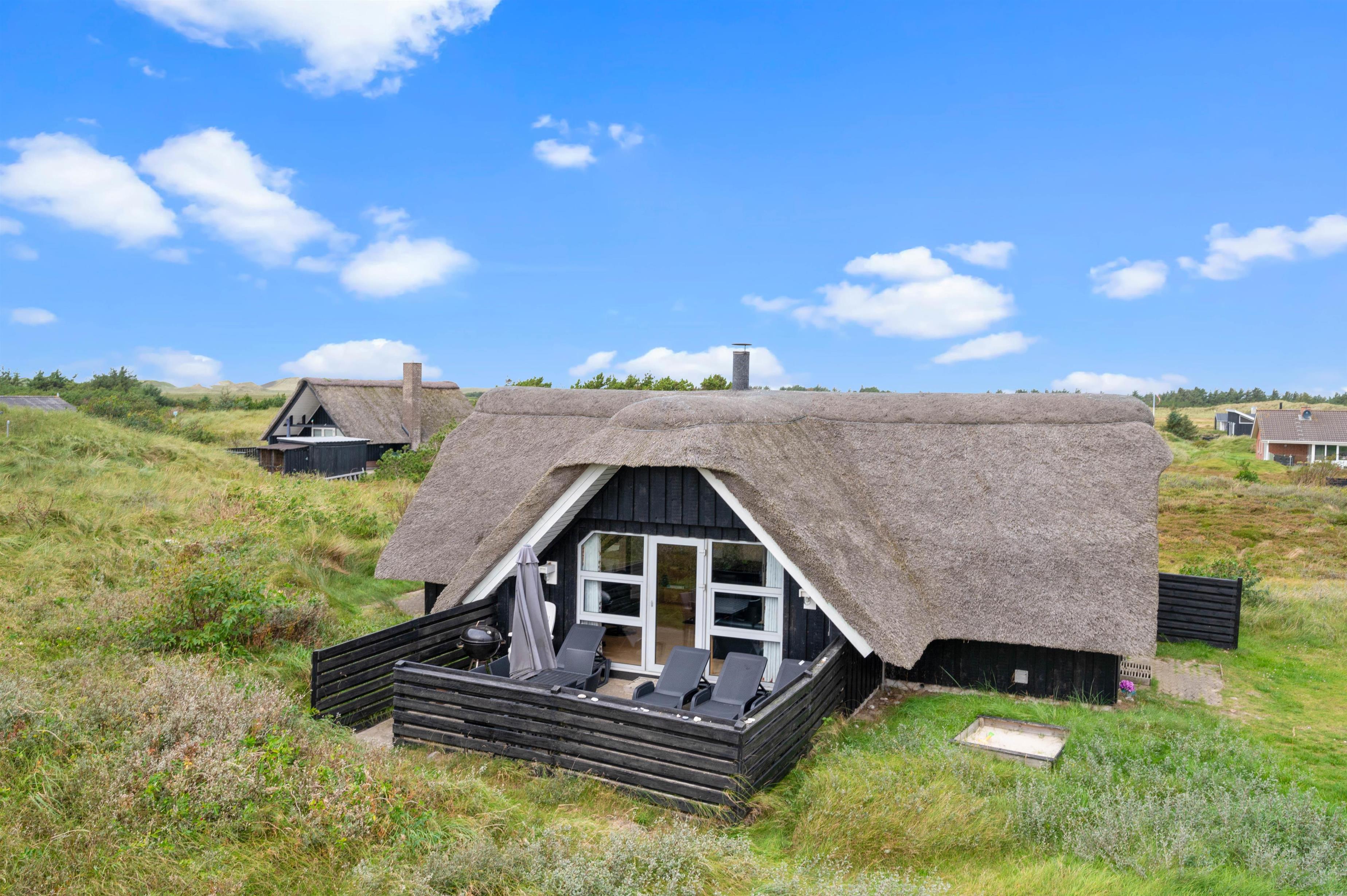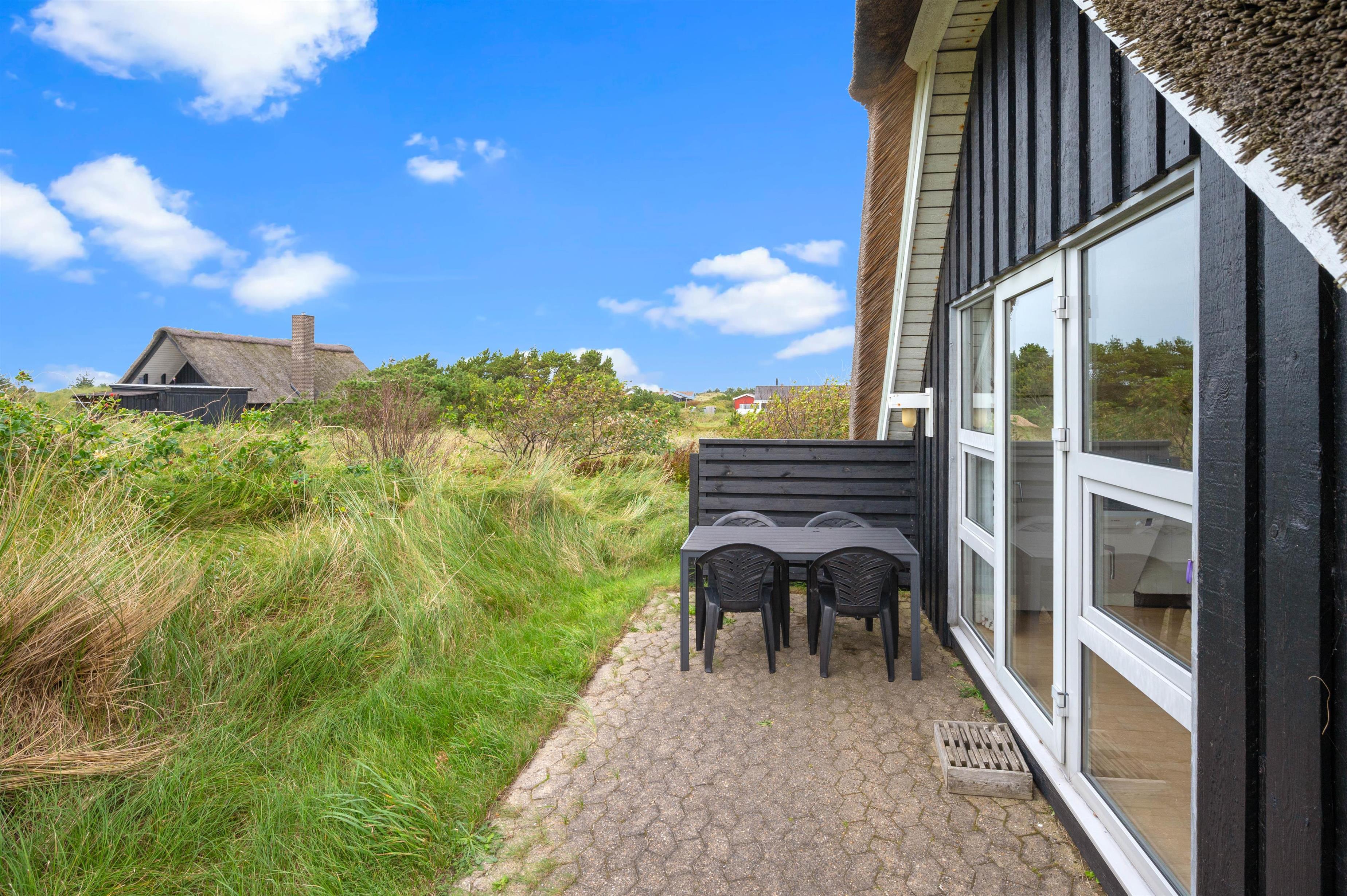Sommerhuset ligger på en 1.500 kvadratmeter stor kuperet naturgrund midt i Nr. Lyngvigs smukke klitlandskab. Udsigten til den skønne natur kan I nyde fra én af sommerhusets to terrasser. Den ene terrasse er en mindre, der vender mod nordvest, som I kan gå ud på fra sommerhusets køkken. Det er det perfekte sted at sidde ved en stille stund for sig selv, eller når I vil nyde aftensolen.