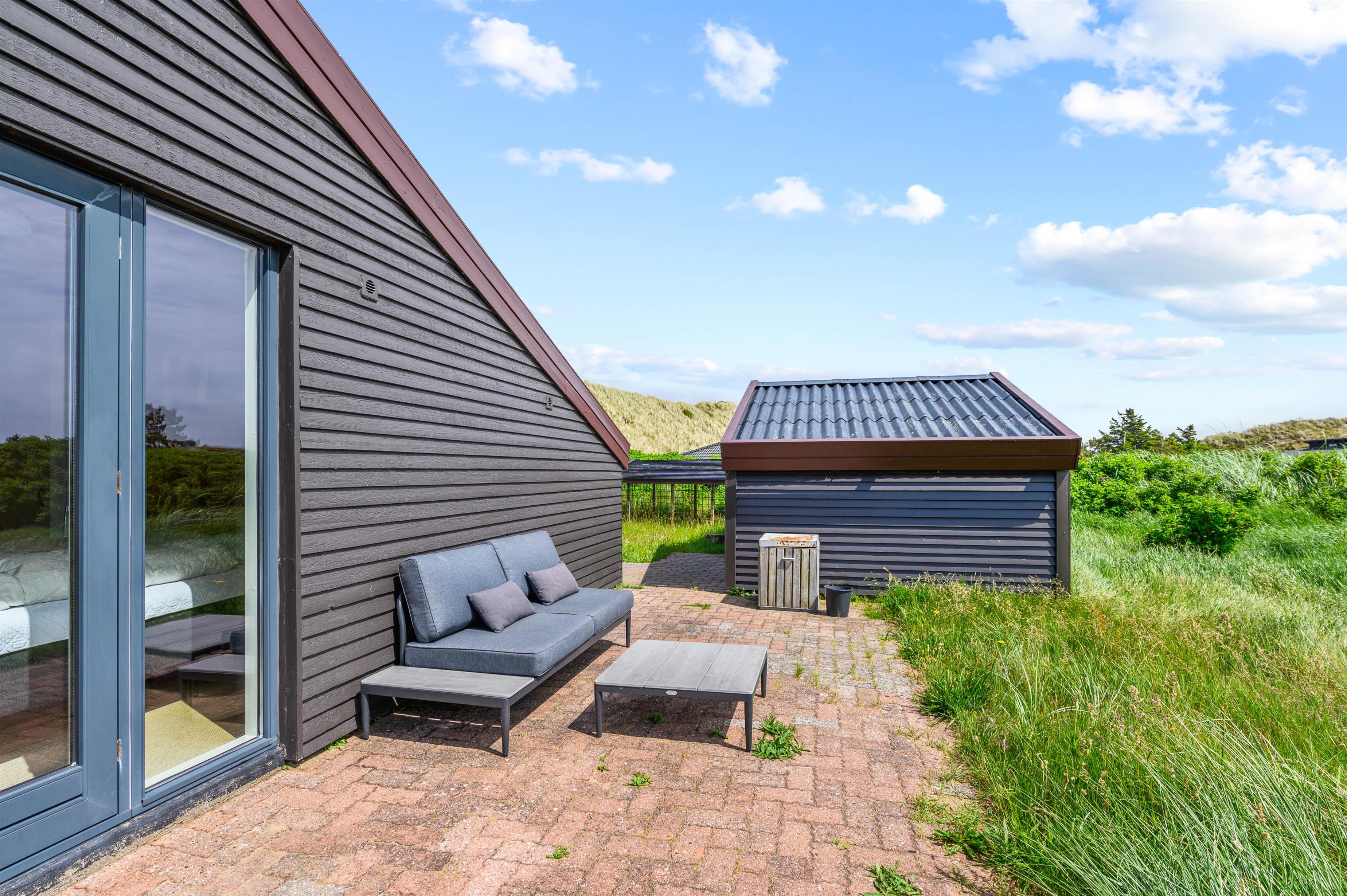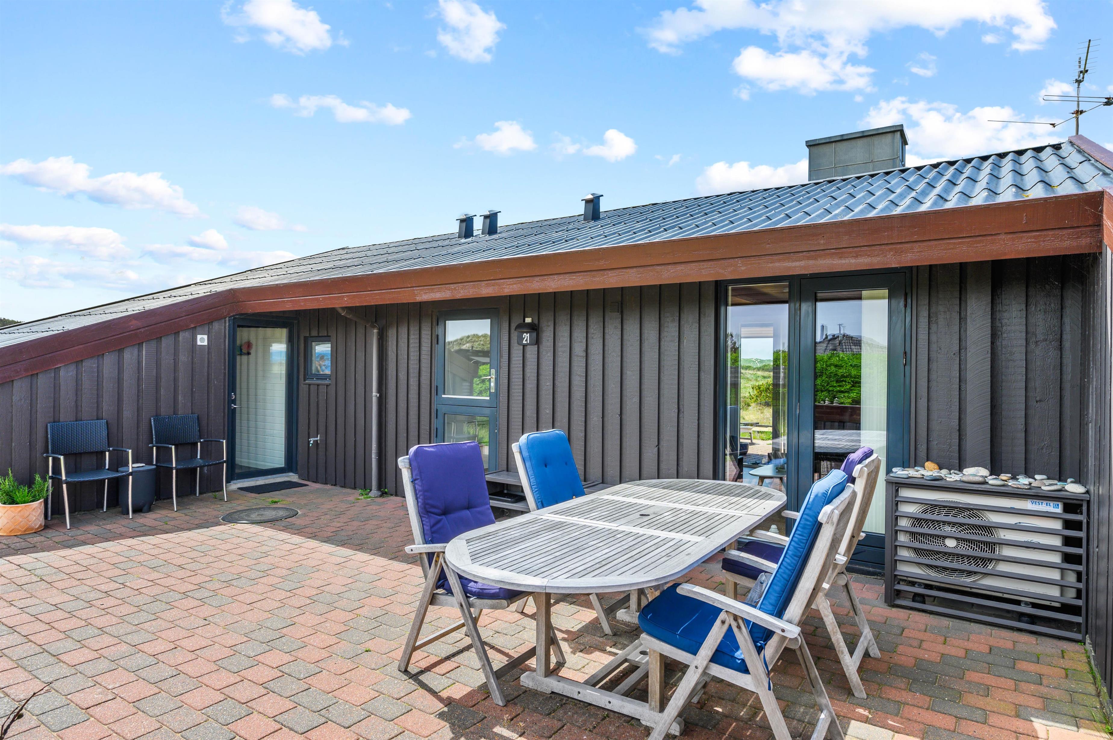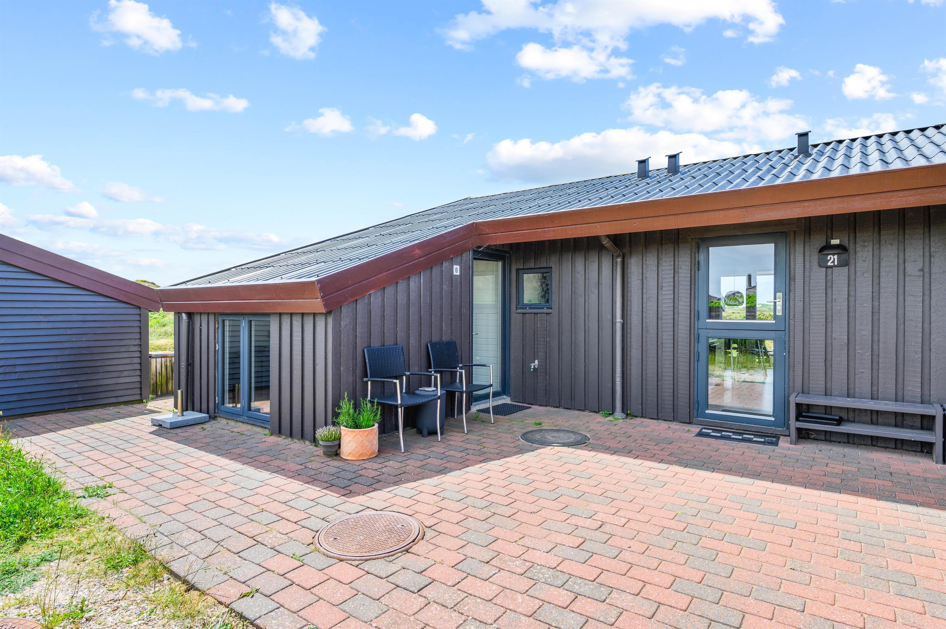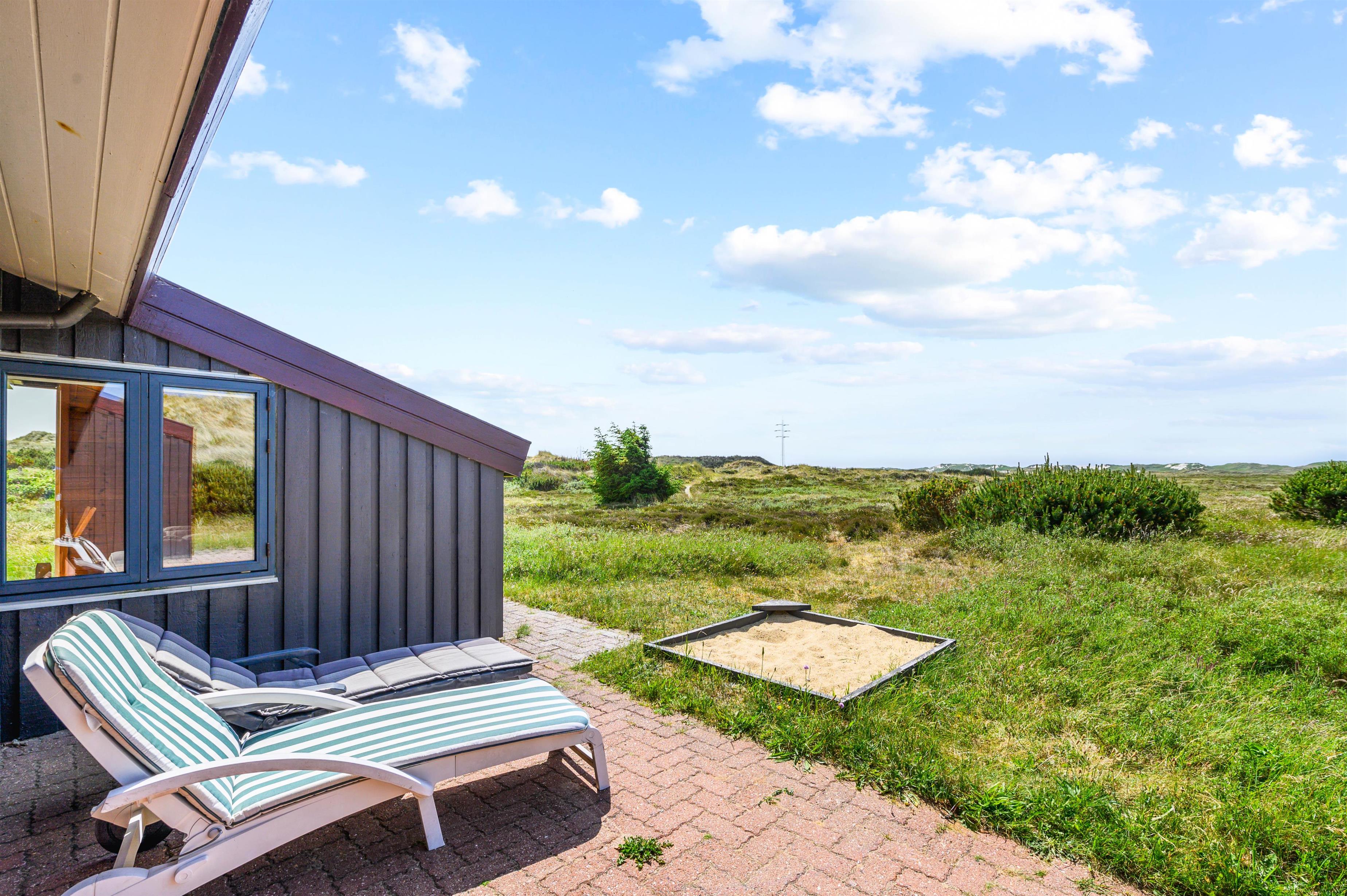 Sommerhuset på Gammeleng 21 i Nr. Lyngvig ligger ud til et stort og fredet lyngareal og råder over et skønt terrasseområde mod både vest, syd og øst, der er både delvist overdækket og afskærmet. Terrassen mod vest er overdækket imens I på terrassen mod øst altid kan finde læ. I kan derfor sidde her i al slags vejr. På de varme sommerdage kan I solbade på terrassen og nyde godt af feriehusets havemøbler, imens maden bliver tilberedt på den tilhørende grill. På de lidt mere regnvejrsfyldte dage, kan I i stedet trække i læ under den overdækkede terrasse, imens I fortsat nyder udelivet.