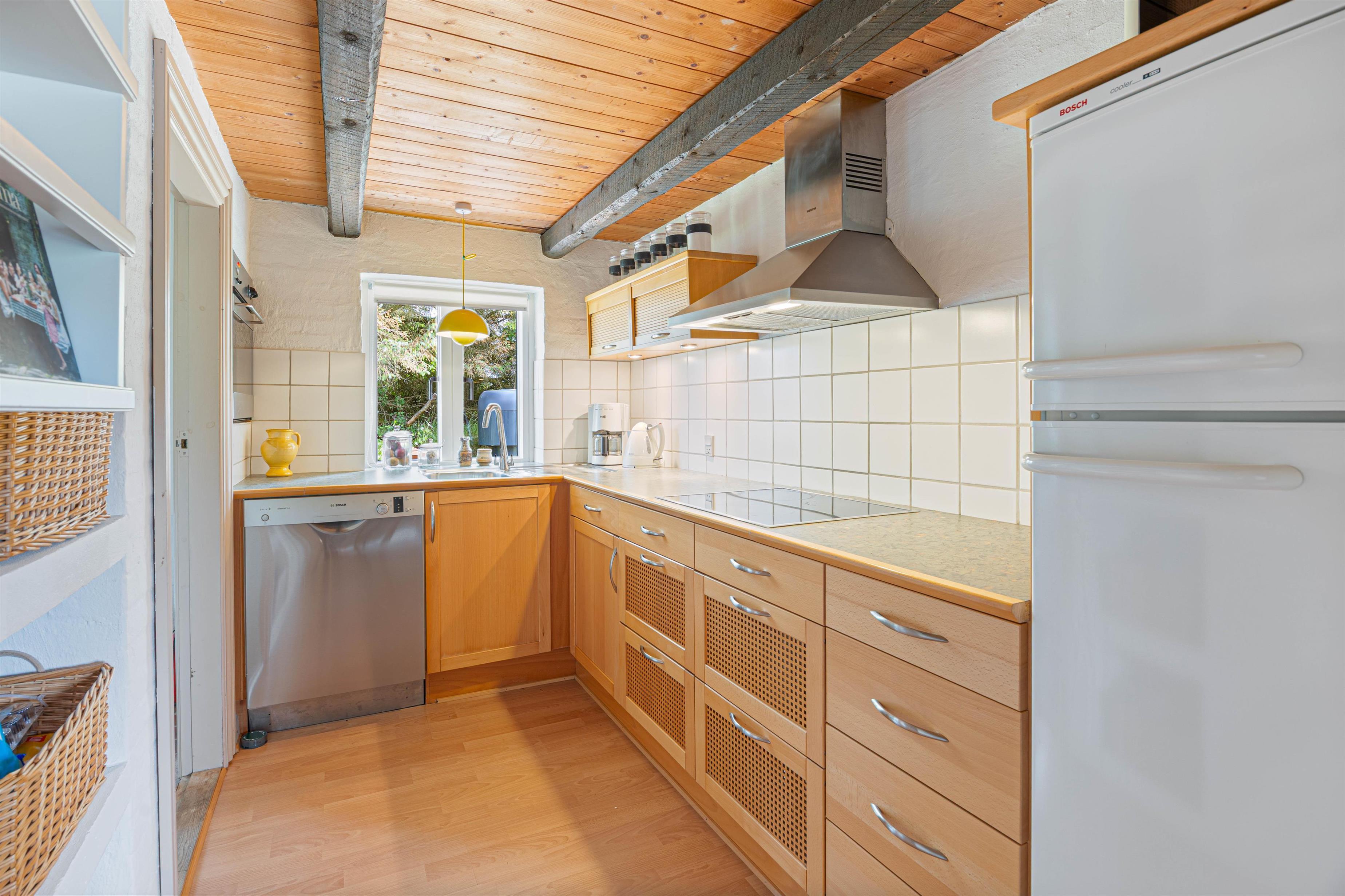 Sommerhuset er indrettet med en hyggelig stue samt et køkken, hvor man kan samles og være fælles om både madlavning i køkkenet eller brætspil ved køkkenbordet. Køkkenet er udstyret med både mikroovn, en lille fryser og opvaskemaskine, så I behøves ikke selv at stå for opvasken. Derudover er der også vaskemaskine og tørretumbler i sommerhuset.