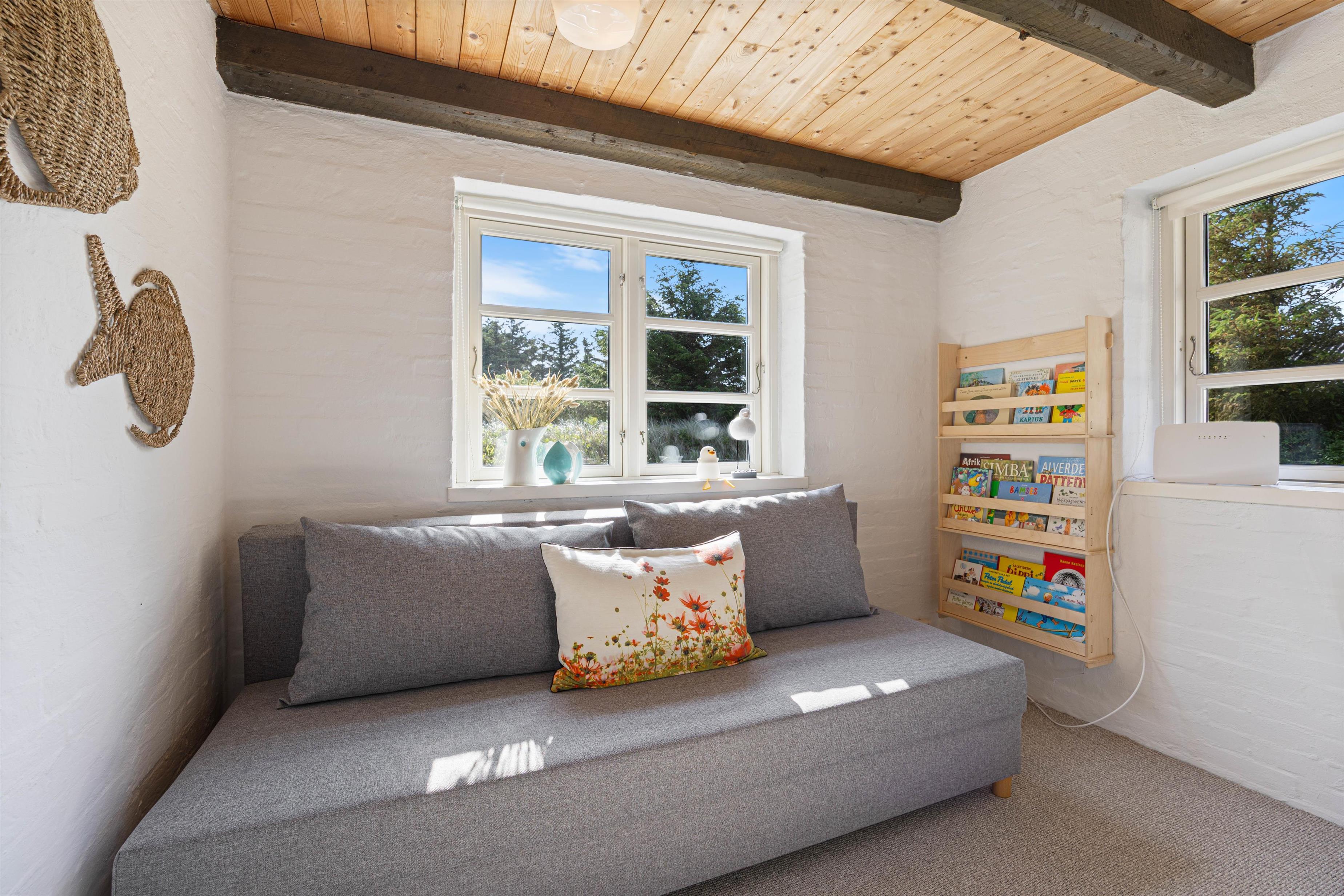 Sommerhuset har 6 sovepladser, som er fordelt på 3 gode soverum - på to af værelserne er der en dobbeltseng og på det sidste værelse er der en sovesofa (130x200). Derudover er der 1 badeværelse med gulvvarme, så jeres fødder altid holdes varme, som jo er særligt dejligt en kølig vintermorgen. I opholdsrummet er der også gulvvarme, som sørger for en dejlig temperatur indenfor. På de kølige dage kan I tænde op i brændeovnen i stuen og nyde varmen. Fra stuen af har I udkig til Nr. Lyngvig Fyr.