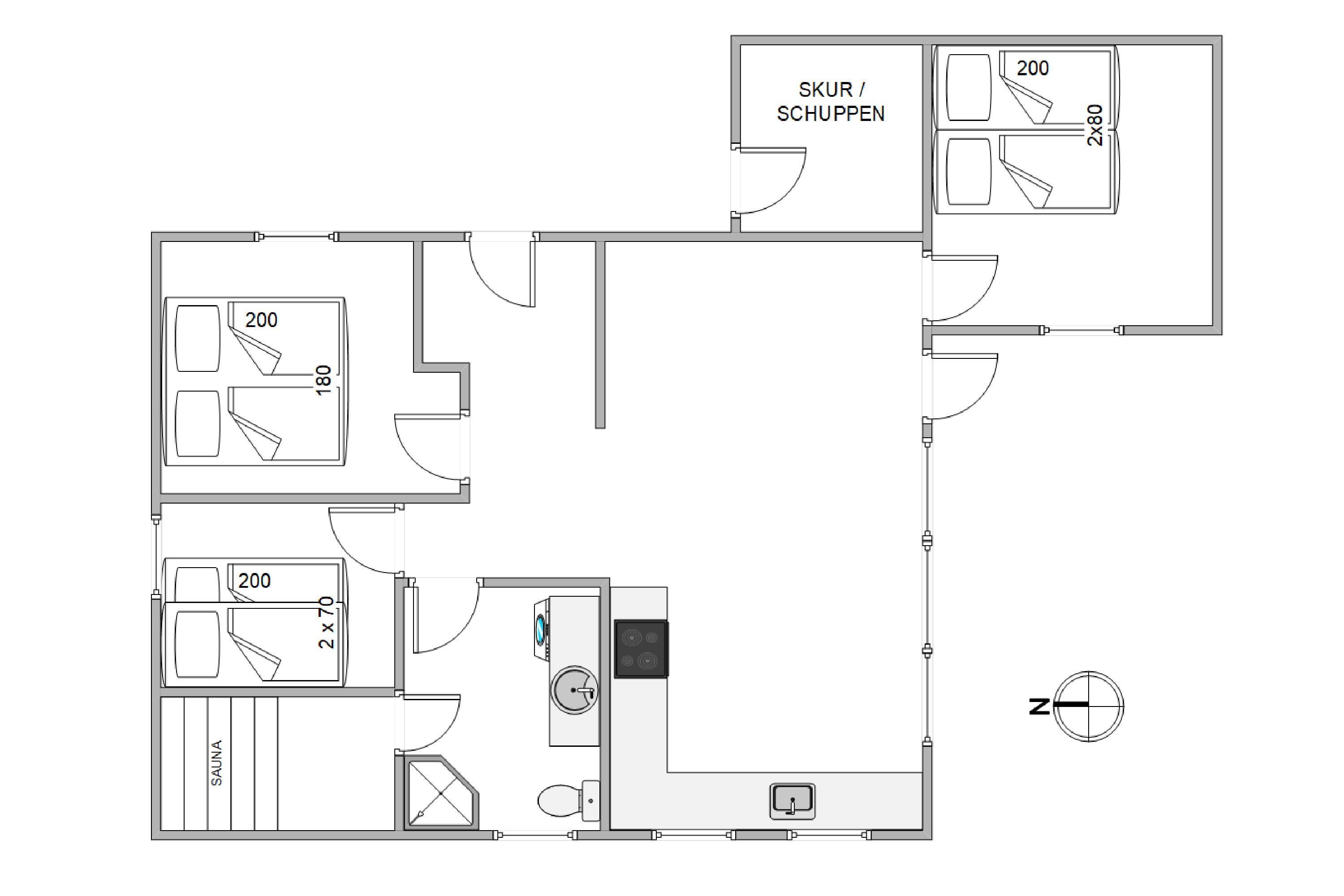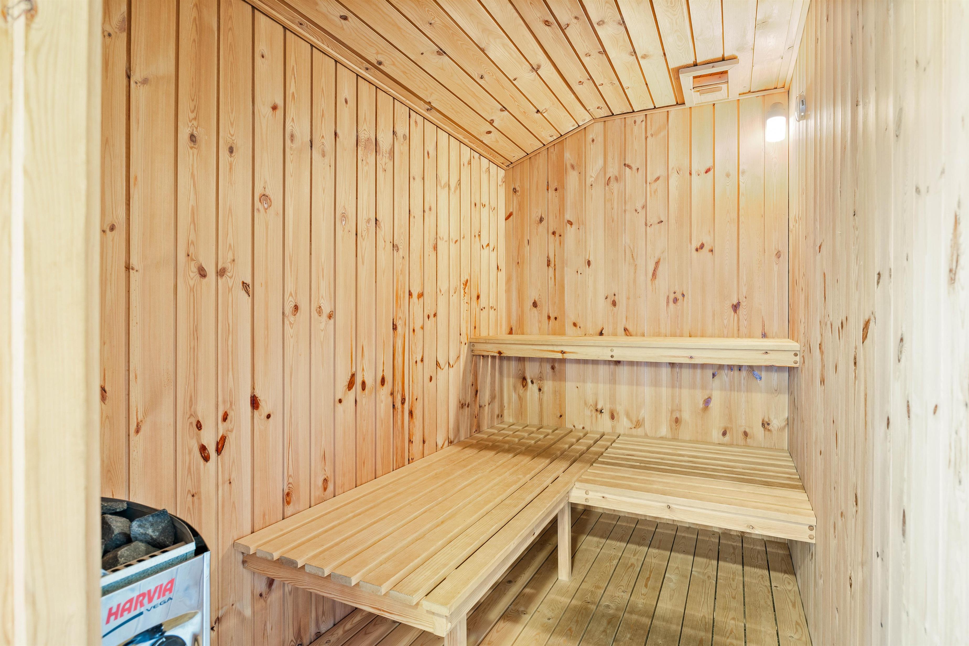 Når I trænger til at komme helt ned i gear, kan I sætte jer ind i saunaen, som I finder på badeværelset, og nyde den dejlige ro. På sommerhusets badeværelse er der også gulvvarme. Udover det ene badeværelse finder I også 3 soverum i sommerhuset med 2 dobbeltsenge og en køjeseng med 2 køjer.