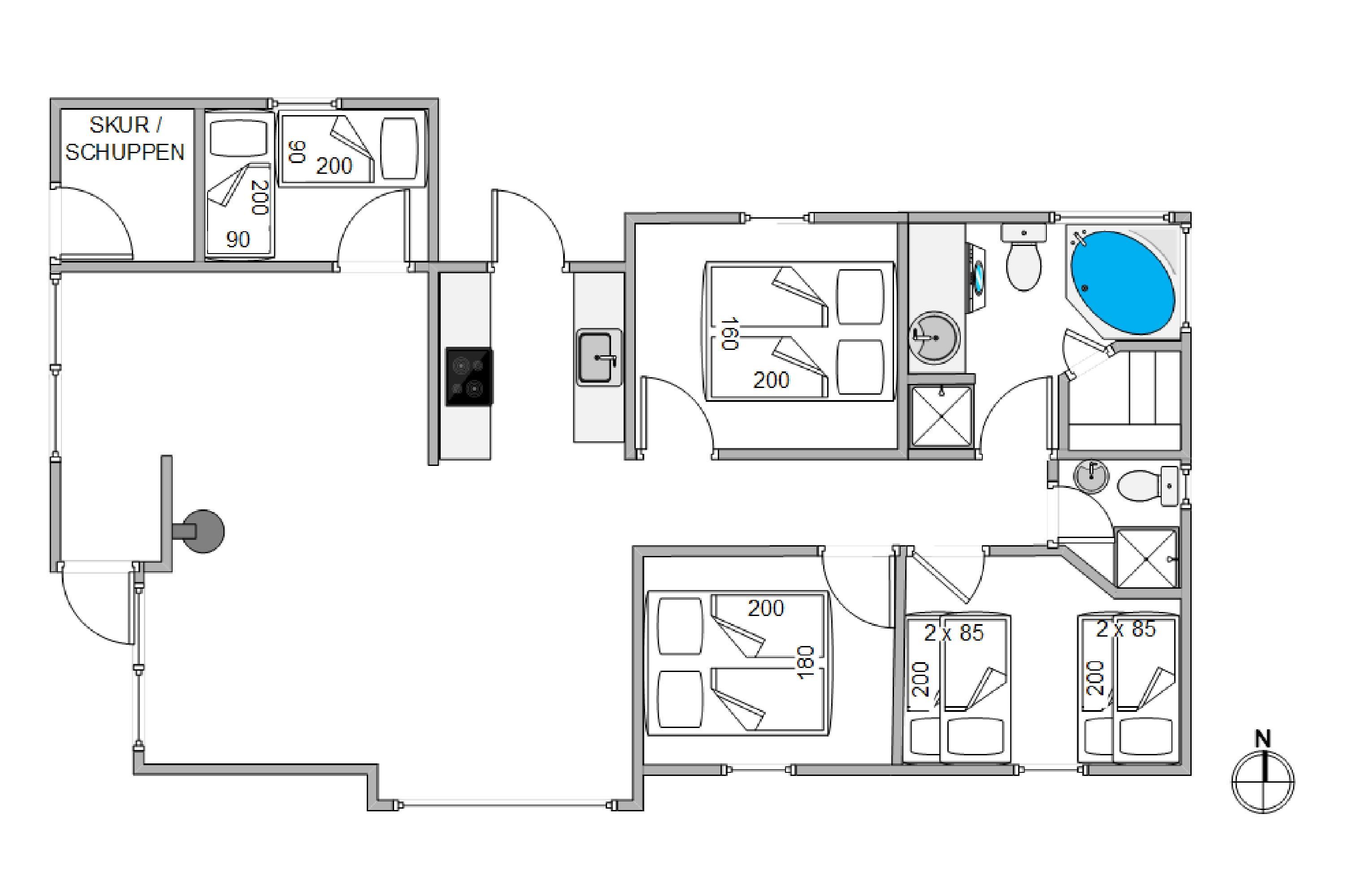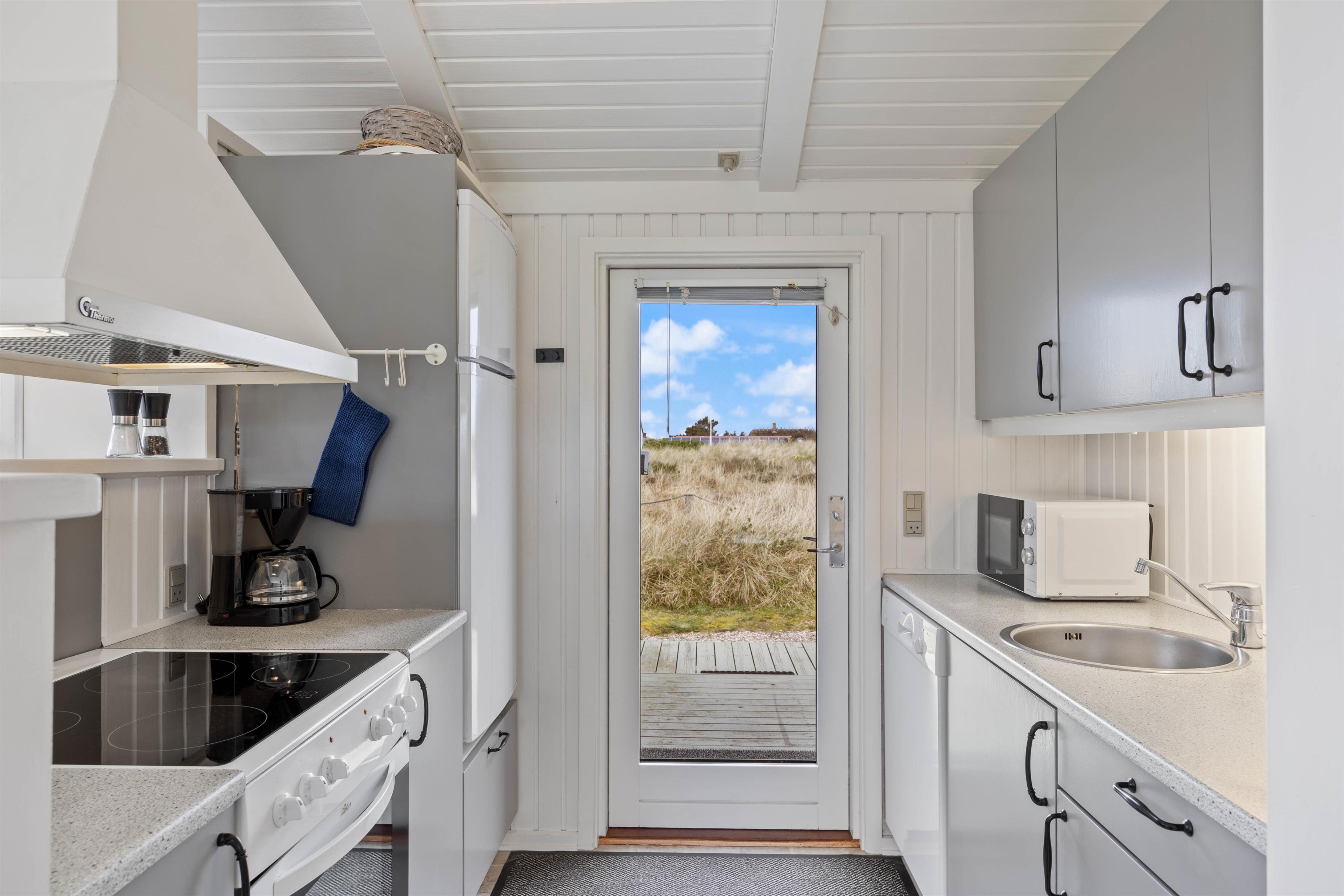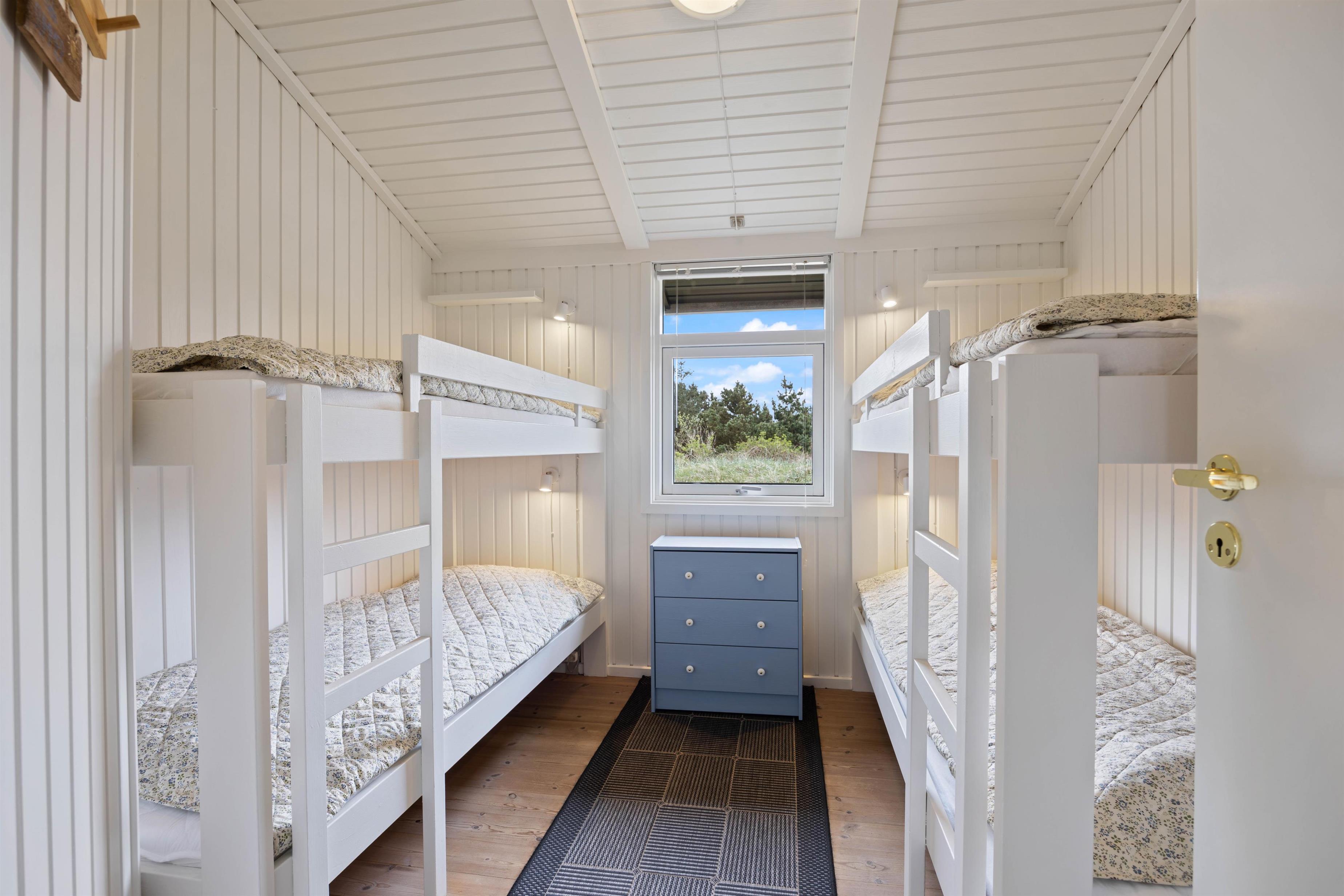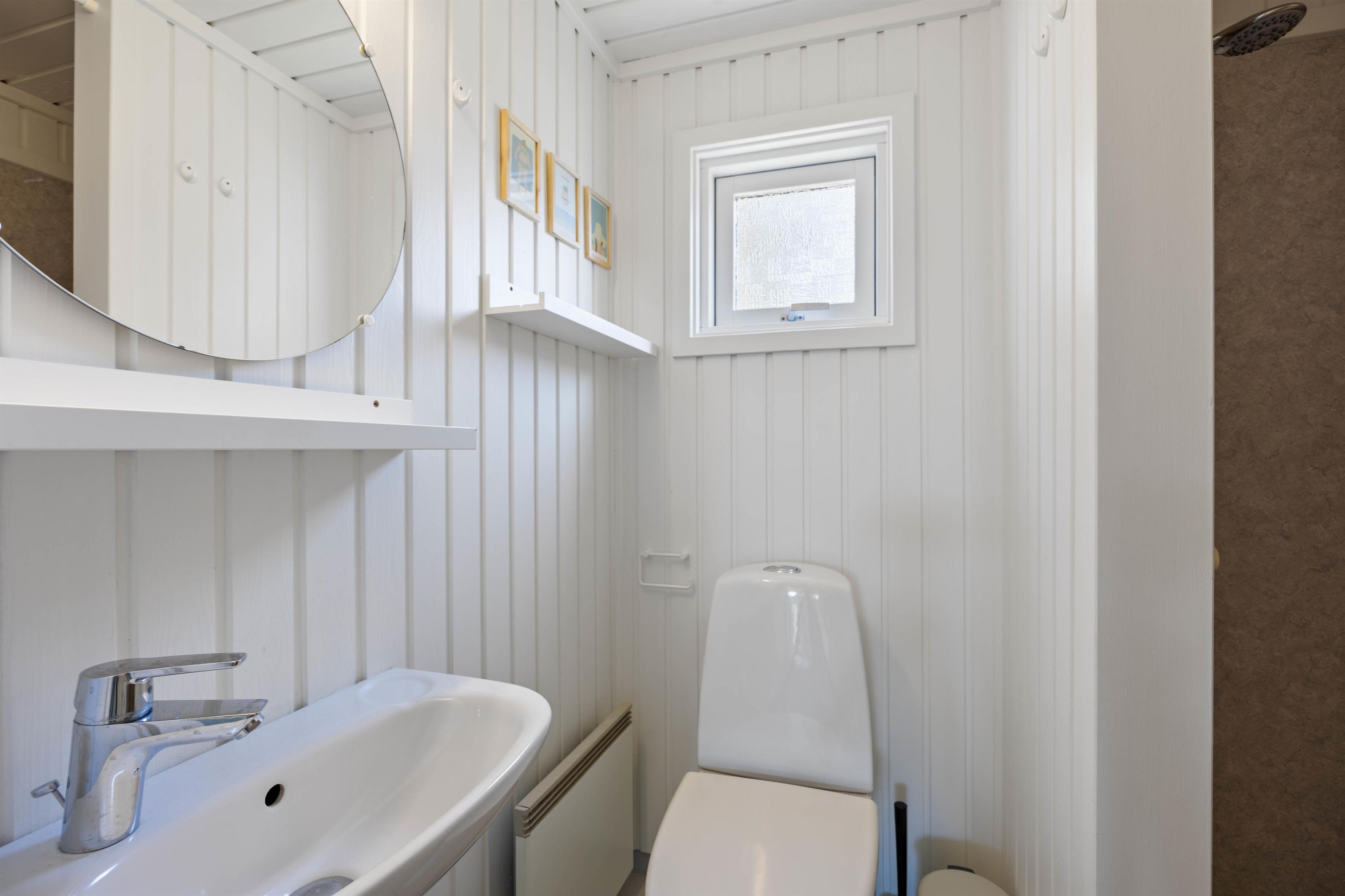 Sommerhuset er praktisk udstyret med 2 badeværelser (med gulvvarme), og det største badeværelse er desuden indrettet med både sauna og spabad. Der er altså alle muligheder for at få ladet batterierne op og vende hjem med fornyet energi efter ferien.