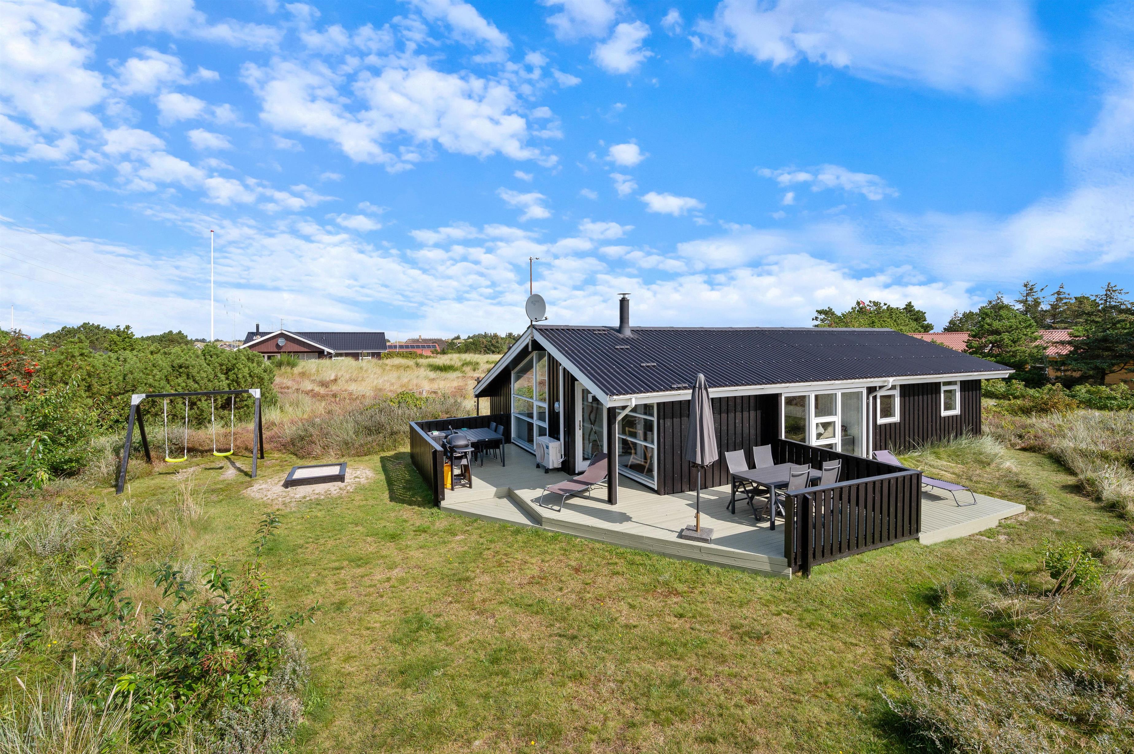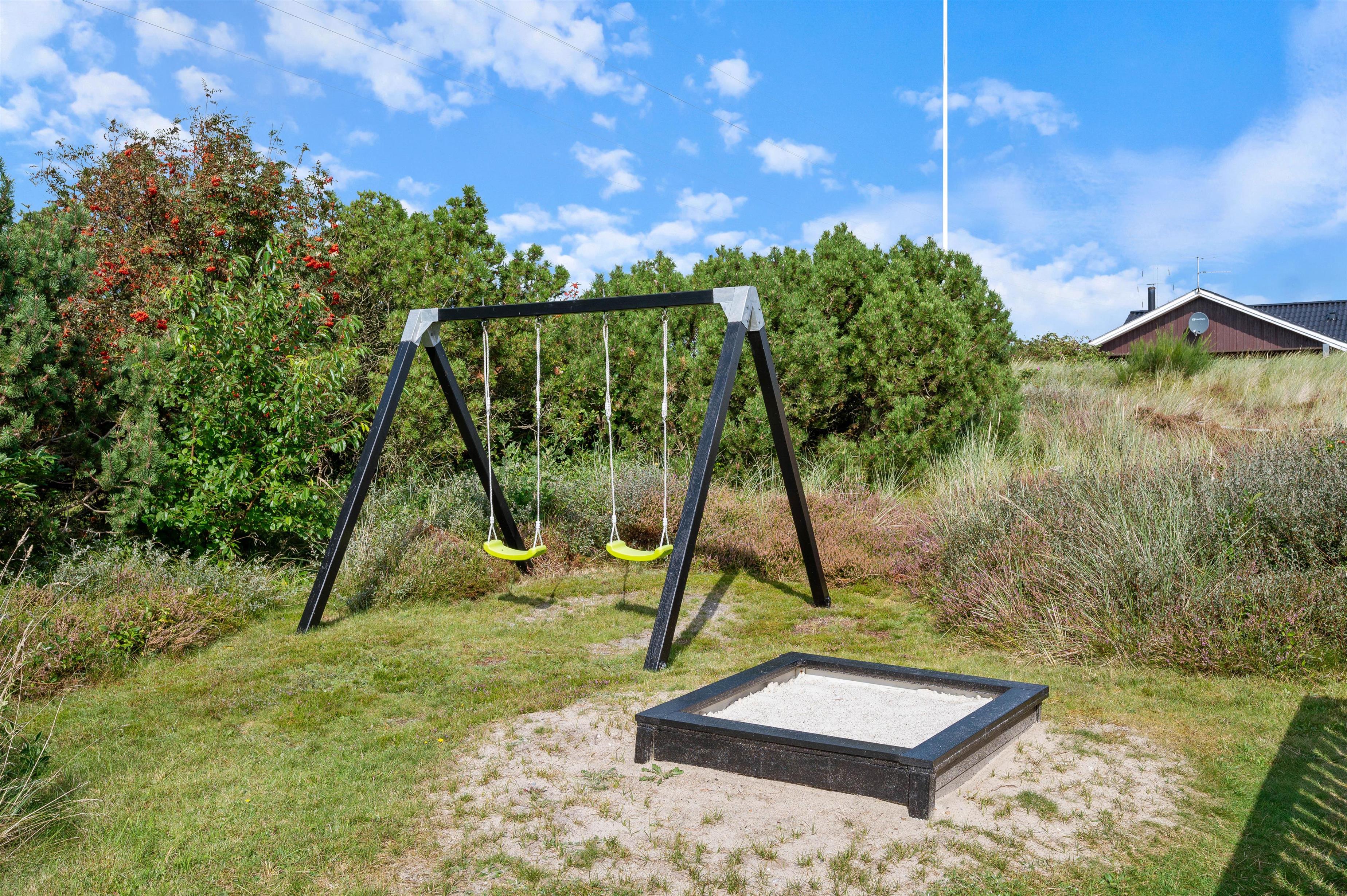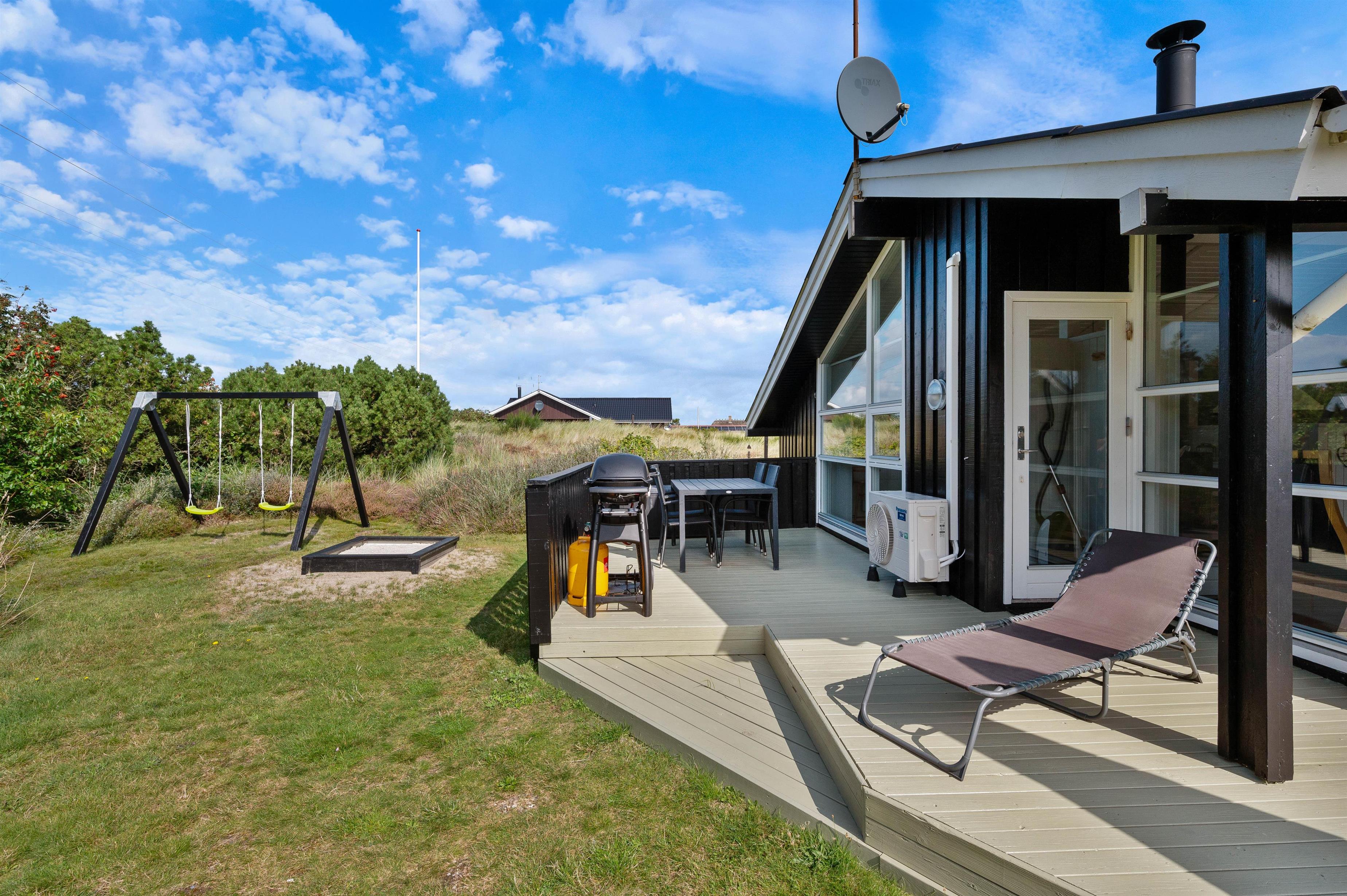 Flere terrasser, sandkasse og gyngestativ, kort vej til det populære Lyngvig Fyr