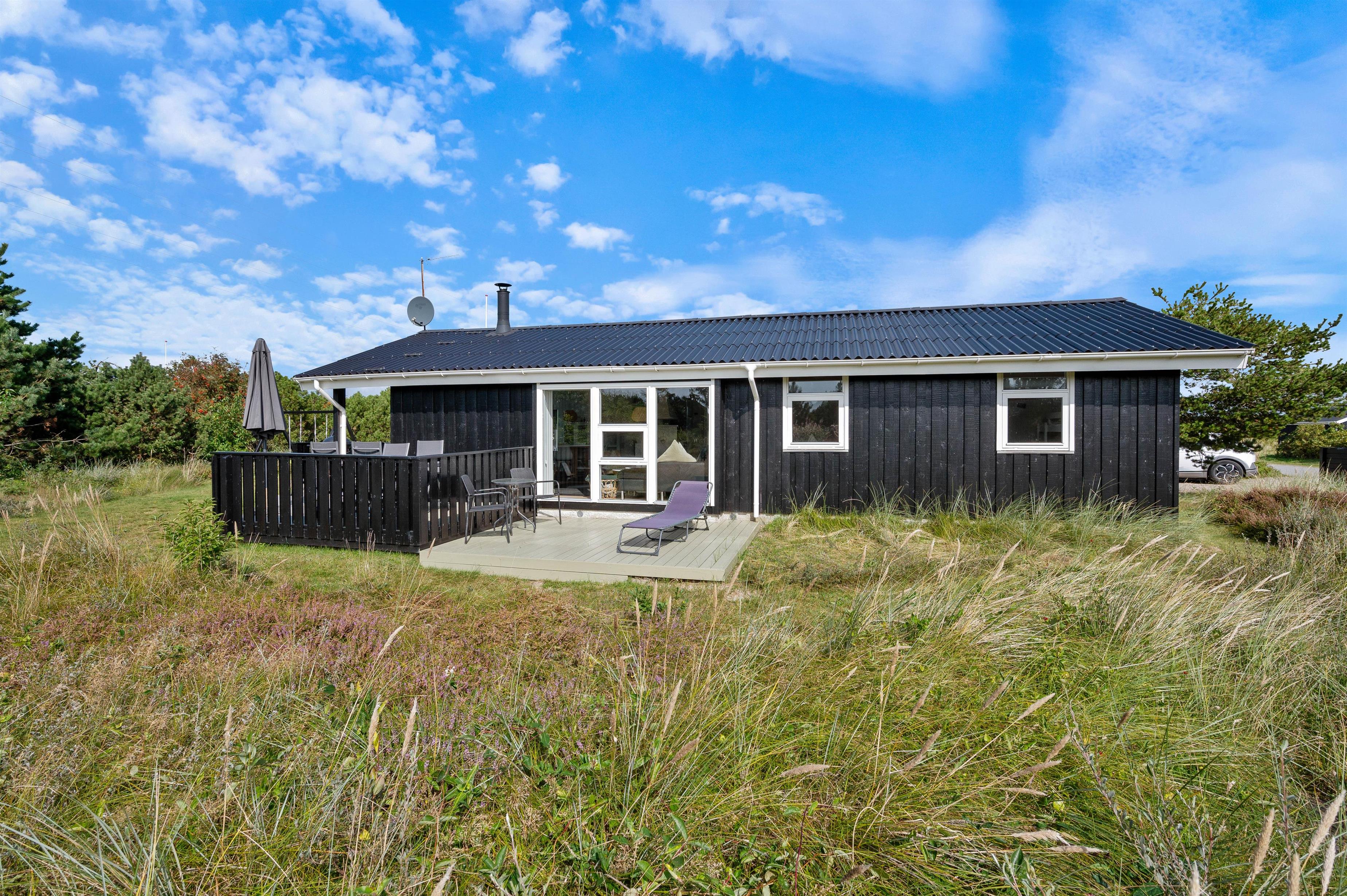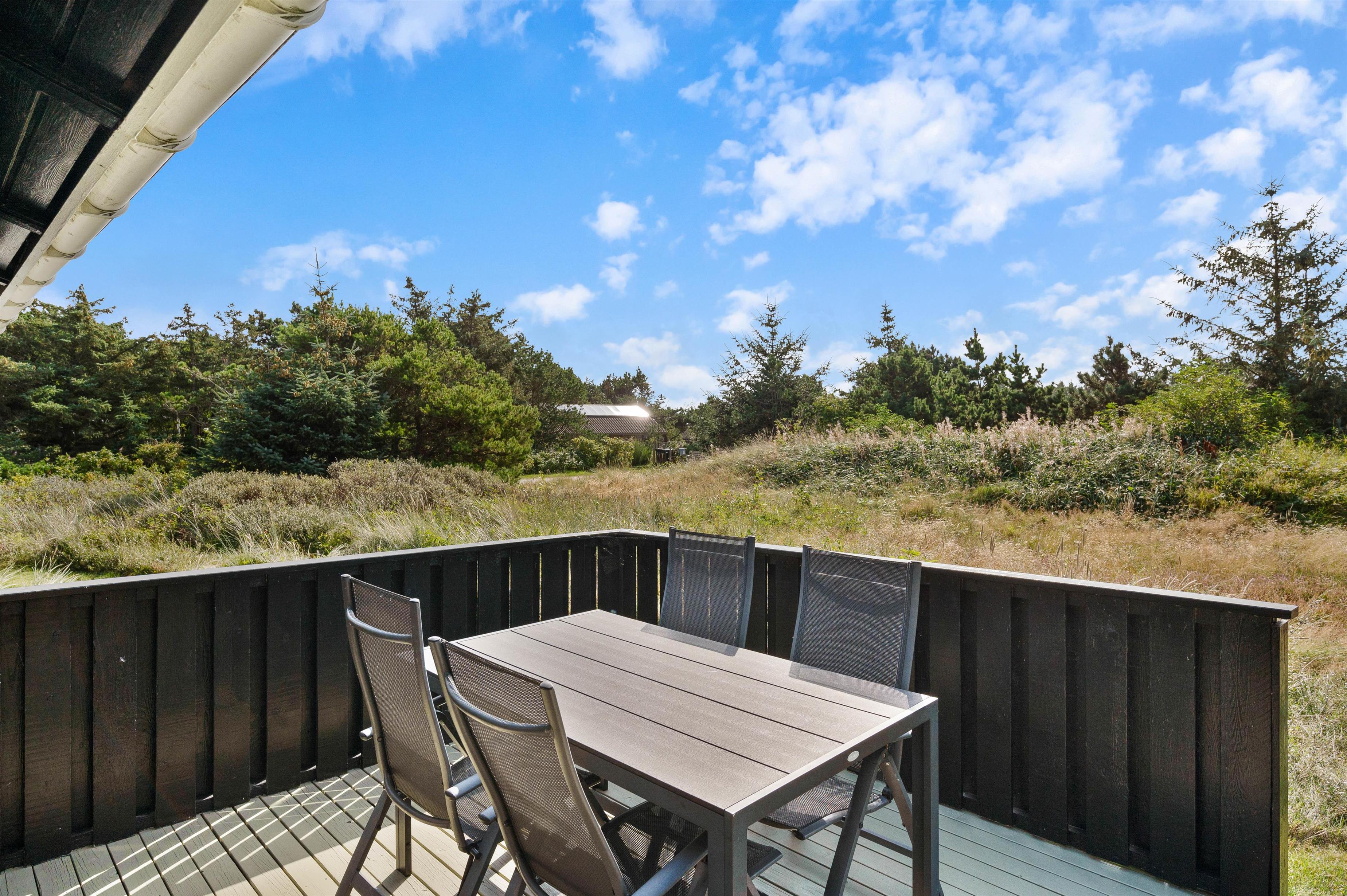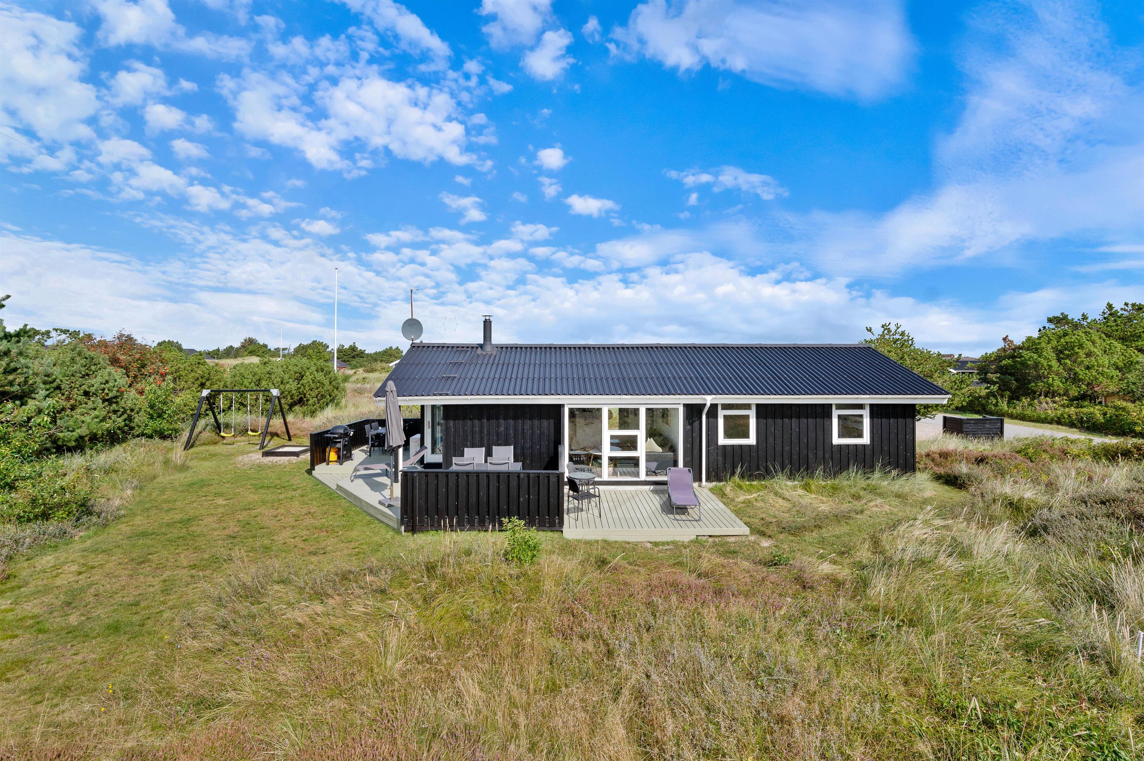 Flere terrasser, sandkasse og gyngestativ, kort vej til det populære Lyngvig Fyr