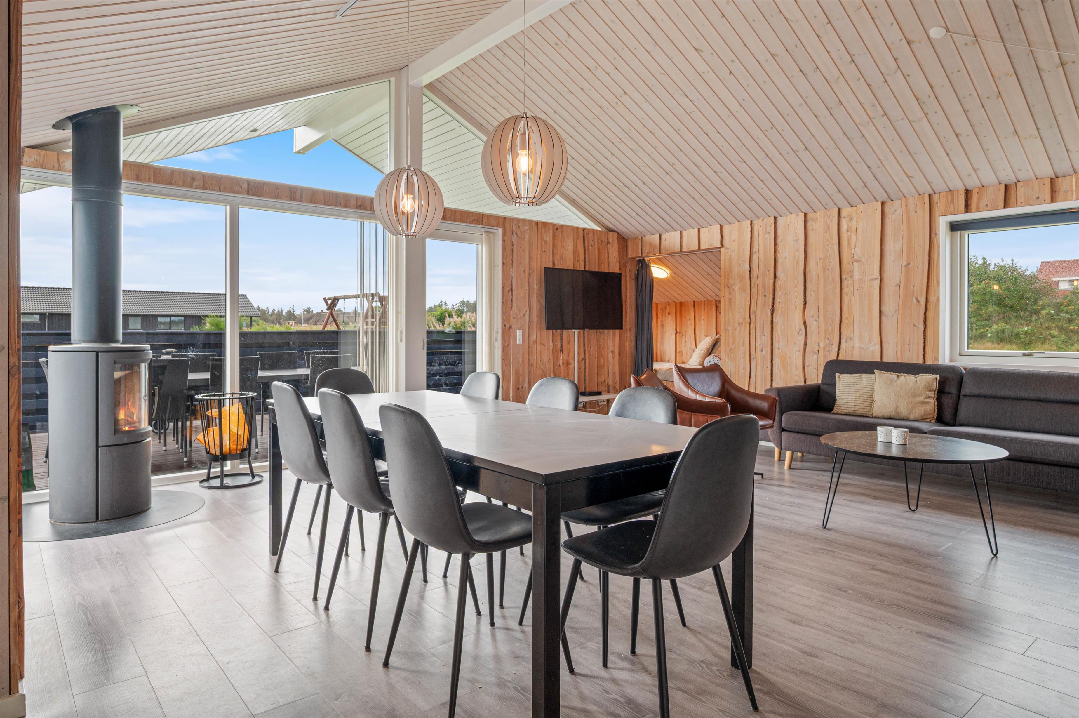Det 145 kvadratmeter store feriehus er først bygget i 2018 og er opført i flotte, kvalitetsbevidste materialer. Indretningen er stilfuld og moderne med lækre faciliteter, som gør ferien ekstra god.