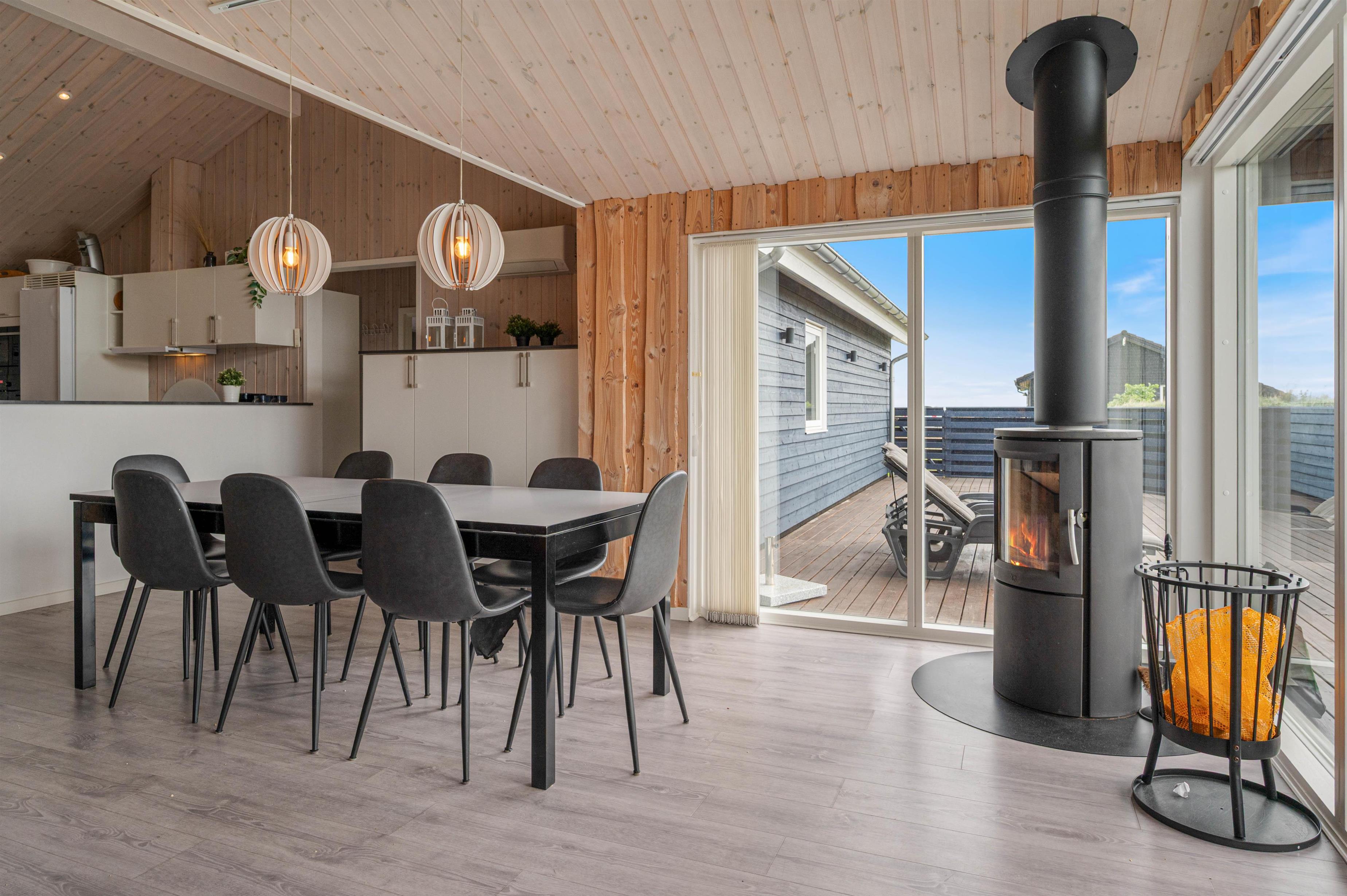 Der er stadig et strejf af de klassiske sommerhustræk, heriblandt brændeovnen, som sørger for varme og hyggelig stemning hele året rundt. Der er både opvaskemaskine, vaskemaskine og tørretumbler, så ferien bliver så ukompliceret som muligt.