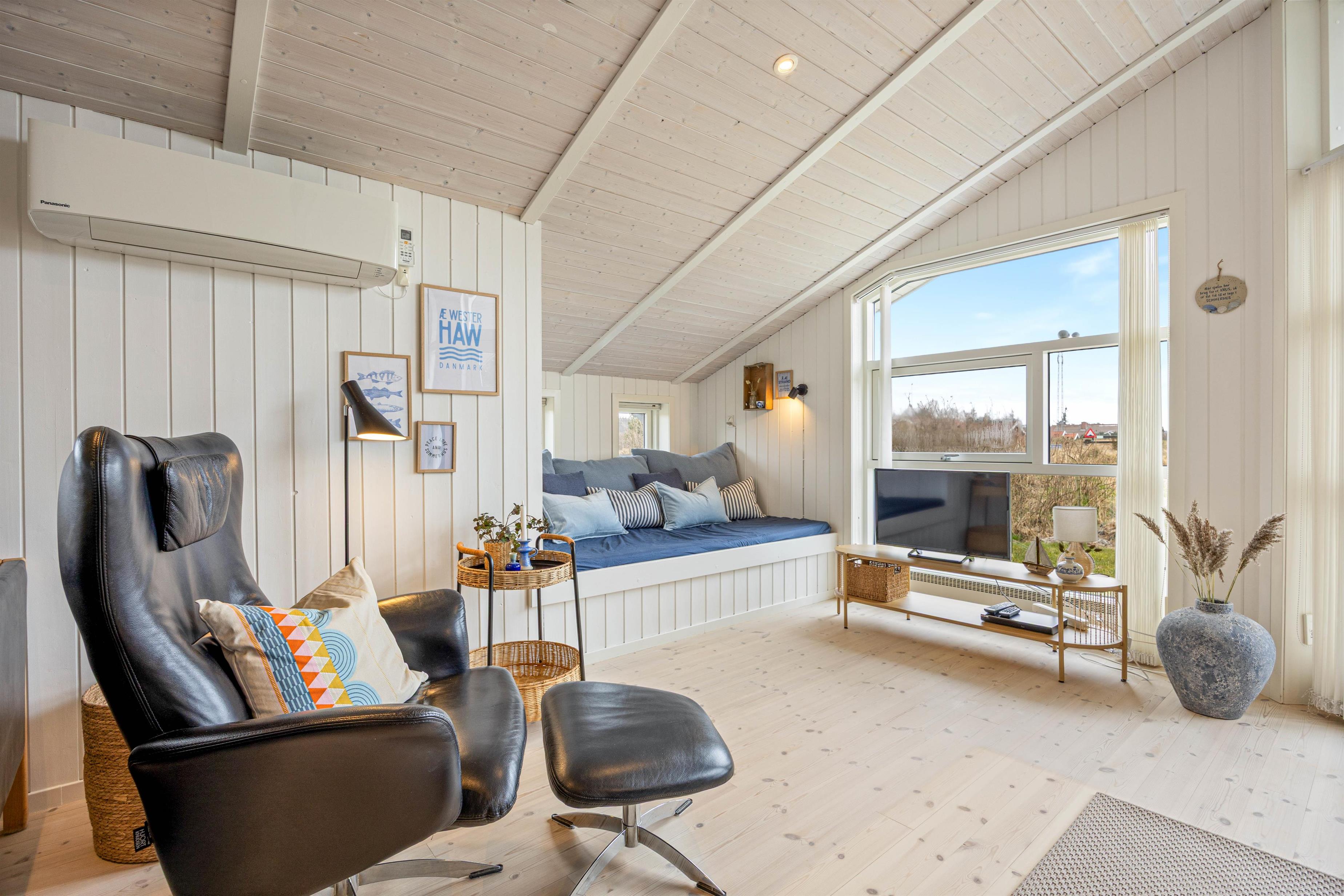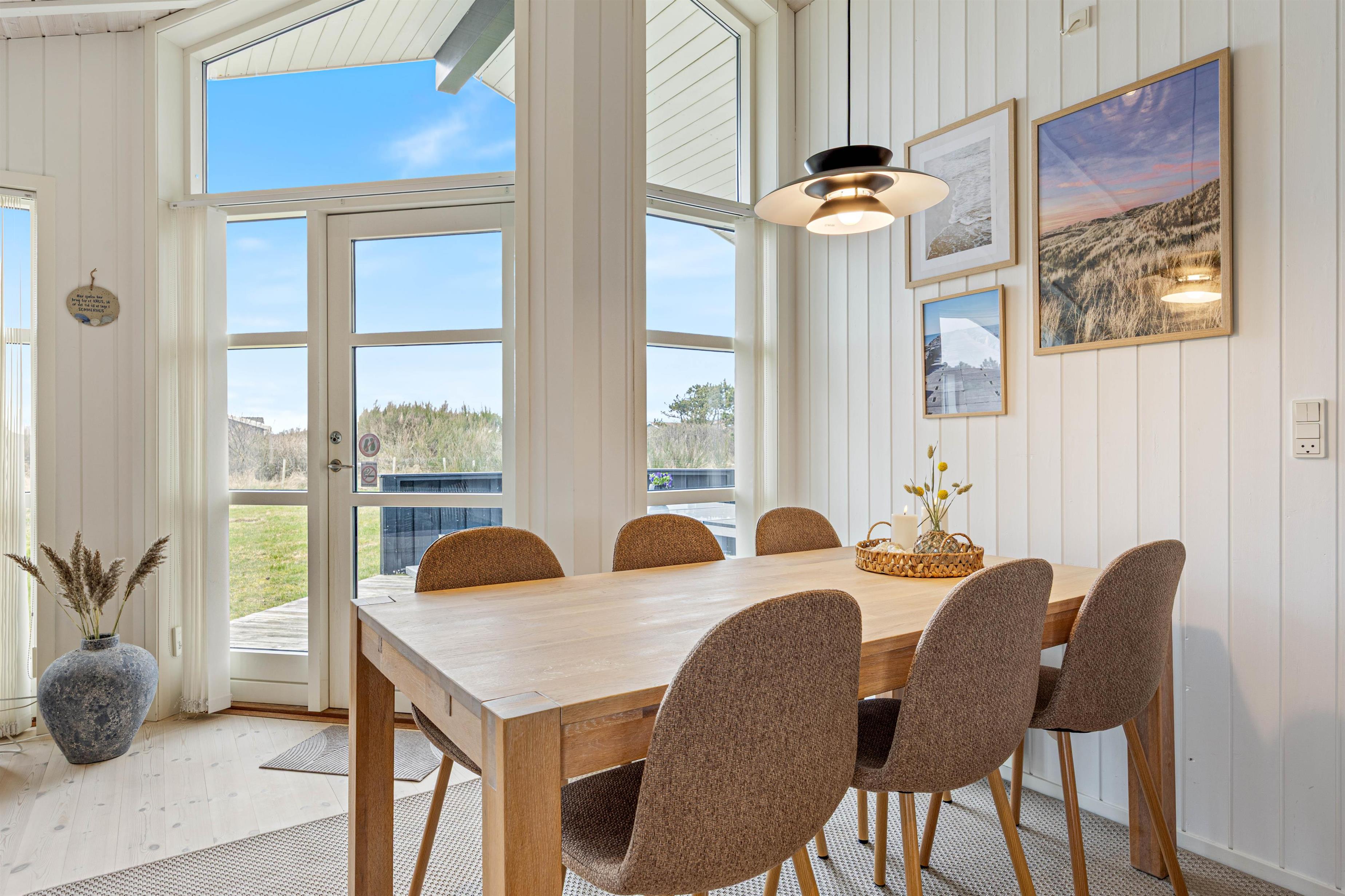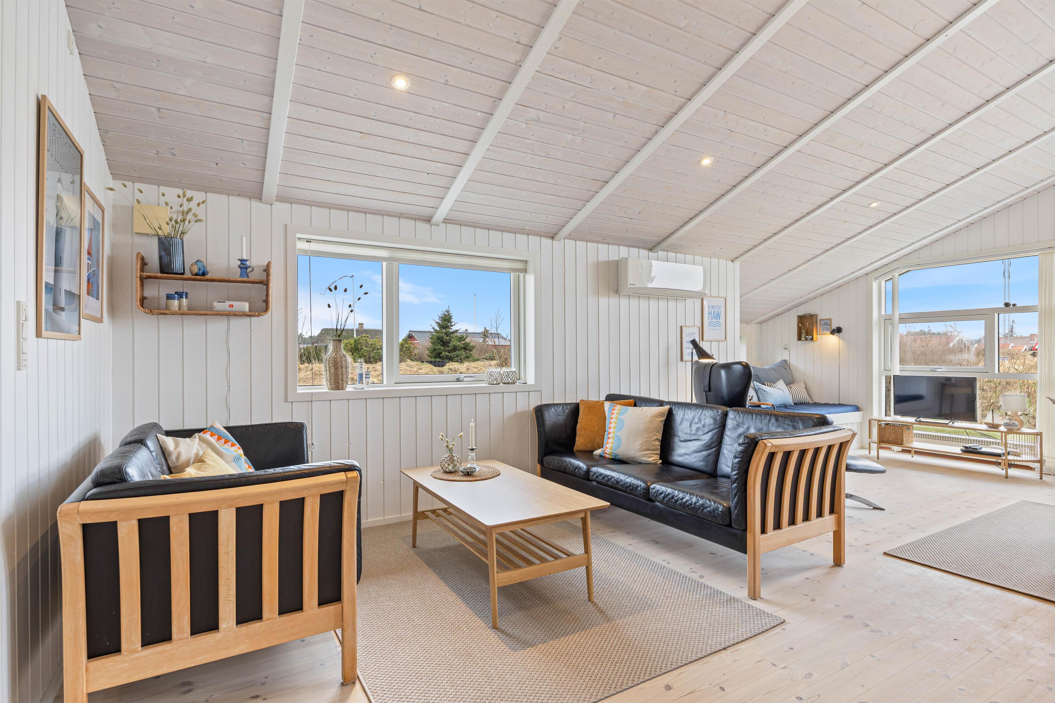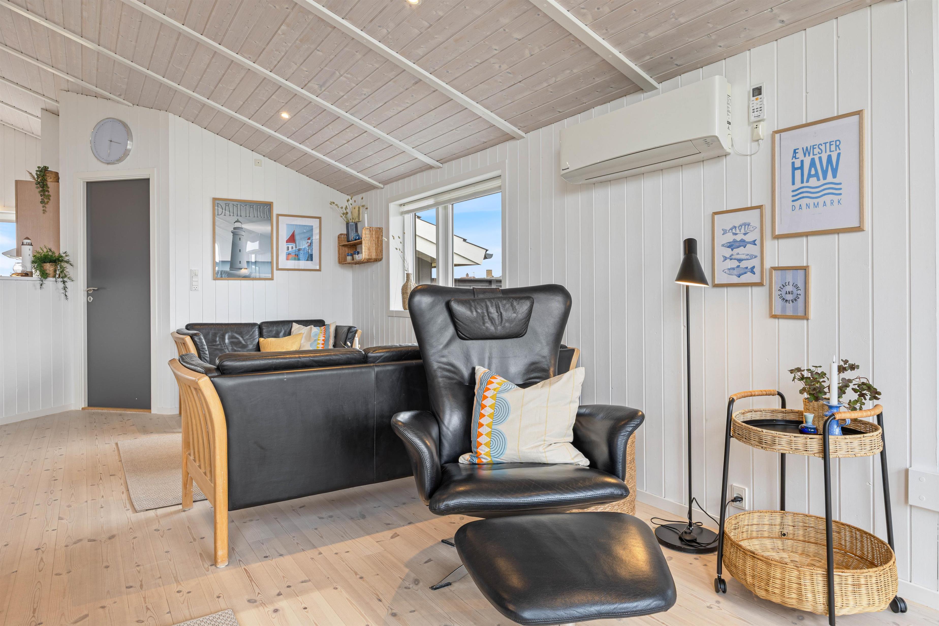 I det skønne sommerhus til 6 personer i Nr. Lyngvig er der lagt op til feriehygge med familien. Det er lyst og hyggeligt indrettet med brændeovnen i centrum. En forfriskende gåtur ved Ringkøbing Fjord eller Vesterhavet er kun et stenkast væk, og I er naturligvis velkommen til at tage hunden med.