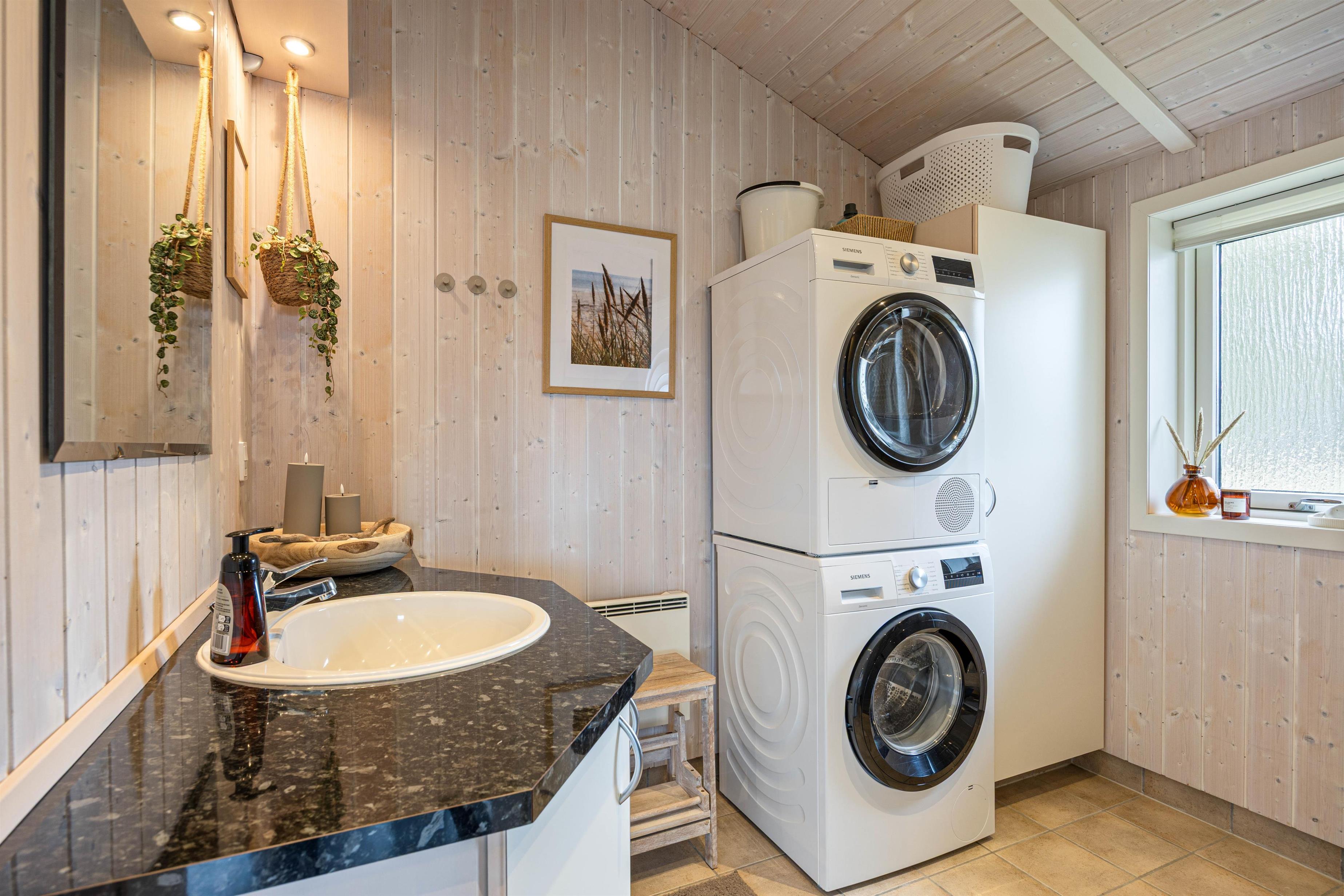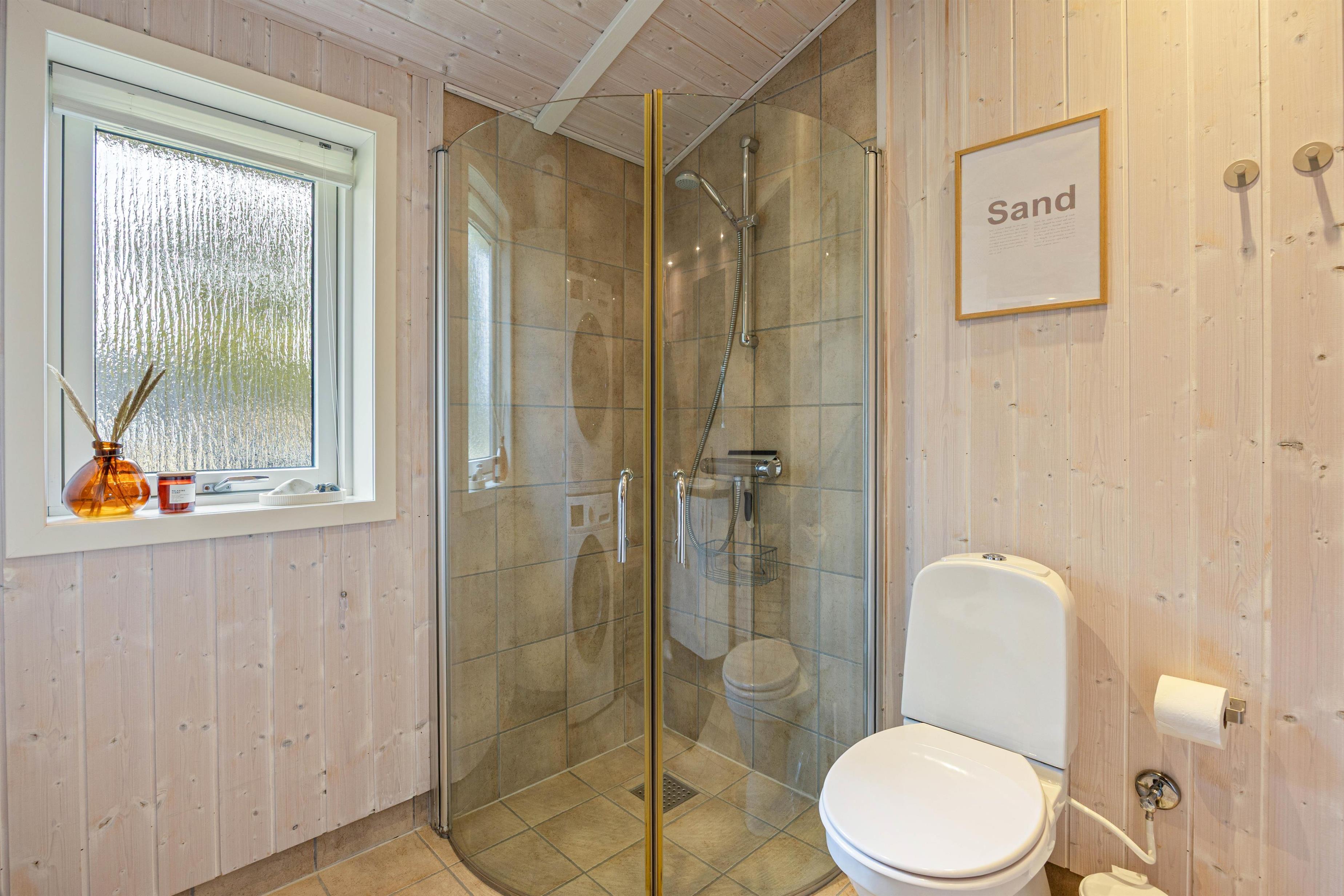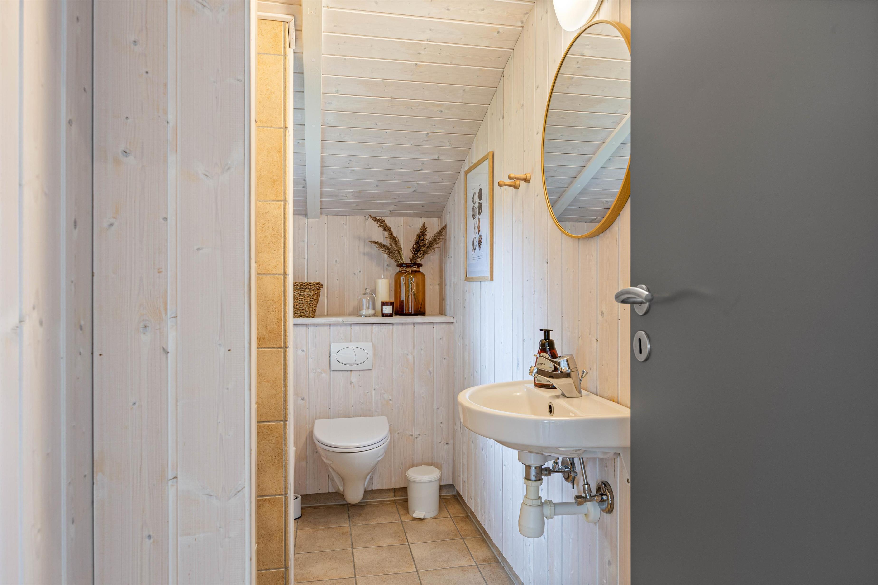 Sommerhuset er udstyret med en gæstetoilet og en badeværelset, så der aldrig er kø om morgenen. Desuden har begge badeværelser gulvvarme, hvilket også er at finde i sommerhusets opholdsrum. Hvis vestenvinden har vist tænder, og I skal varmes op efter en gåtur, er der en økonomisk varmepumpe i sommerhuset.
