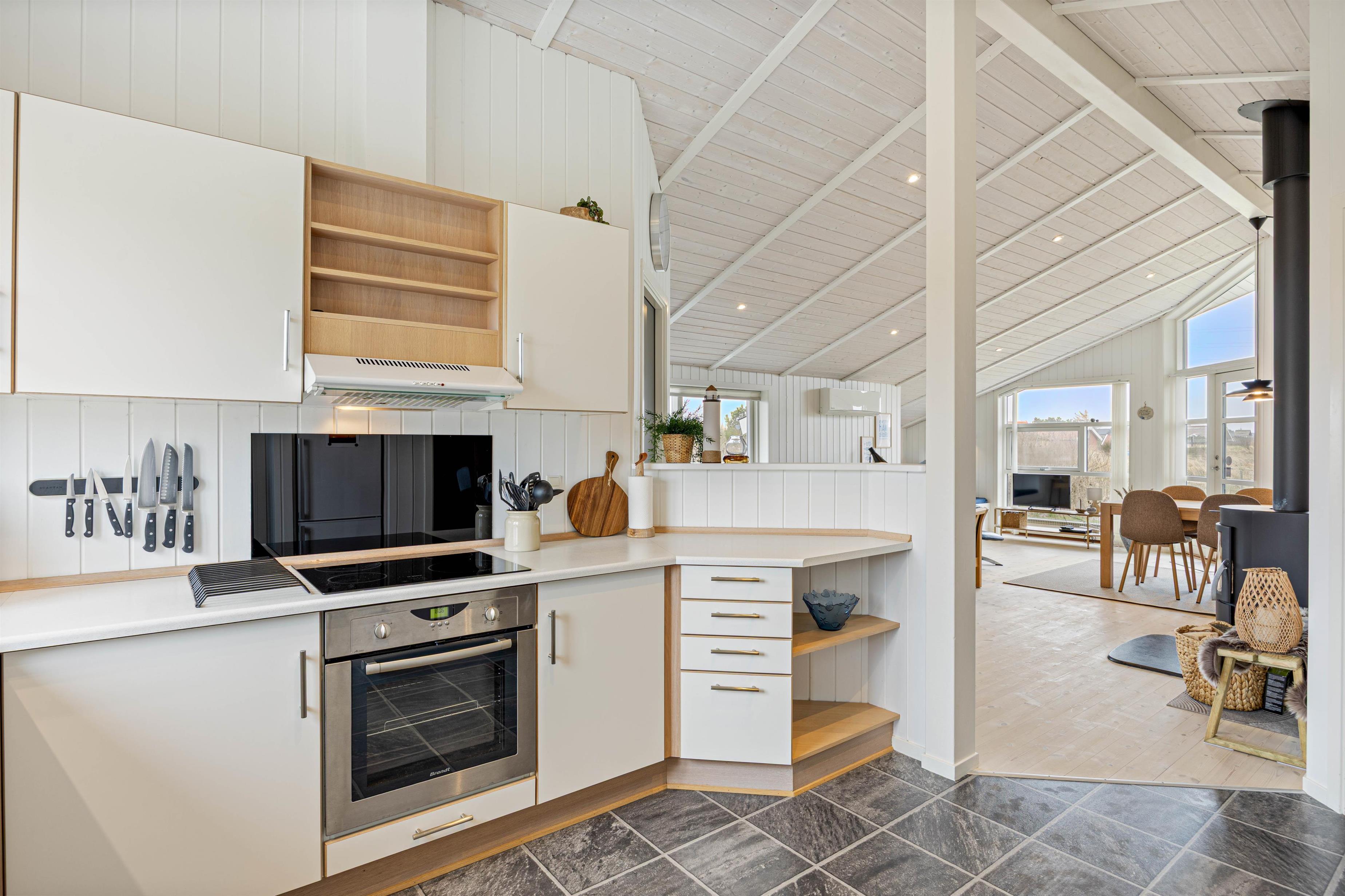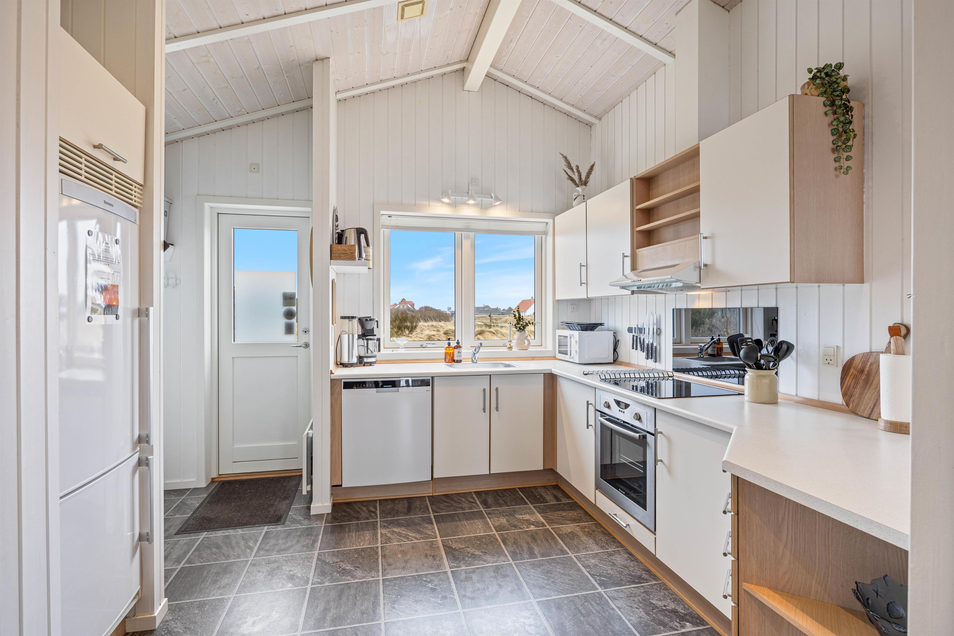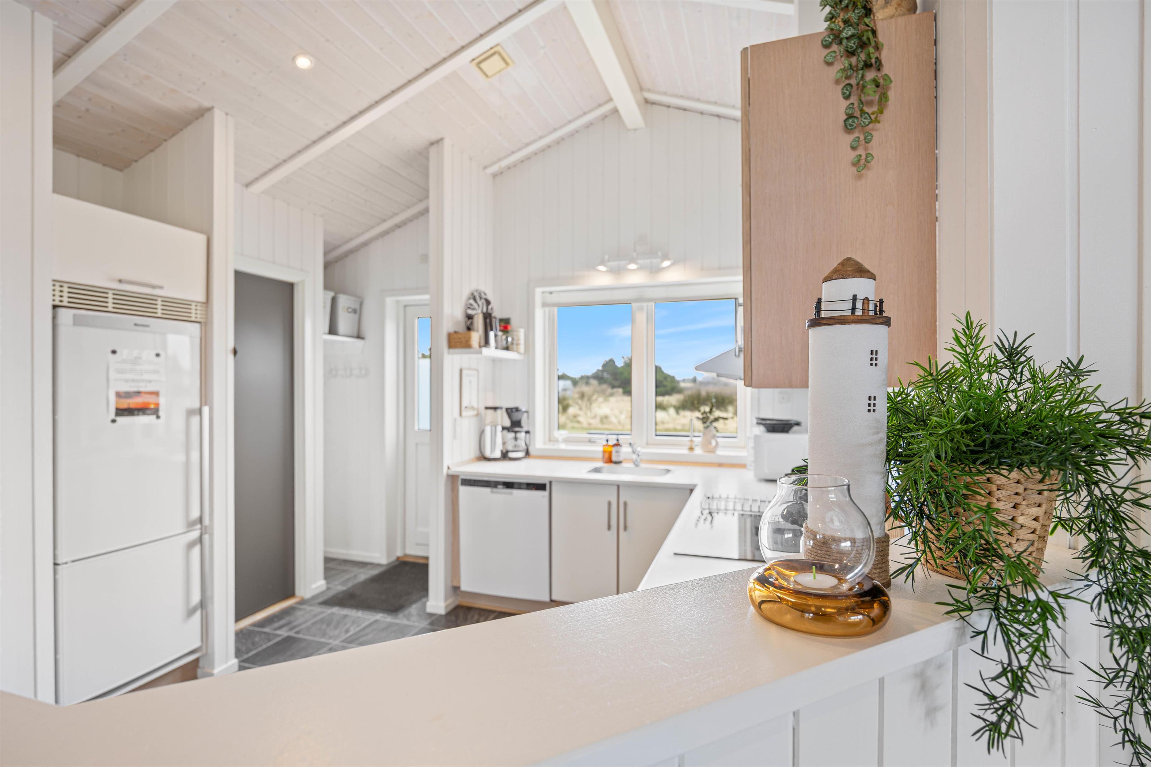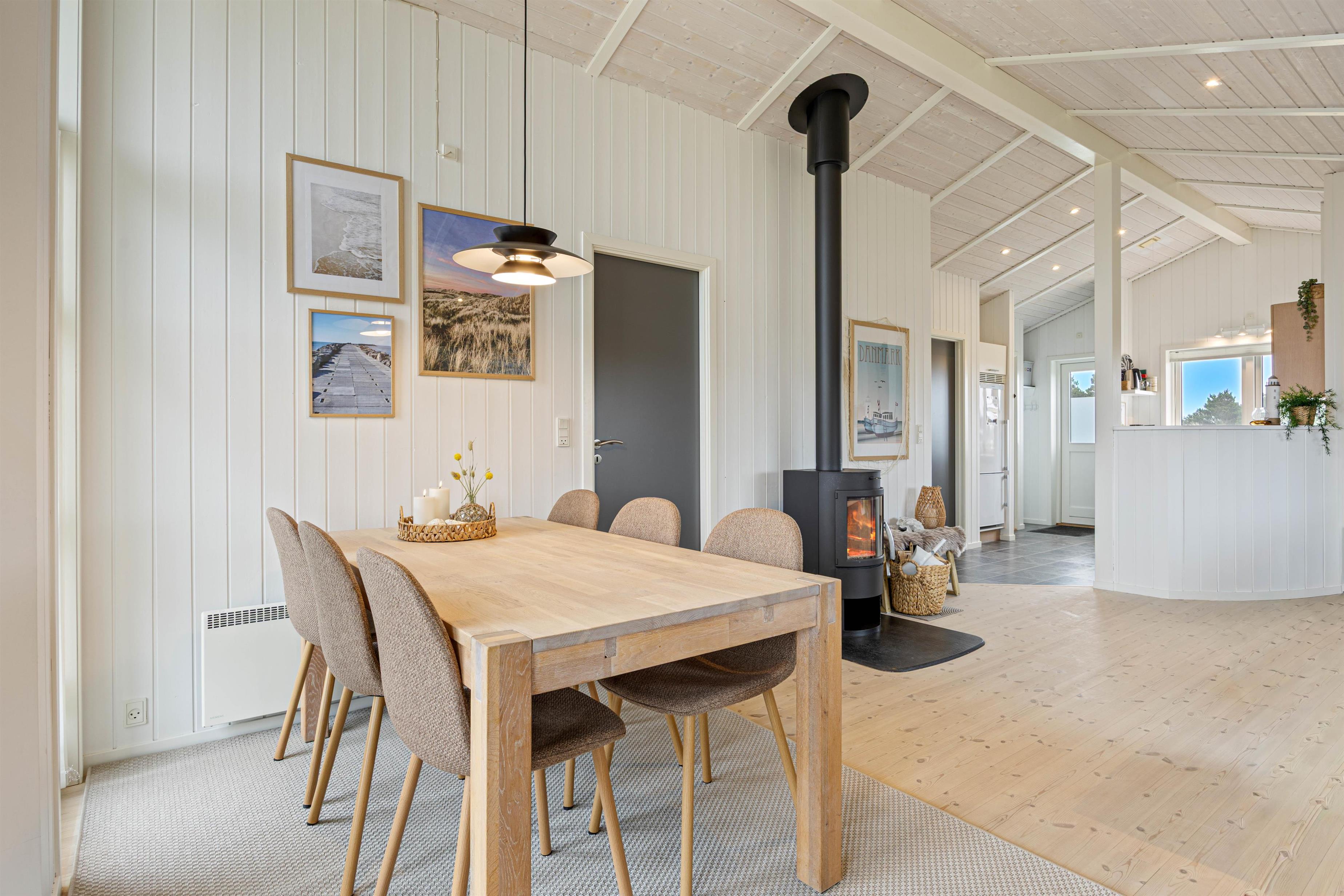 Feriehuset i Nr. Lyngvig er lyst og hyggeligt indrettet, hvilket er den perfekte ramme for en ferie i det vestjyske. Sommerhuset rummer en kombineret stue- og køkkenafdeling, så I har mulighed for at spille brætspil foran feriehusets brændeovn, samtidig med I holder øje med madlavningen i køkkenet.