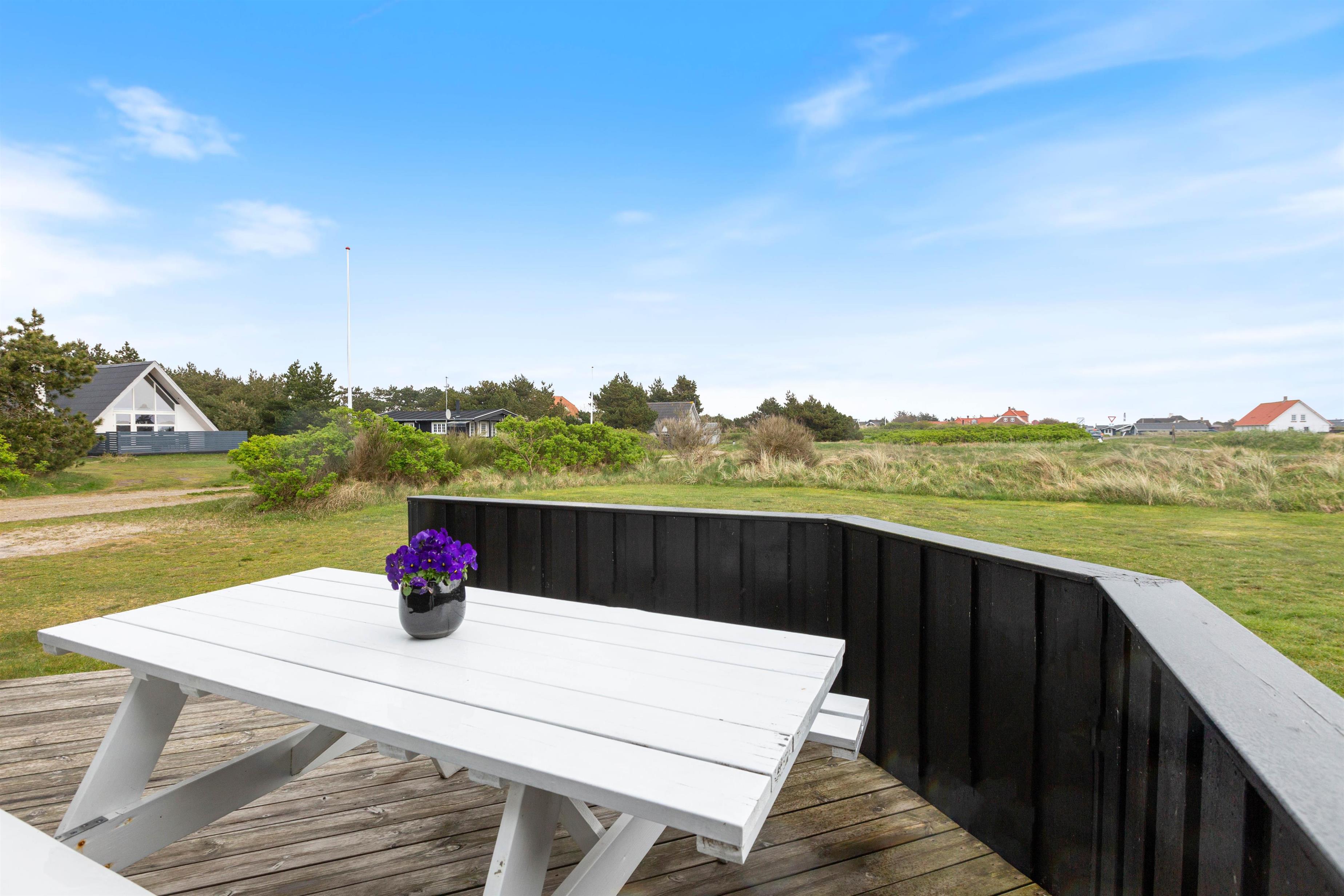Når der skal skrues op for afslapningen, kan I med fordel bevæge jer ud på en af feriehusets terrasser. Morgenkaffen kan nydes på den østvendte terrasse, og derefter kan I følge solens stråler, da sommerhusets afskærmede terrasse mod vest strækker sig helt om på sommerhusets sydside.