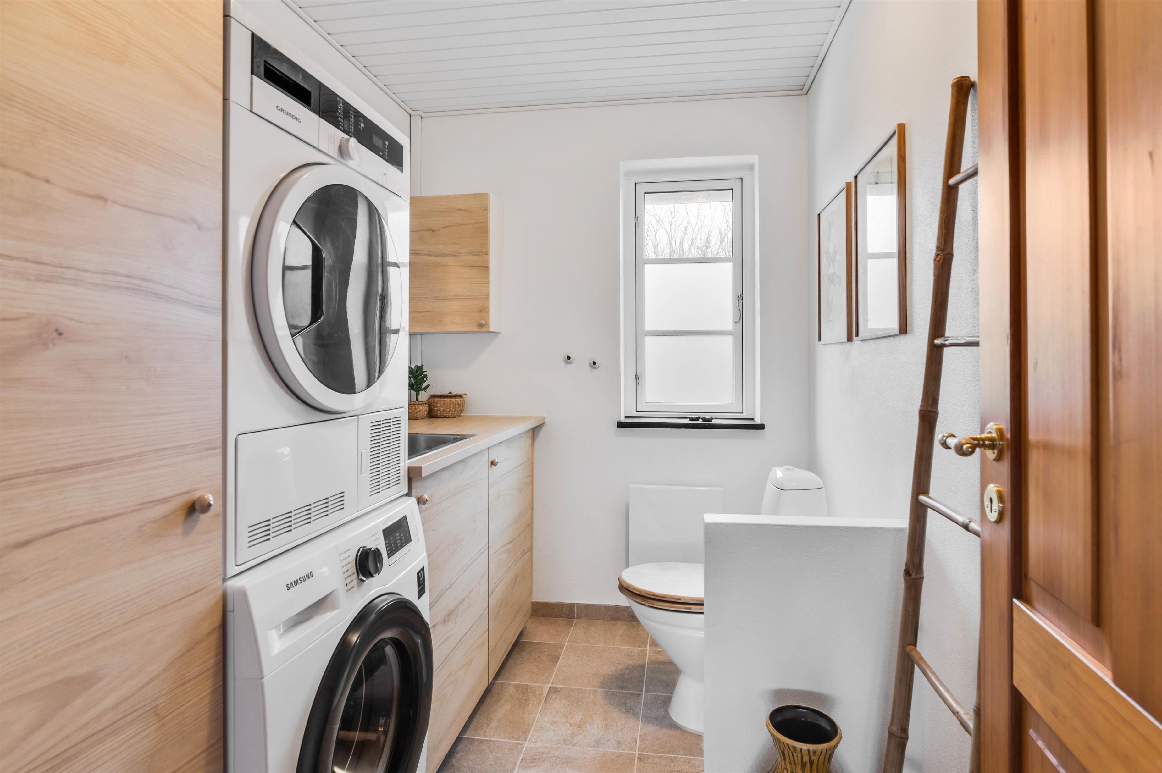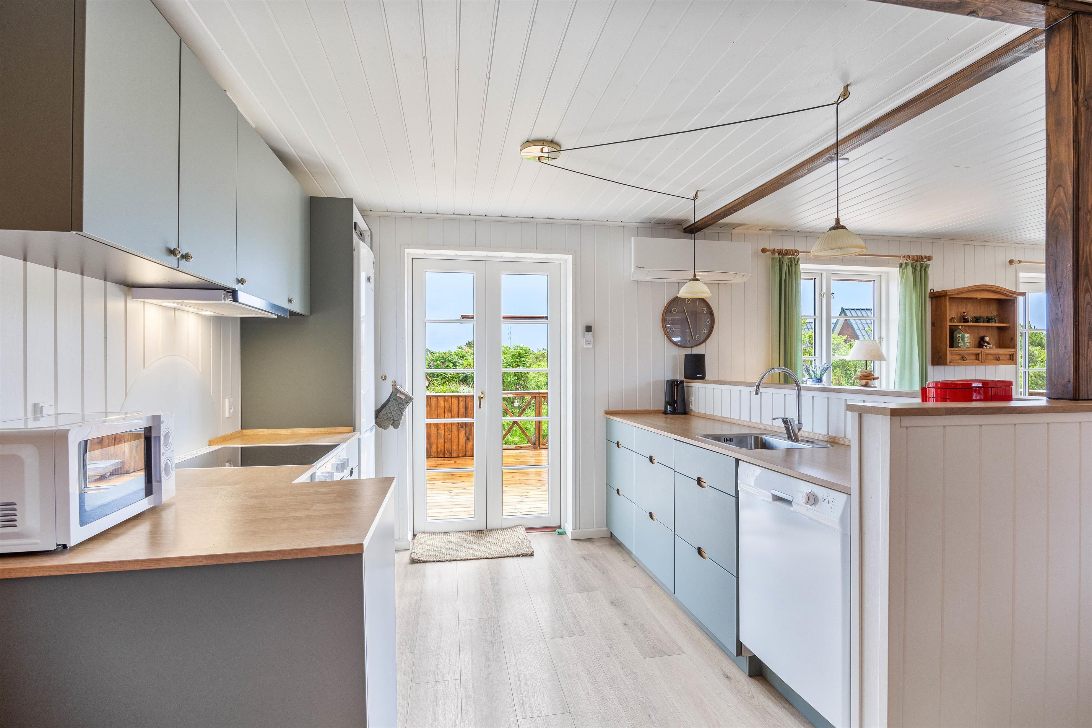 Udover brændeovnen er der også en varmepumpe, der sørger for, at I har gode temperaturer i sommerhuset til lave omkostninger på jeres ferie. Desuden har sommerhuset gode praktiske faciliteter i form af opvaskemaskine, vaskemaskine og tørretumbler.