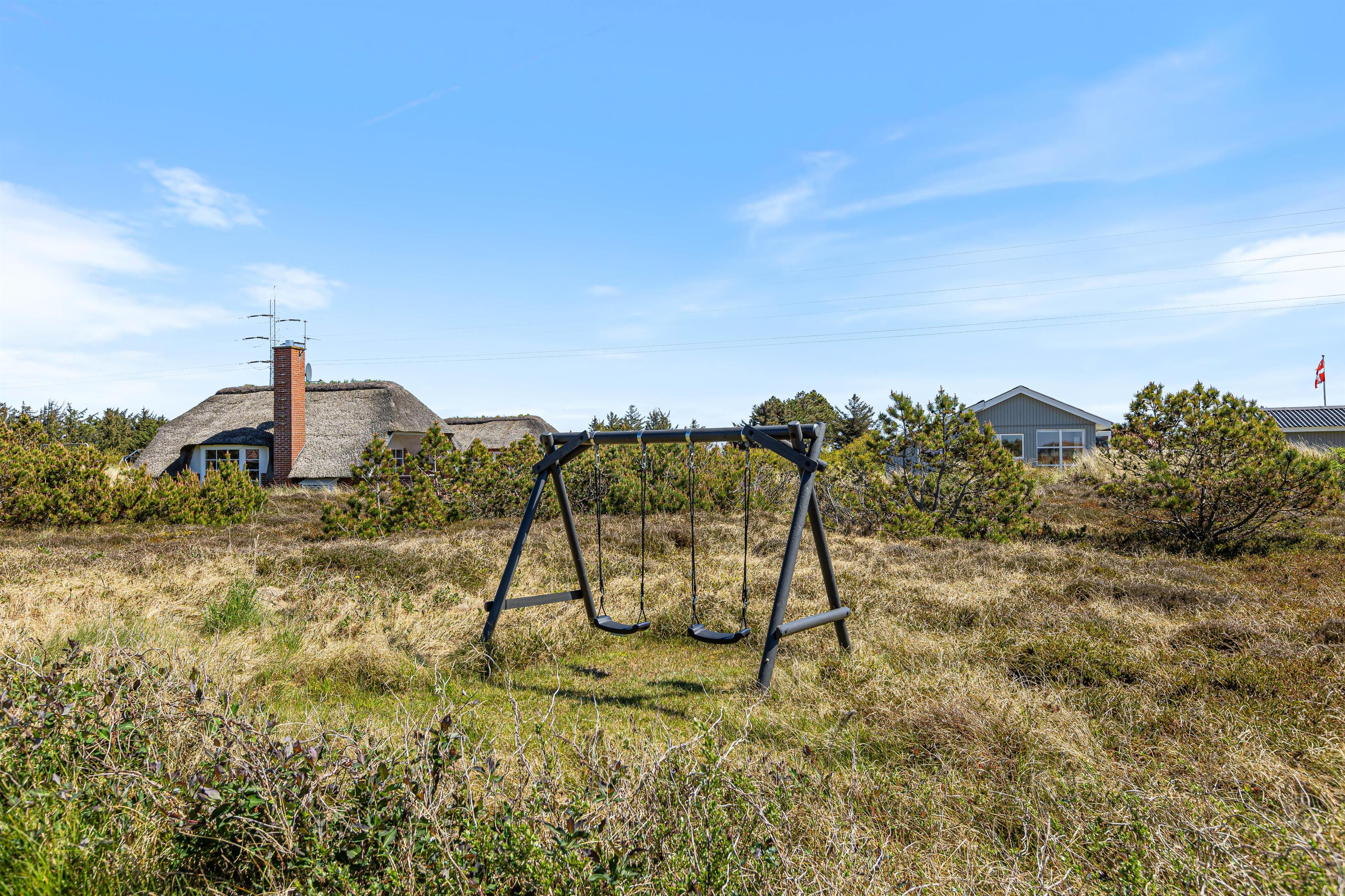 Dette dejlige feriehus ligger på en naturgrund med udsigt til Lyngvig Fyr, der er omgivet af et fredet hedeareal. Så her kan du nyde en afslappet ferie med familien med gåture i naturen og til stranden. I feriehuset er der også spabad og sauna, hvor både store og små kan hygge sig. I dette feriehus er rygning tilladt.