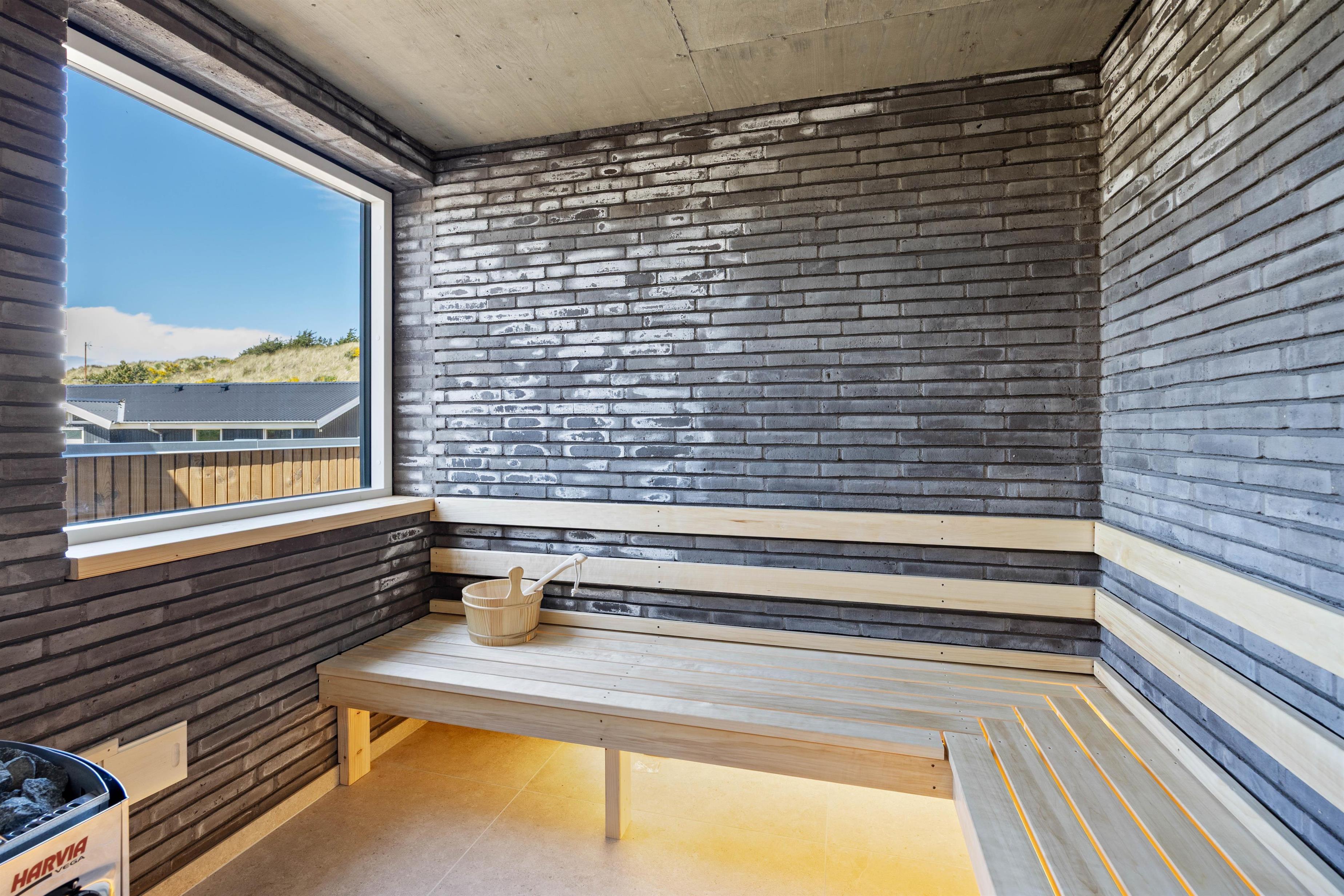 På den store træterrasse er der rig mulighed for at nyde solen fra morgen til aften. Her finder I havemøbler, liggestole, en overdækket terrasse samt ikke mindst sommerhusets wellnessområde med udespa, udebruser og udendørs sauna, hvor I kan komme helt ned i gear og nyde ferien. I skal dog være opmærksomme på, at udebruseren kun er tilgængelig fra april til november.