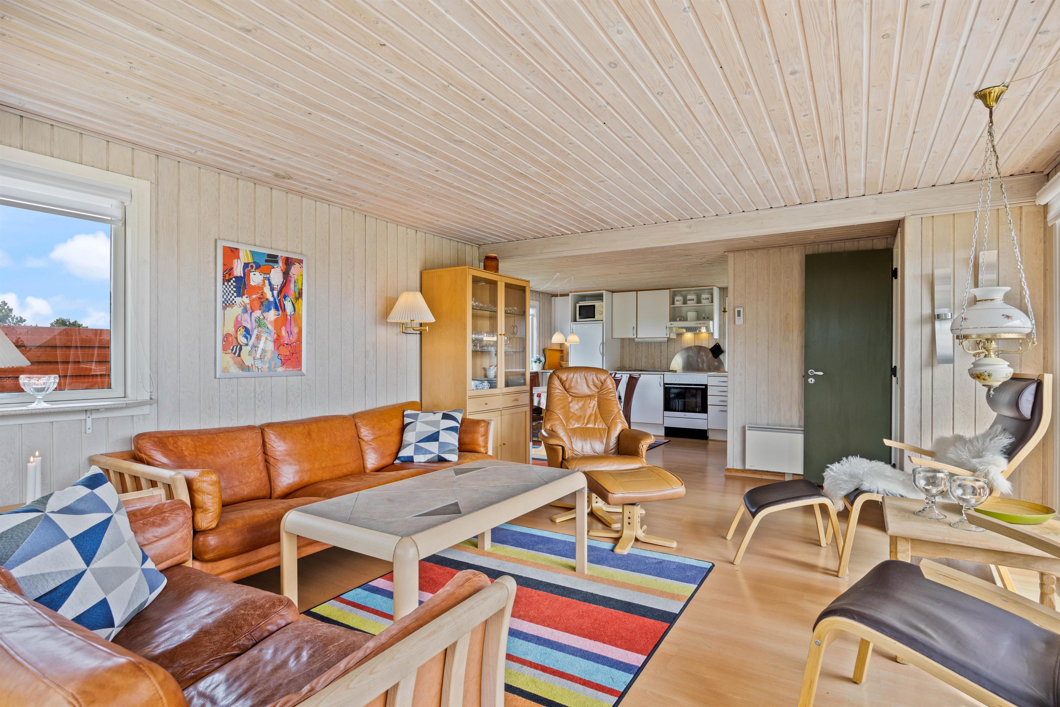 Sommerhuset ligger i sommerhusområdet Nr. Lyngvig, som er et roligt område med skønne naturomgivelser. Her bor I en kort gåtur fra stranden ved Vesterhavet, som blot ligger 750 meter væk. I området er der rig mulighed for en masse smukke gåture, hvor I kan opleve de velkendte hede arealer. Tæt på sommerhuset ligger Lyngvig fyr, som er et fyrtårn, man kan gå op i. Her finder I nok byens bedste udsigt.